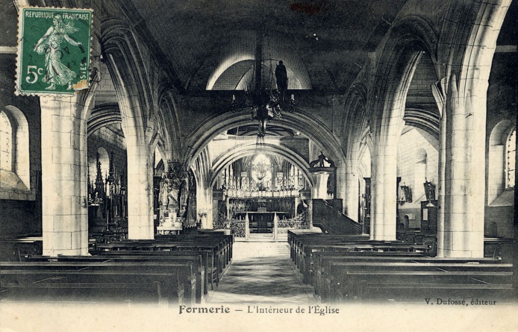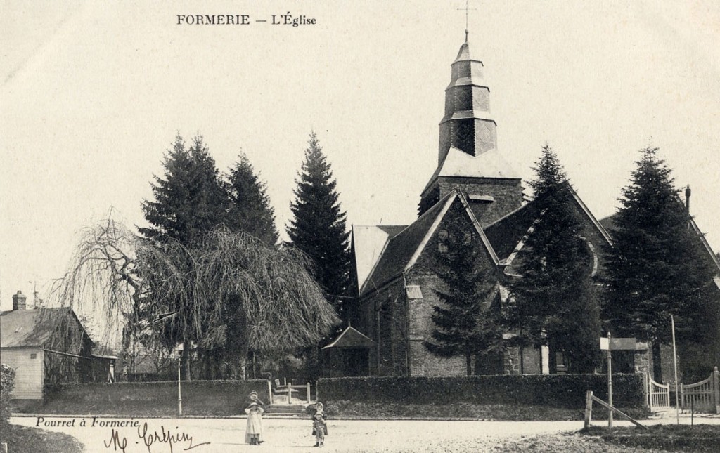 Bourg d’une certaine importance au Moyen Age et siège d’une seigneurie qui passa entre de nombreuses mains au gré des héritages, Formerie a été détruit par un incendie survenu en 1703 et sera, de nouveau, durement touché lors de l’attaque allemande de juin 1940. Préludant à ce désastre, c’est un incendie survenu dans la nuit du 5 au 6 décembre 1933 qui anéantissait presque complètement l’église Notre-Dame. Composée jusque-là d’une nef aveugle avec bas-côtés et d’un choeur à cinq pans, plus élevé, elle était entièrement charpentée et remontait au 16ème siècle.