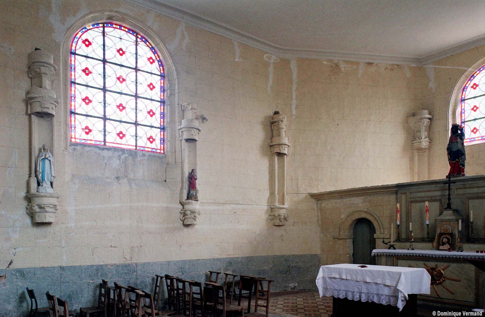 Simple et homogène, l’édifice associe une nef unique et un chœur à pans coupés, légèrement plus élevé. Si la nef, non voûtée, n’a pas de caractère particulier hormis le minuscule clocheton qui coiffe le pignon de sa façade, il n’en est pas de même du chœur, original malgré sa simplicité. Huit niches, qui devaient abriter autrefois des statues, sont disposées à intervalles réguliers, en correspondance avec des contreforts extérieurs qui montrent qu’une voûte en pierre avait certainement été prévue sinon réalisée. Les bases comme les dais qui les coiffent comportent un décor particulièrement raffiné qui emprunte totalement au vocabulaire de la Renaissance auquel, à cette époque, ne pouvait que souscrire une grande famille comme celle des Montmorency. L’abside proprement dite est isolée par un mur qui, s’élevant à mi-hauteur, est percé de deux portes en plein cintre, vraisemblablement dans le but de l’utiliser comme sacristie (2004).