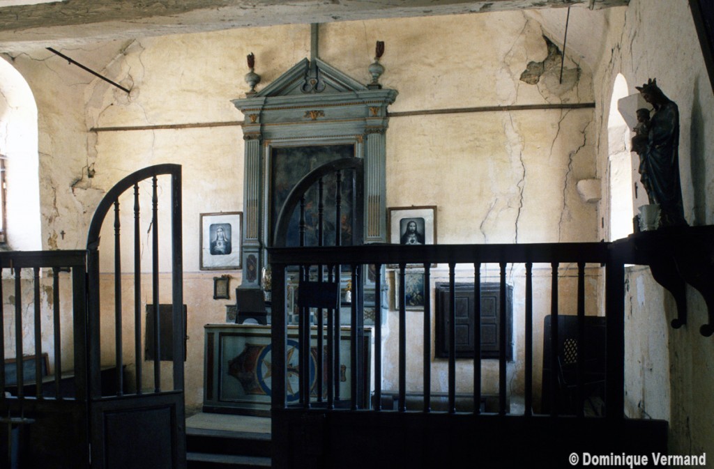 La chapelle Saint-Marcoul, construite au 17ème siècle, constitue un bon exemple de petit édifice rural dans lequel, par souci d’économie, tout artifice décoratif a été banni. Le choeur ne se distingue de la nef que par les trois fenêtres qui l’éclairent – la nef est aveugle – et la clôture en bois, également du 17ème siècle, qui sépare les deux espaces. Un simple mais beau maître-autel contemporain est le seul luxe de l’édifice. La façade est percée d’une porte en anse de panier, sans décor, et d’une petite fenêtre. Comme au Berval, le mur pignon se prolonge par un petit clocher arcade, ici à ouverture unique (1996).
