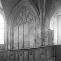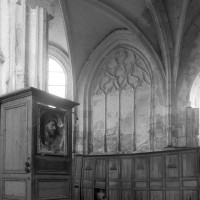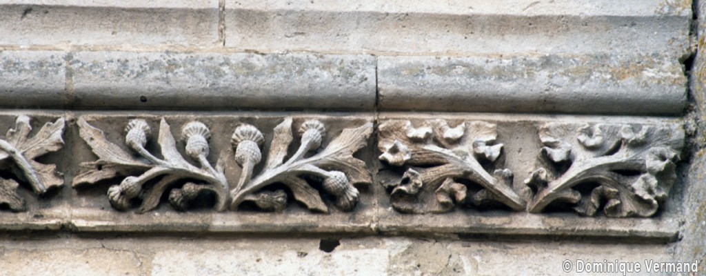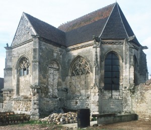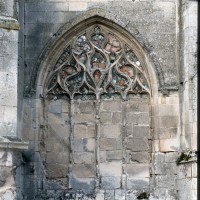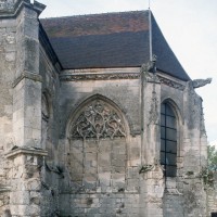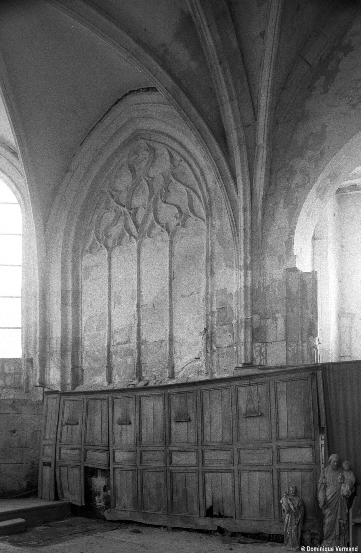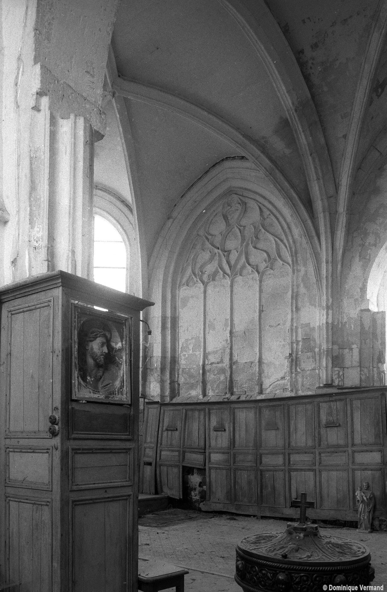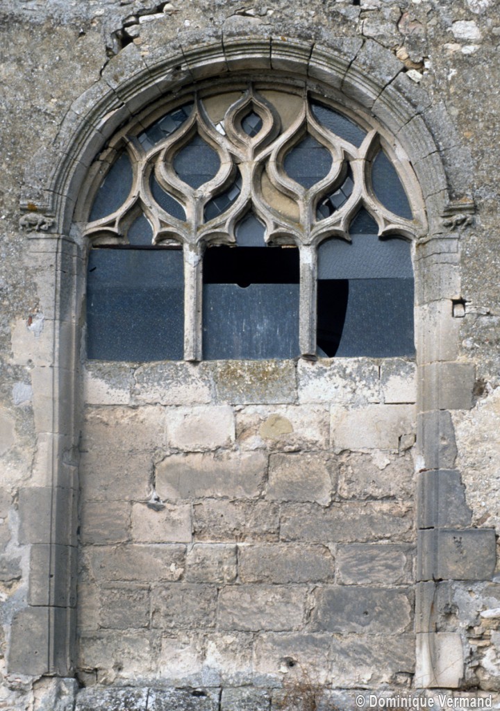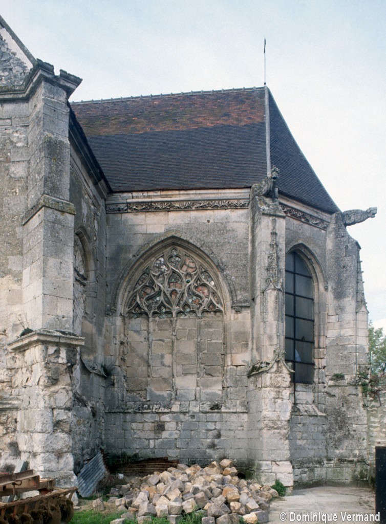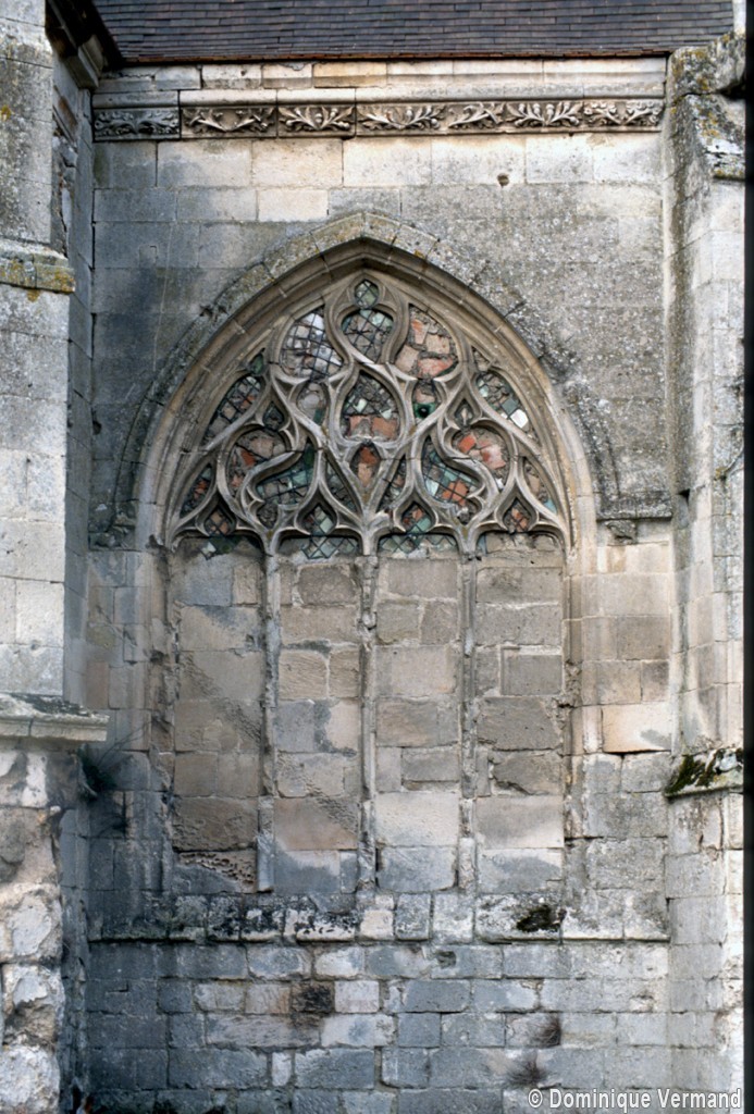 Bien que totalement murées, les deux fenêtres de la travée droite ont en effet conservé un réseau flamboyant au dessin aussi complexe que raffiné comme il ne s’en trouve guère dans les églises de campagne. La corniche décorée de chardons finement ciselés, les pinacles et les gargouilles qui adoucissent la silhouette des contreforts témoignent de la même recherche. Les trois fenêtres de l’abside proprement dite ont malheureusement perdu leurs meneaux.