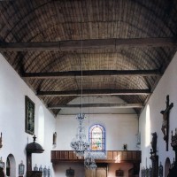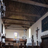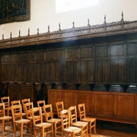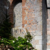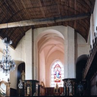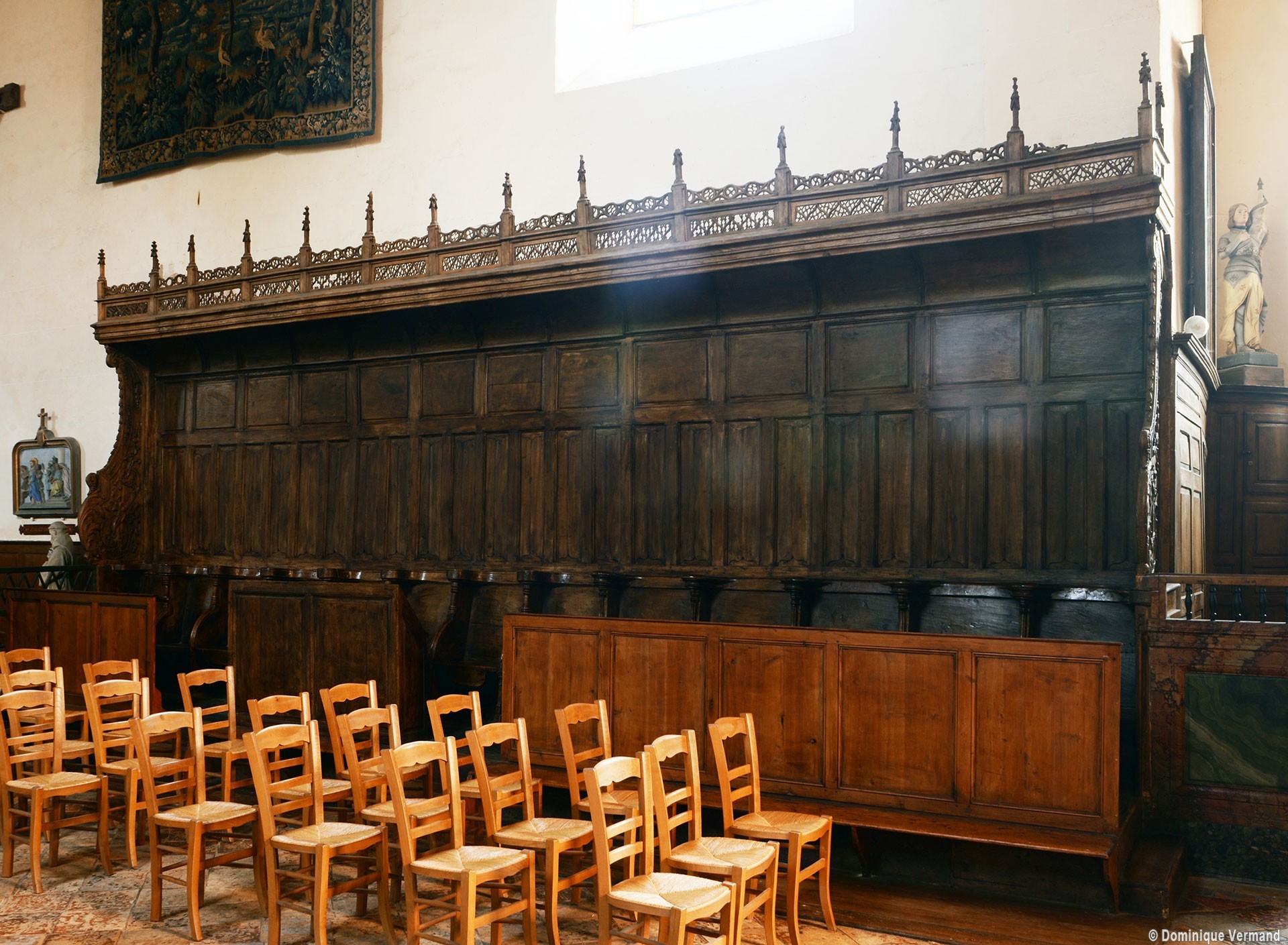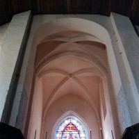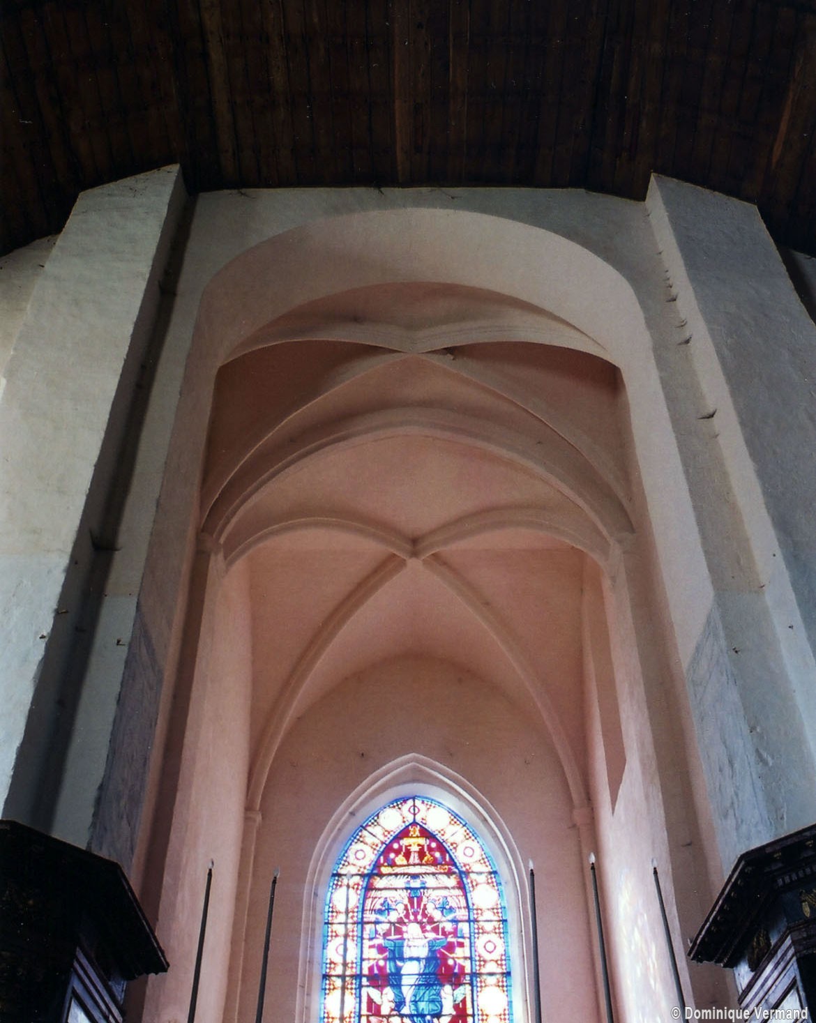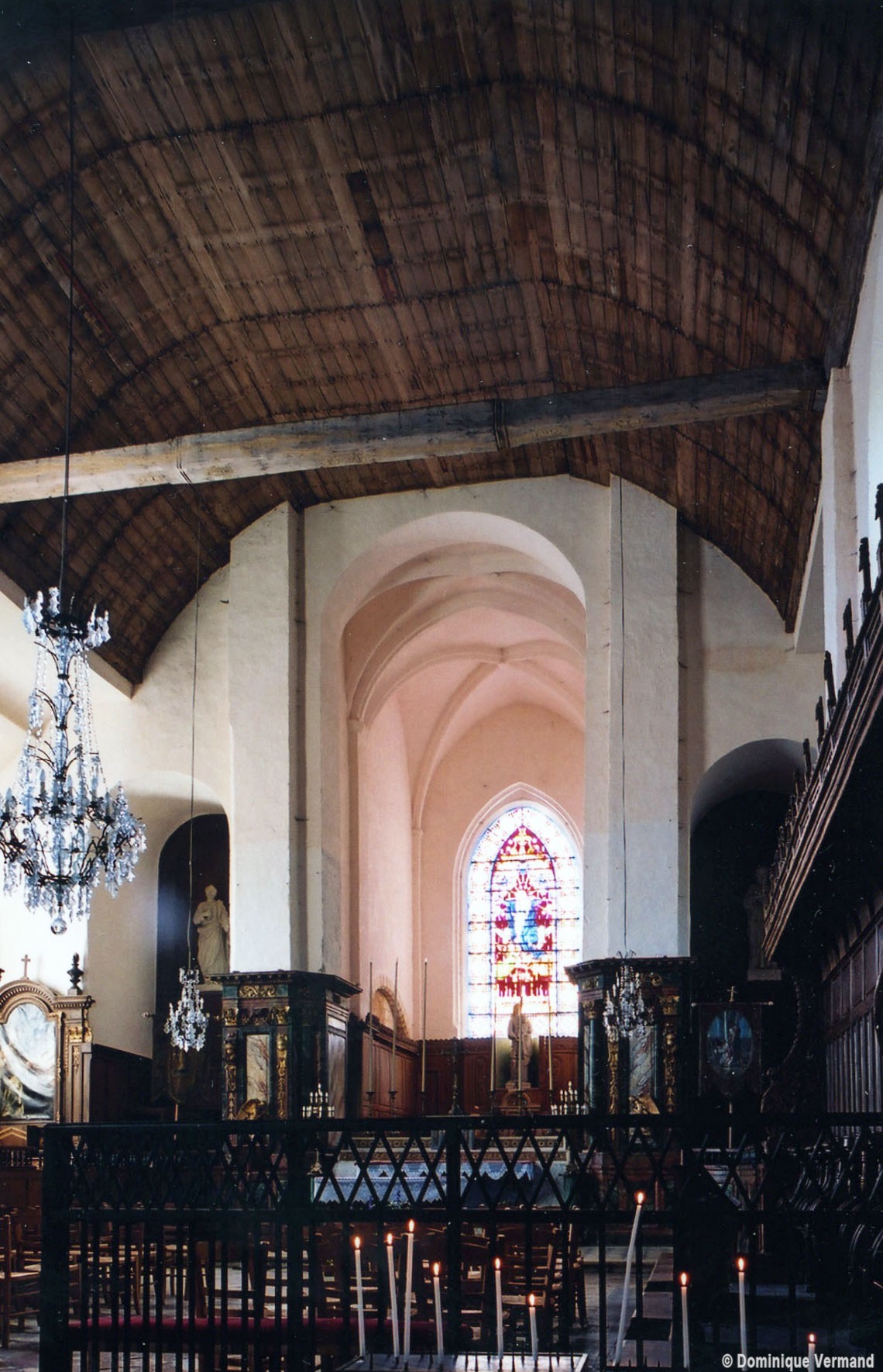 Les parties orientales (choeur et chapelles) ainsi que l’ouest de la nef et la façade sont le résultat d’une autre campagne de construction, peut-être effectuée en 1072, lorsque le collège des chanoines fut porté à vingt-cinq. Le choeur proprement dit, qui communique avec la nef par une haute arcade en plein cintre, est formé de deux travées inégales. La première, très courte, correspond exactement à la profondeur des chapelles latérales et la seconde est de plan carré. Des pilastres incitent à penser que des voûtes d’arêtes recouvraient, à l’origine, ces deux travées. Elles ont été remplacées au 13ème siècle par des voûtes d’ogives. La grande fenêtre qui s’ouvre au chevet est du 16ème siècle. Les chapelles latérales sont voûtées en berceau, mais ont subi de profonds remaniements qui, à l’image de l’église tout entière, témoignent du passé chaotique du lieu pendant de nombreux siècles.