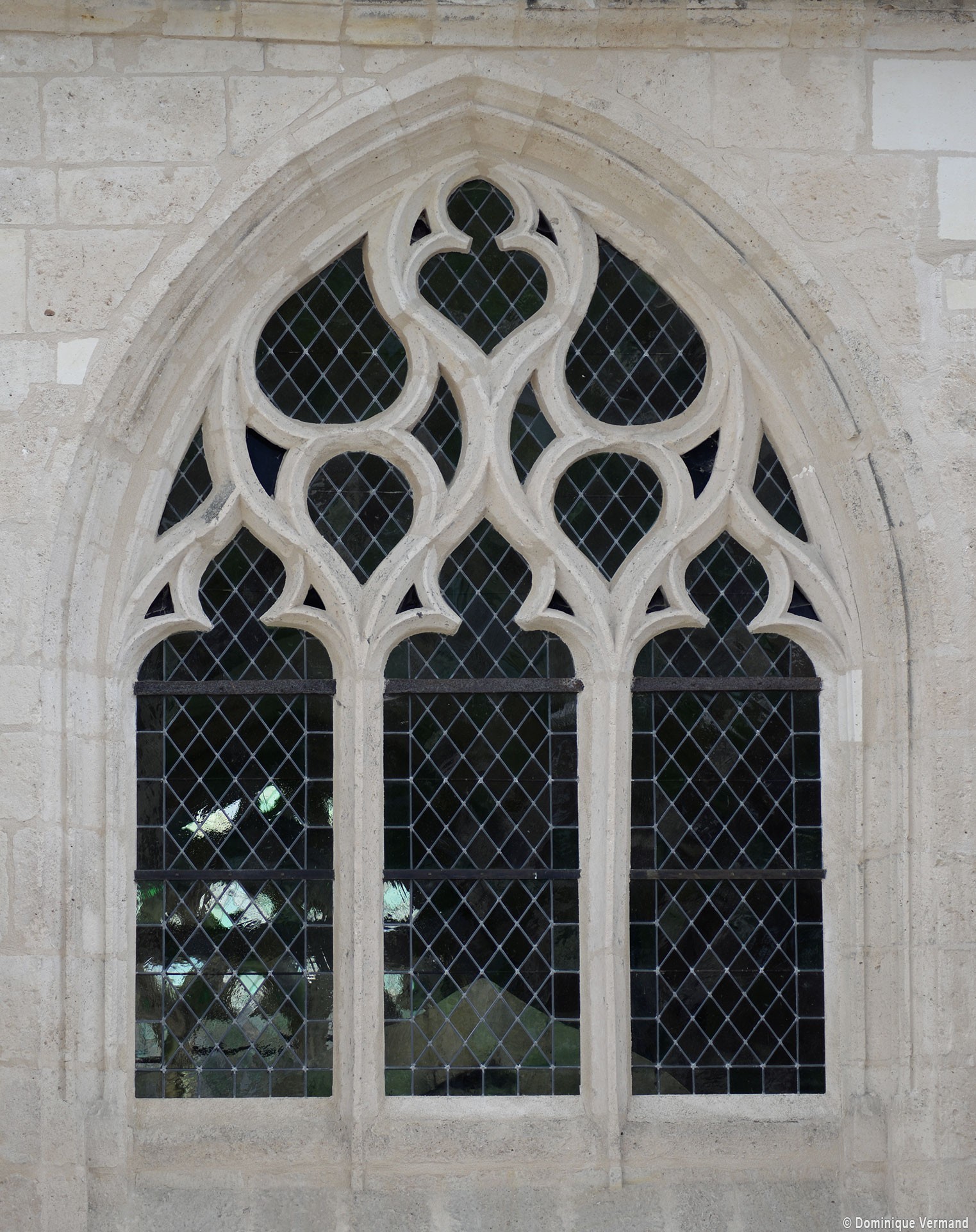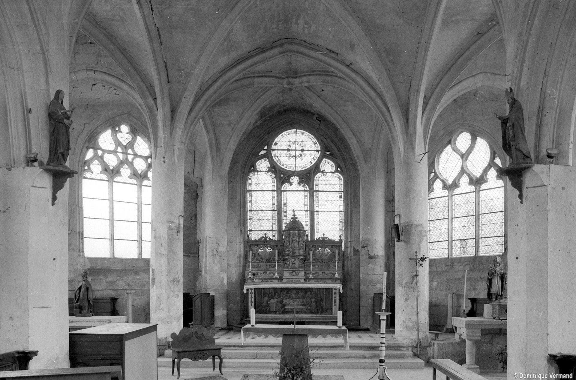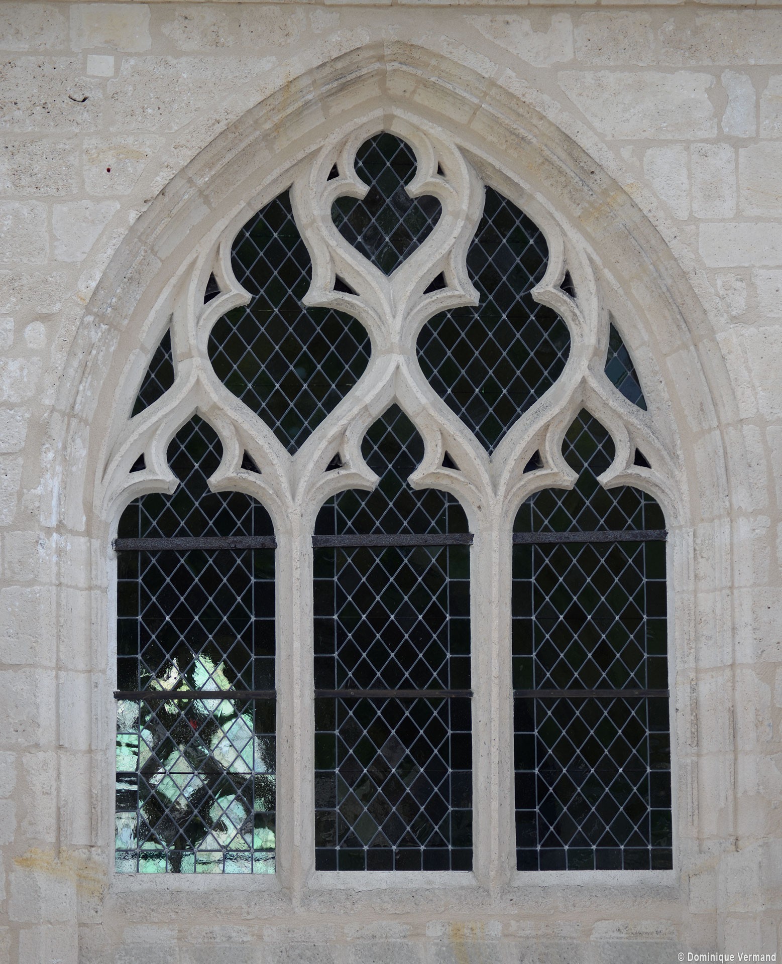 Très touchée durant la Guerre de Cent Ans, l’église subit une restauration radicale à partir de la fin du 15ème siècle. Les bas-côtés sont alors reconstruits et percés de huit très belles fenêtres à réseau flamboyant presque tous différents, dans leurs détails, les uns des autres. Le choeur et le transept sont entièrement repris en sous-oeuvre et reconstruits en parties hautes. L’architecte chargé de ces travaux intervint d’une manière très originale en supprimant les murs orientaux du transept ainsi que les murs nord et sud du choeur, les remplaçant par des murs obliques qui donnent à l’ensemble un plan pentagonal. Au cloisonnement de l’édifice précédent se substitue ainsi un espace ouvert et unifié, largement éclairé par les grandes fenêtres à réseau flamboyant et qui évoque les choeurs-halle présents en nombre dans la région (Fresnoy-la-Rivière et Orrouy, par exemple, pour ne citer que les plus proches).