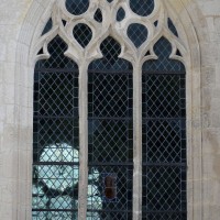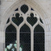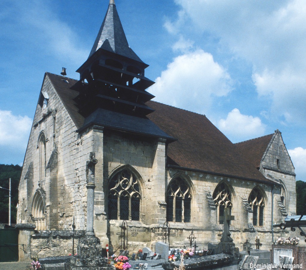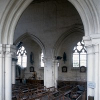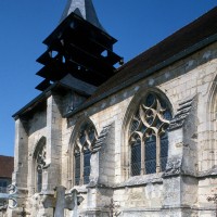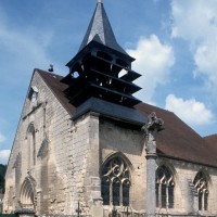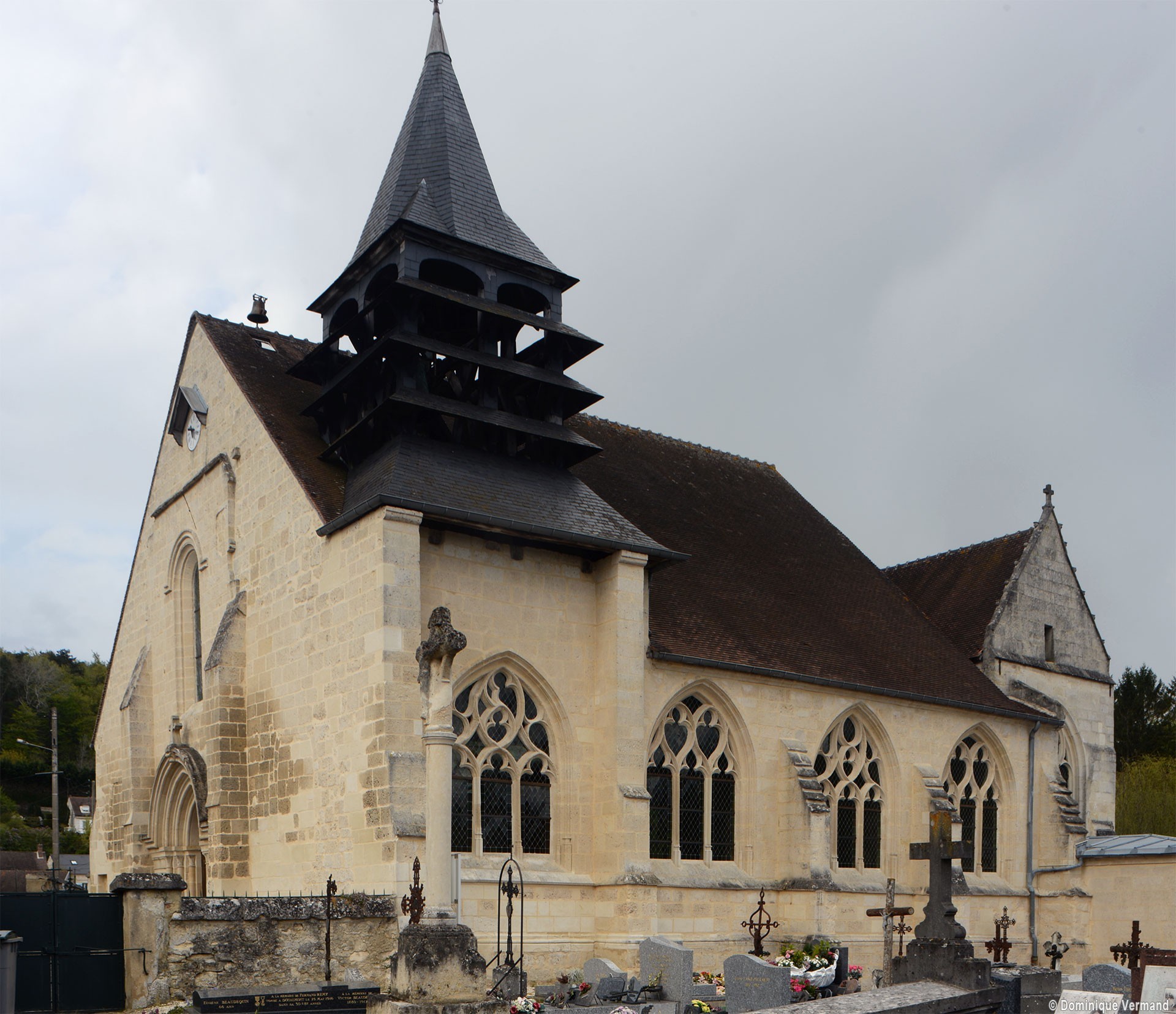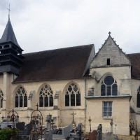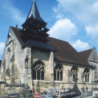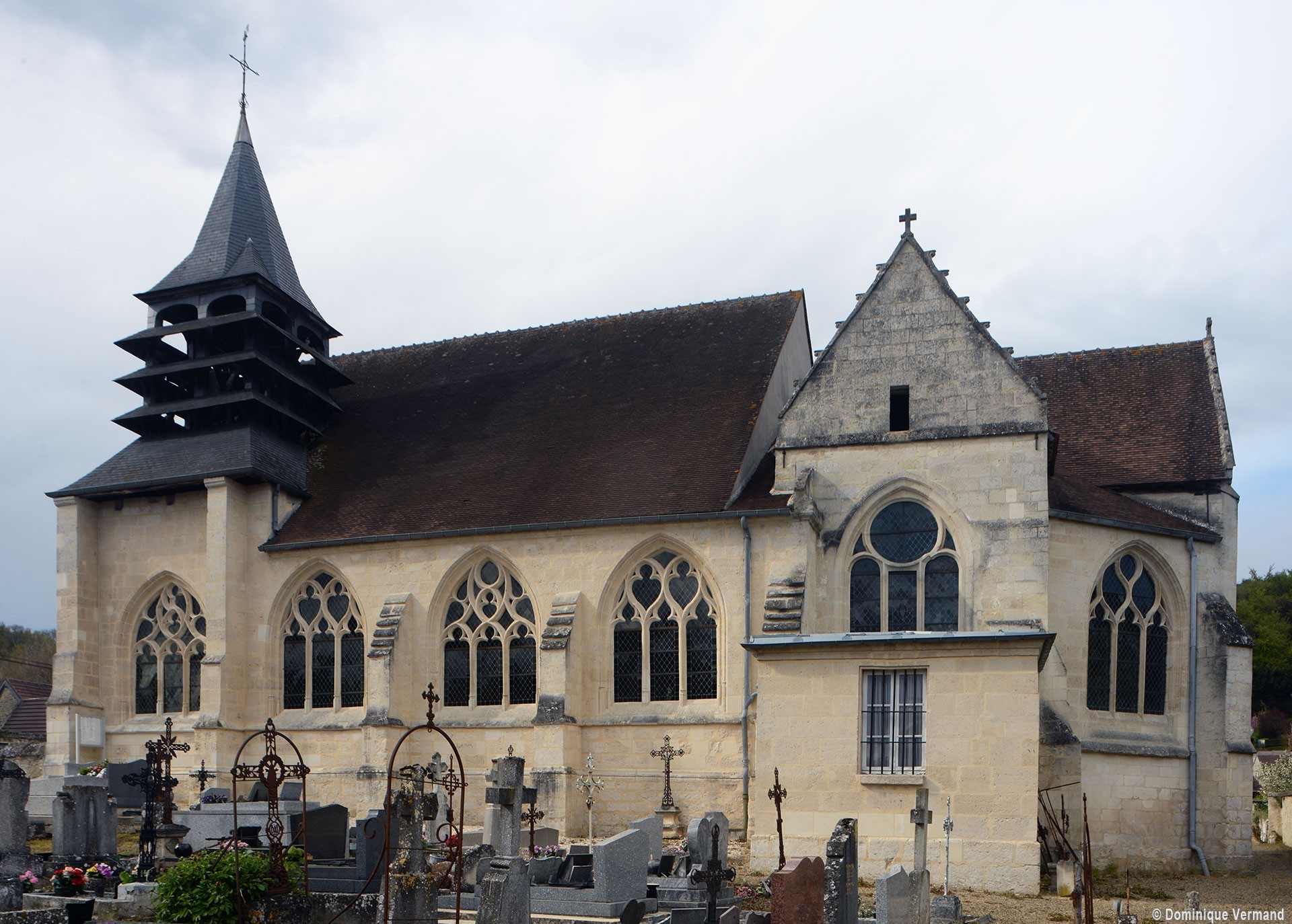 Très touchée durant la Guerre de Cent Ans, l’église subit une restauration radicale à partir de la fin du 15ème siècle. Les bas-côtés sont alors reconstruits et percés de huit très belles fenêtres à réseau flamboyant presque tous différents, dans leurs détails, les uns des autres. Le choeur et le transept sont entièrement repris en sous-oeuvre et reconstruits en parties hautes. L’architecte chargé de ces travaux intervint d’une manière très originale en supprimant les murs orientaux du transept ainsi que les murs nord et sud du choeur, les remplaçant par des murs obliques qui donnent à l’ensemble un plan pentagonal. Au cloisonnement de l’édifice précédent se substitue ainsi un espace ouvert et unifié, largement éclairé par les grandes fenêtres à réseau flamboyant et qui évoque les choeurs-halle présents en nombre dans la région (Fresnoy-la-Rivière et Orrouy, par exemple, pour ne citer que les plus proches).