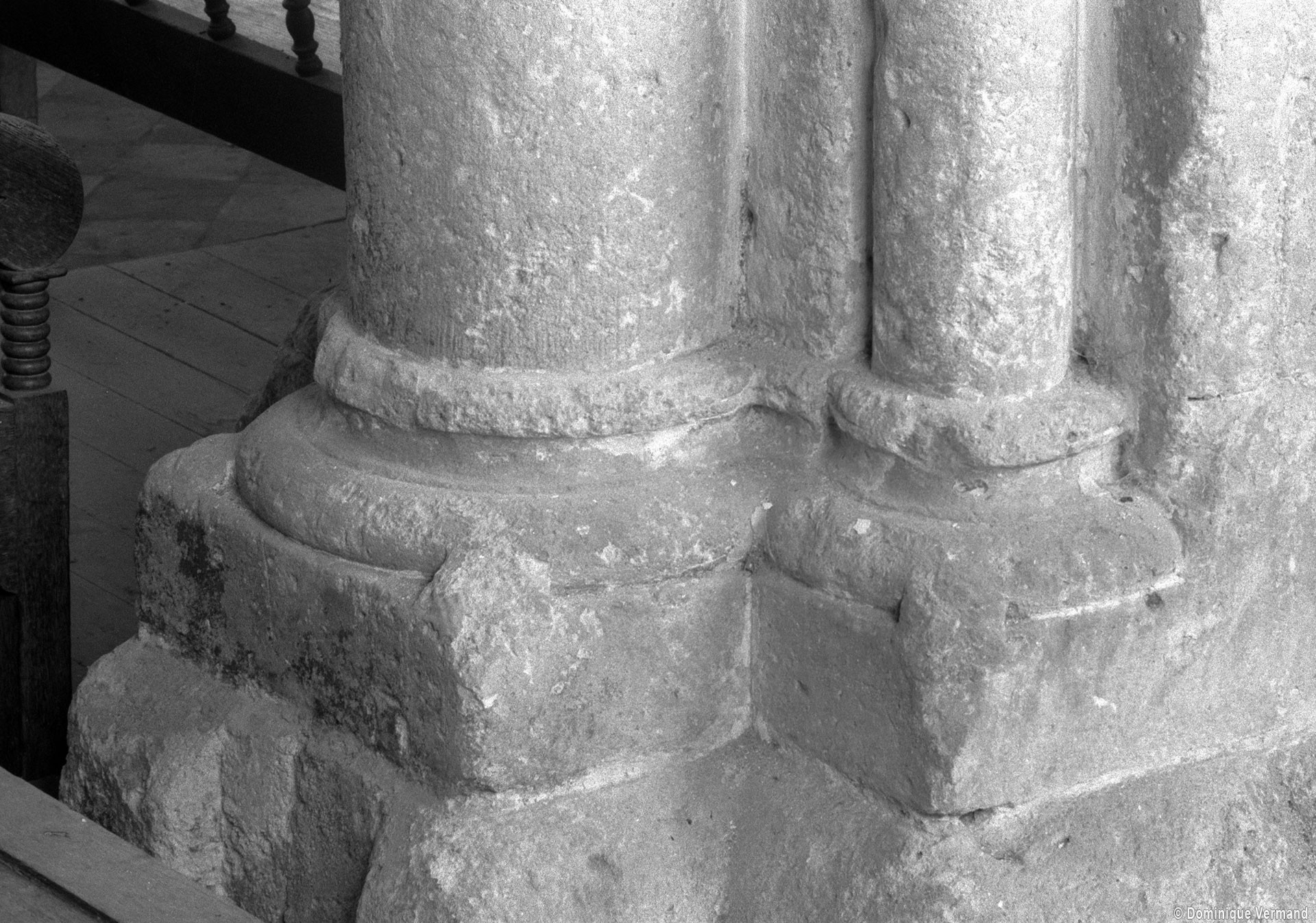 L’église construite durant la seconde moitié du 12ème siècle comprenait une nef avec bas-côtés, un transept saillant et un choeur à chevet plat. Ces derniers, partiellement reconstruits à partir de la fin du 15ème siècle, ne se devinent plus que par l’enveloppe de leurs murs.