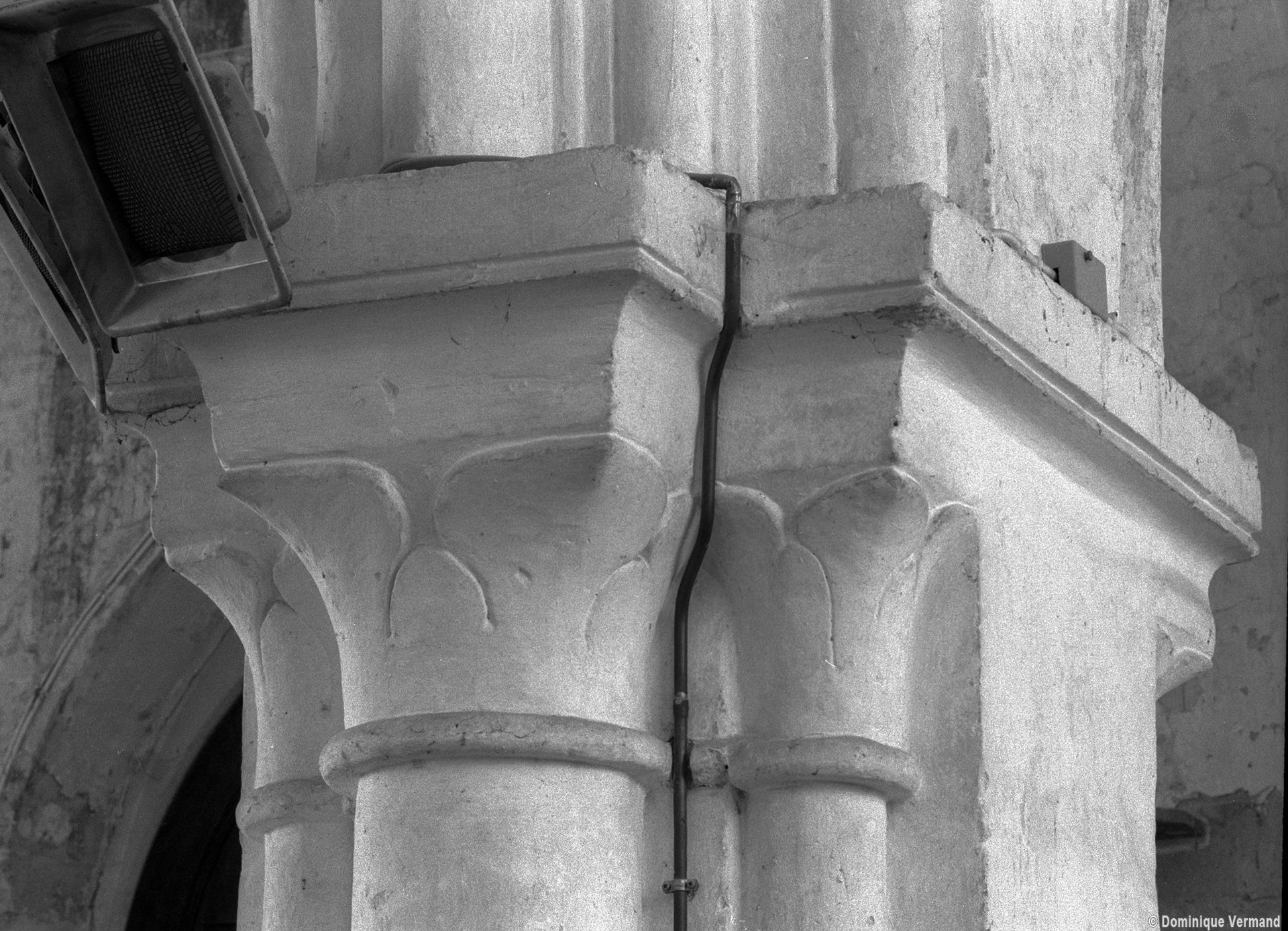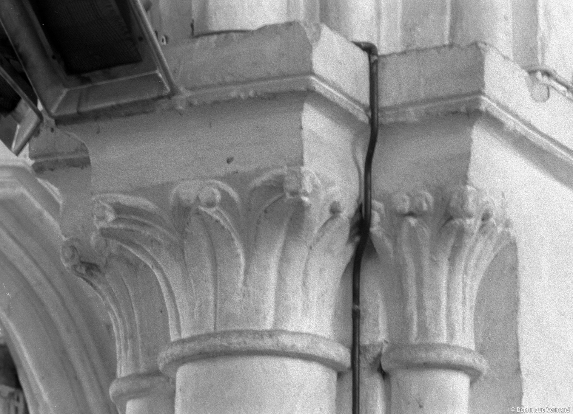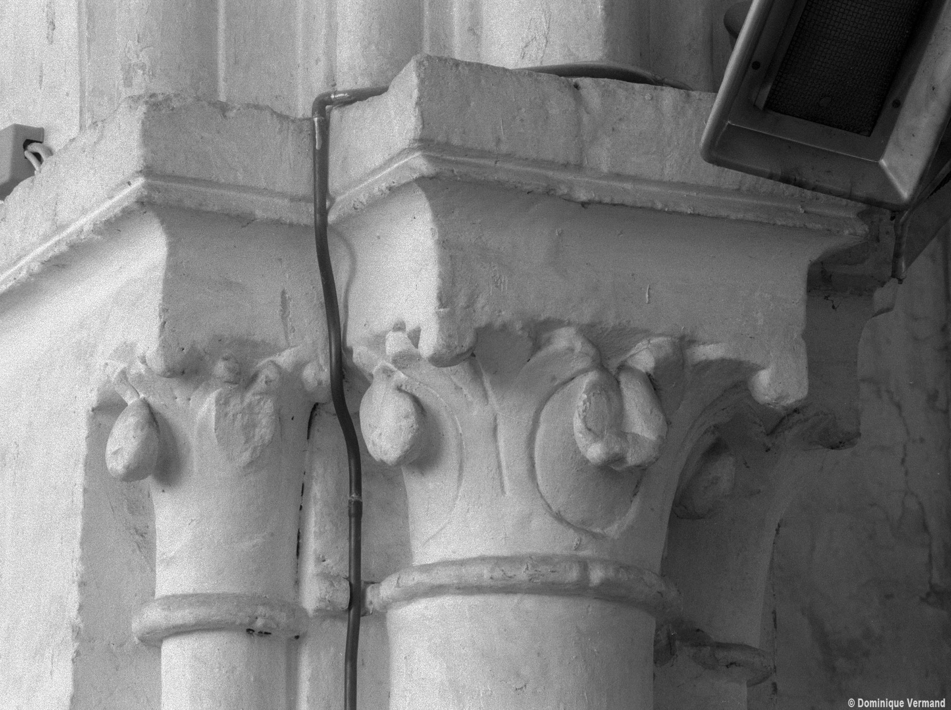 La façade du 12ème siècle s’est partiellement conservée et comporte un petit portail à colonnettes légèrement plus tardif et très restauré en 1987, au-dessus duquel s’ouvre une belle fenêtre en plein cintre.