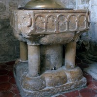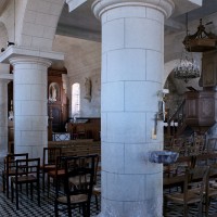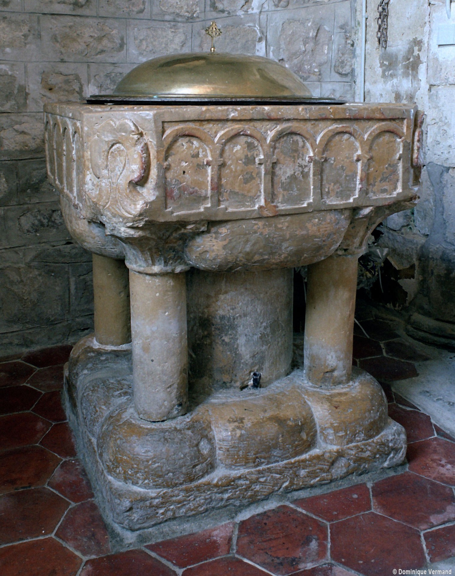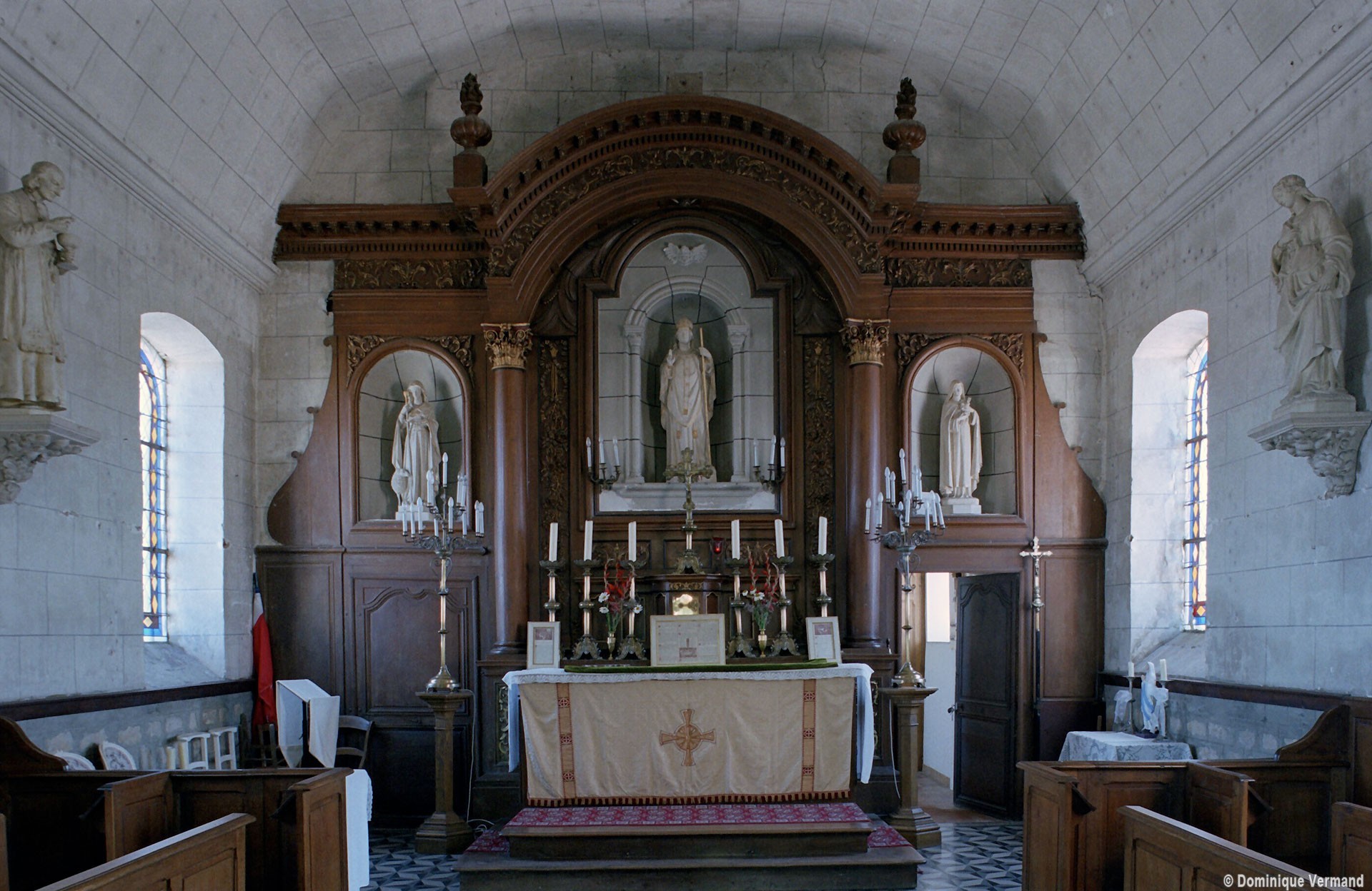 L’église conserve la cuve baptismale romane de l’édifice précédent, remarquable par son gros fût central flanqué de quatre colonnettes et son décor d’arcatures aveugles. Le très beau maître-autel de style classique est réputé provenir de l’abbaye, détruite, Saint-Barthélemy de Noyon (2008).