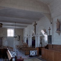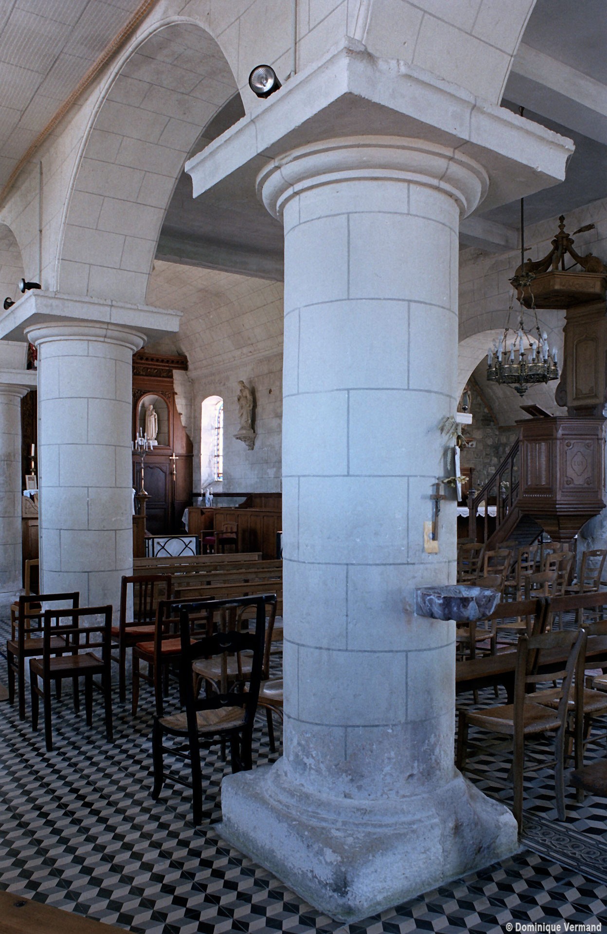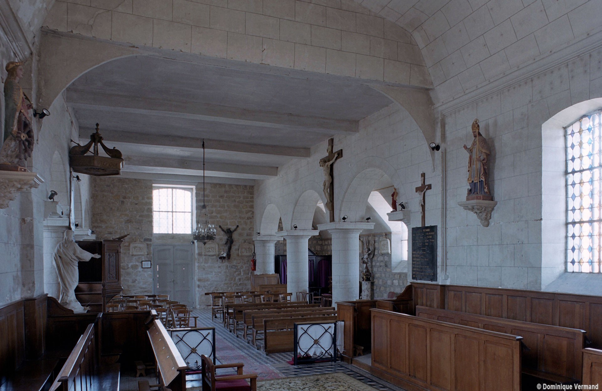 Saint-Rémi appartient tout entier au 18ème siècle, mais en plusieurs campagnes de construction. Le vaisseau central de la nef et le choeur à chevet plat sont les parties les plus anciennes. La nef communique avec les bas-côtés – refaits en 1772 comme l’indique une date à l’est du bas-côté nord – par trois arcades en cintre très surbaissées. Elles retombent sur des piles circulaires par l’intermédiaire d’abaques très débordants et de chapiteaux doriques très simplifiés. L’ensemble rappelle la nef de Berlancourt.