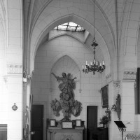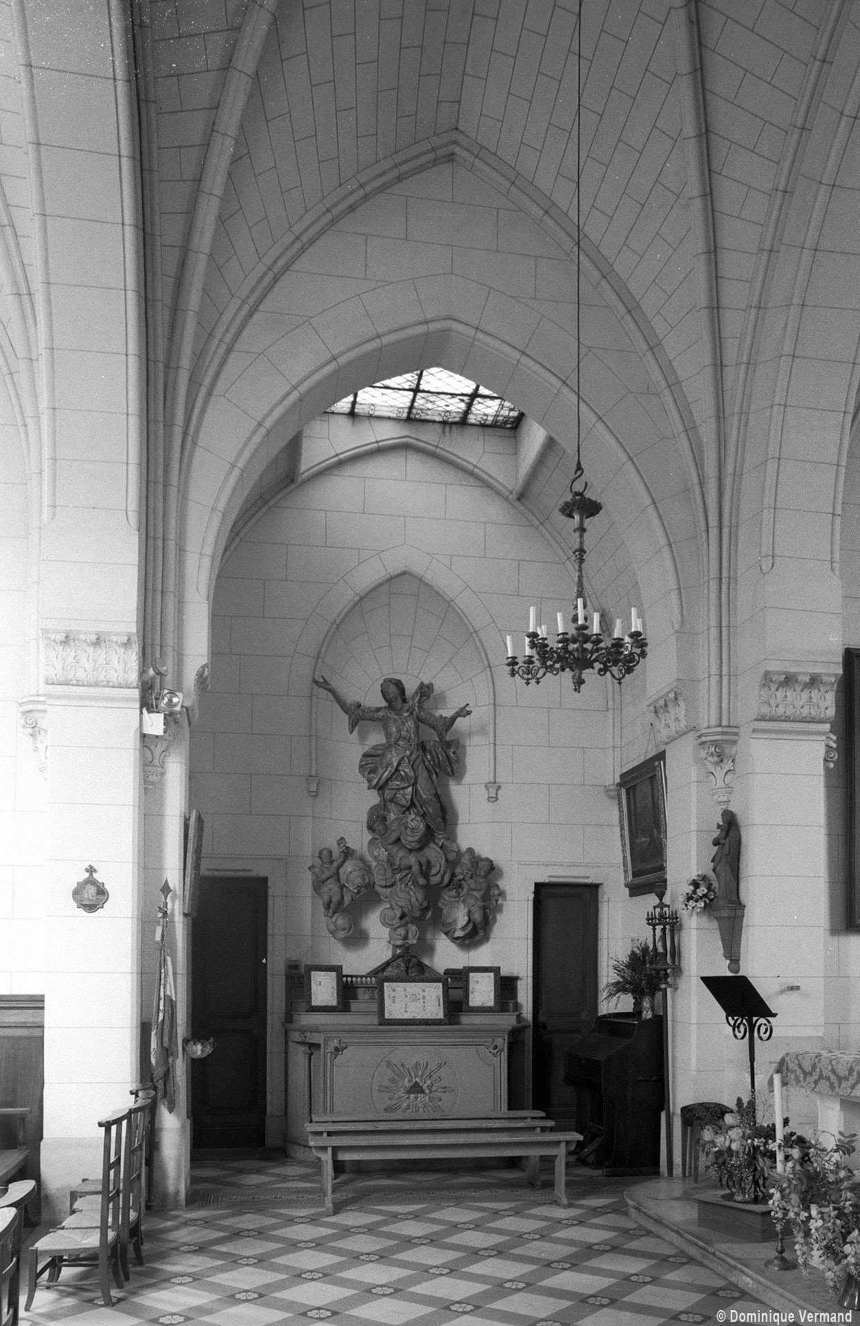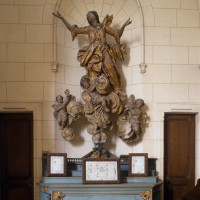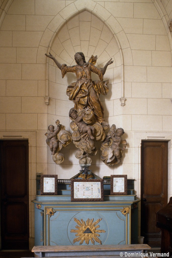 Ce n’est pas le cas, en revanche, de l’éblouissante Assomption de la Vierge en bois peint et doré, du 18ème siècle, exposée dans le petit croisillon nord et conservé autrefois dans l’ancienne chapelle du château. Le style dit Rococo y trouve ici sa plus parfaite expression (1997).