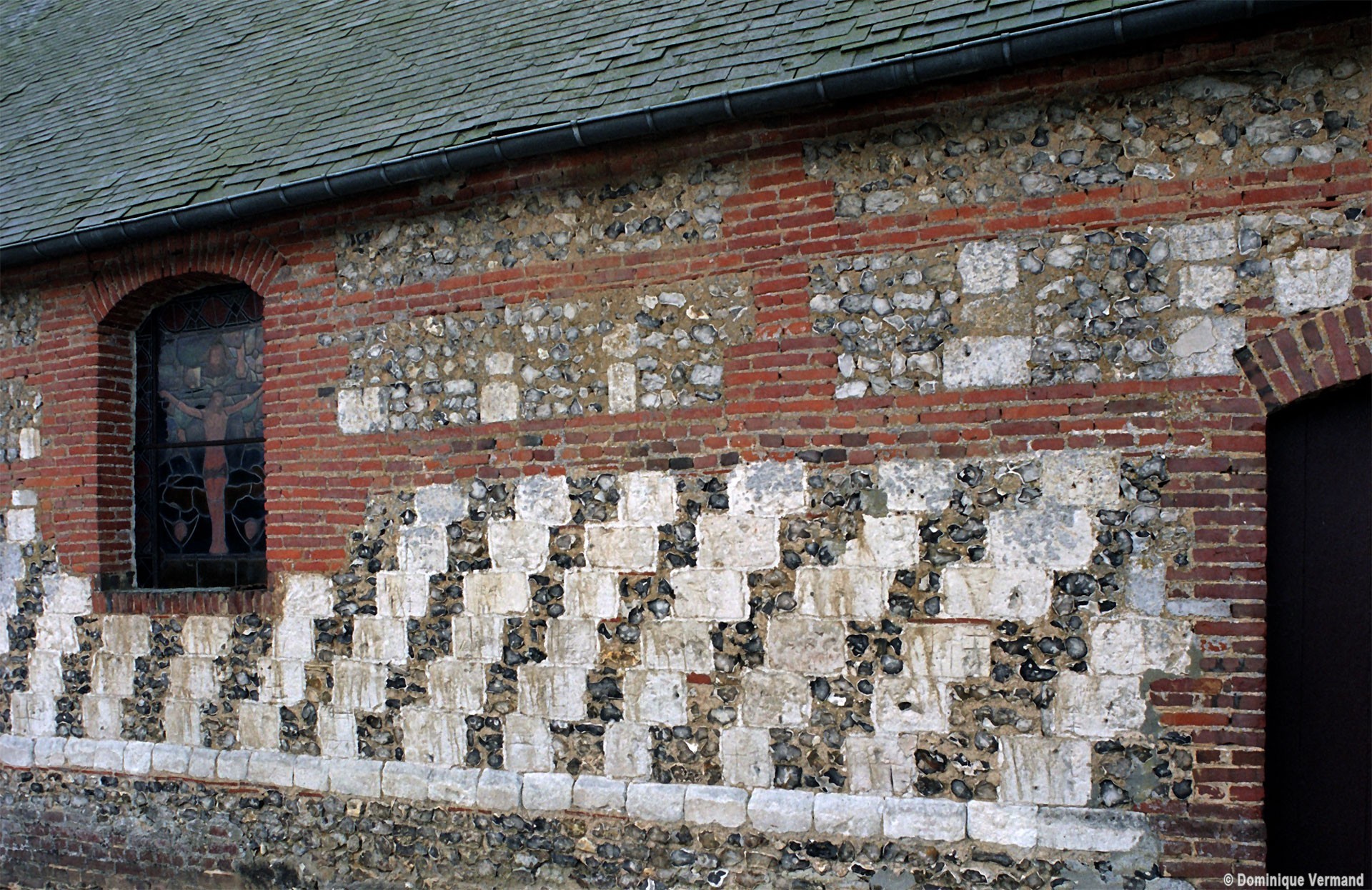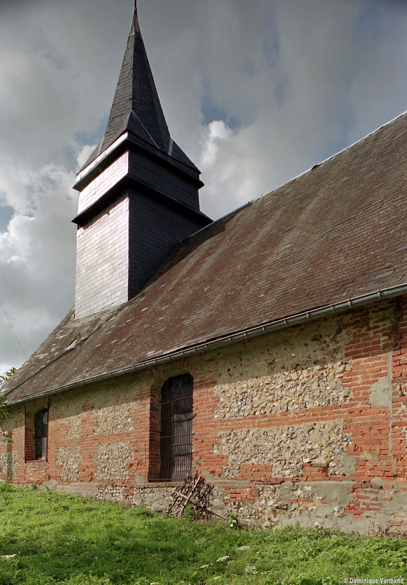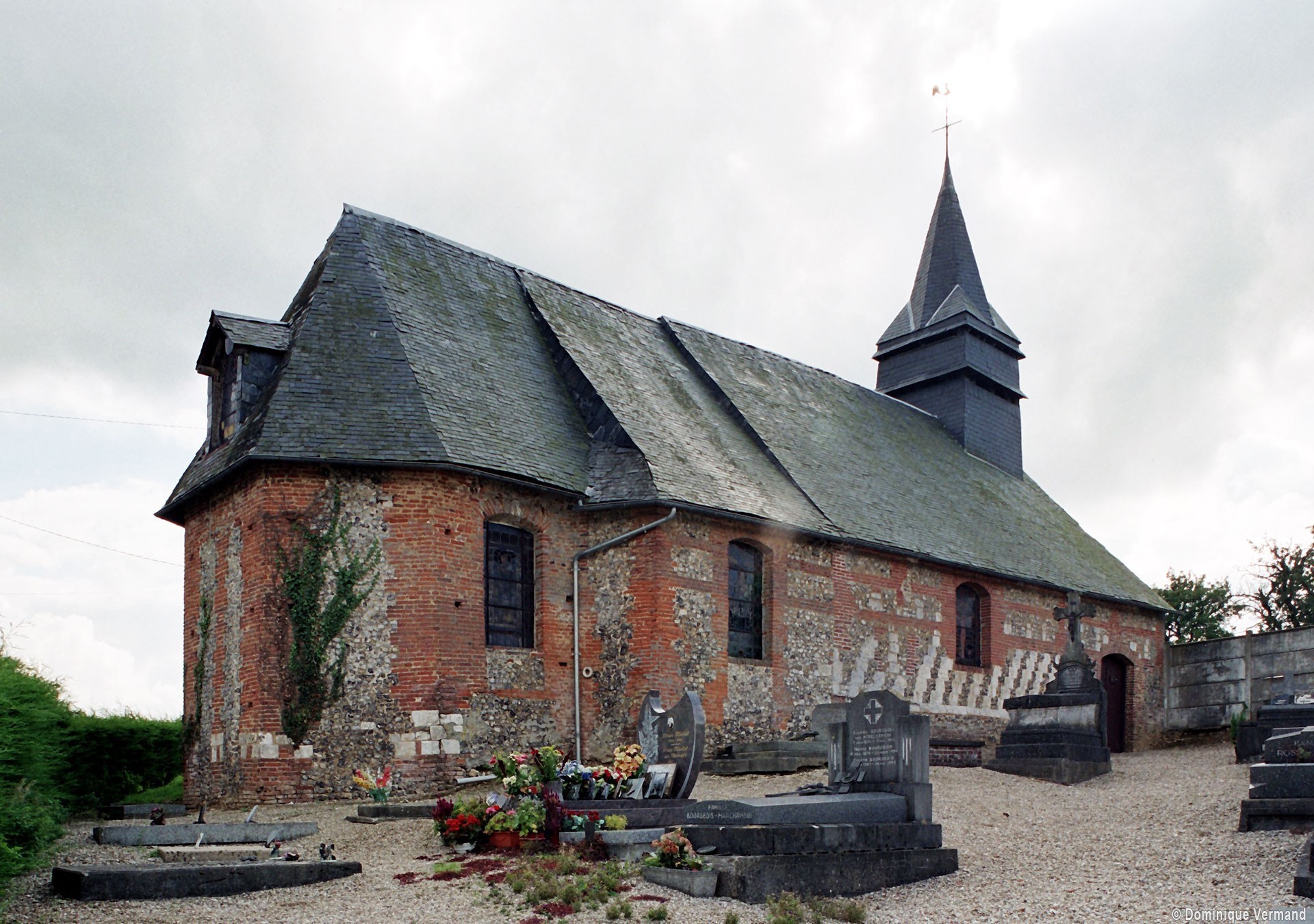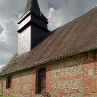 La construction est réalisée principalement en briques, avec quelques panneaux en silex. Au nord de la nef, un essai d’alternance de blocs de pierre crayeuse et de silex évoquant un damier n’a pas été poursuivi. Toutes les fenêtres, en briques, sont en cintre très surbaissé, ce qui ne permet pas de les faire remonter au-delà du 17ème siècle. L’intérieur n’a pas de caractère particulier et la charpente doit être contemporaine de l’édifice. Au revers de la façade, une petite structure en bois indépendante des murs soutient le clocher en charpente et ardoises selon un dispositif fréquent.