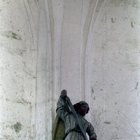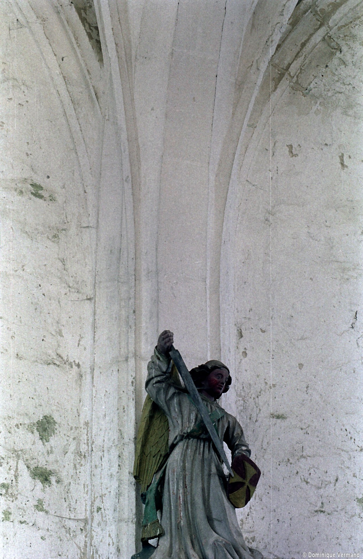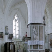 Avec ses contreforts traités en pinacles richement décorés, ses gargouilles aux angles et les oculi ouvragés qui ajourent deux des faces de sa double bâtière, le clocher est, comme la chapelle nord, une œuvre flamboyante. Incrustés dans les murs de la nef, huit bas-reliefs de la Renaissance complètent un intéressant ensemble de statues d’art populaire (2003).