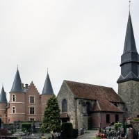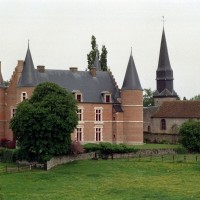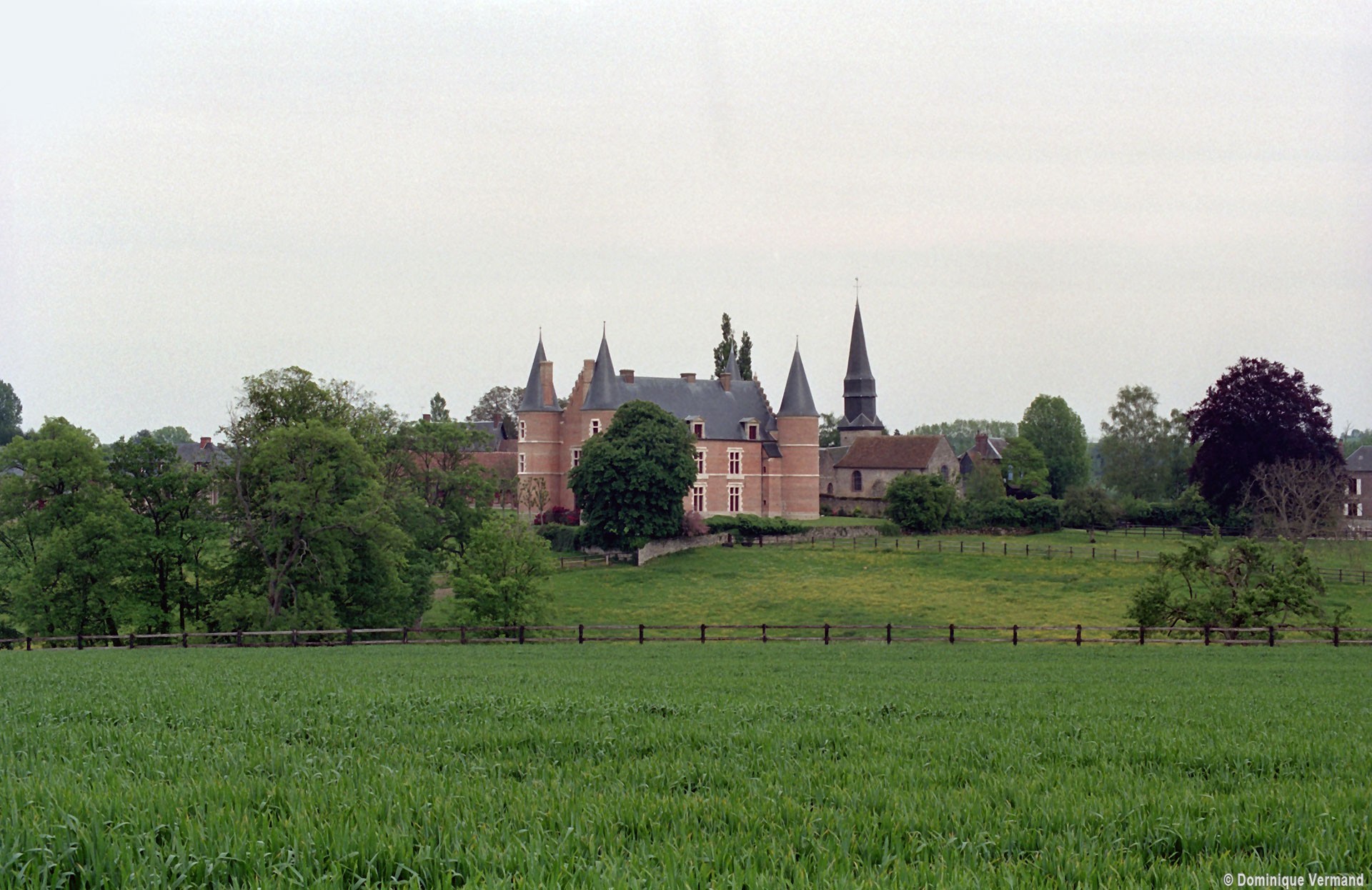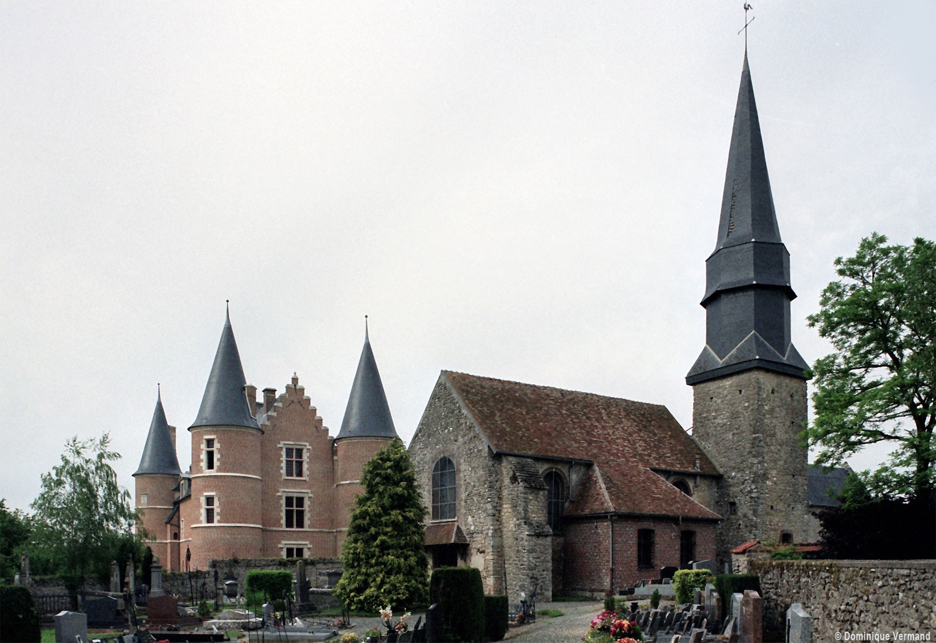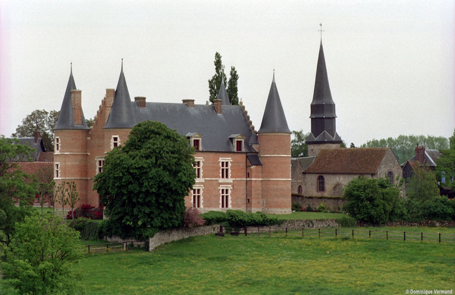 La haute flèche octogonale en charpente et ardoises de l’église Saint-Sulpice compose avec les toitures en poivrière des quatre tours du château tout proche un ensemble indissociable et particulièrement pittoresque. Construit en briques, le château a été rebâti durant la seconde moitié du 15ème siècle et le début du siècle suivant. L’église est, quant à elle, un édifice composite qui remonte principalement aux 11ème, 12ème et 14ème siècles.