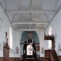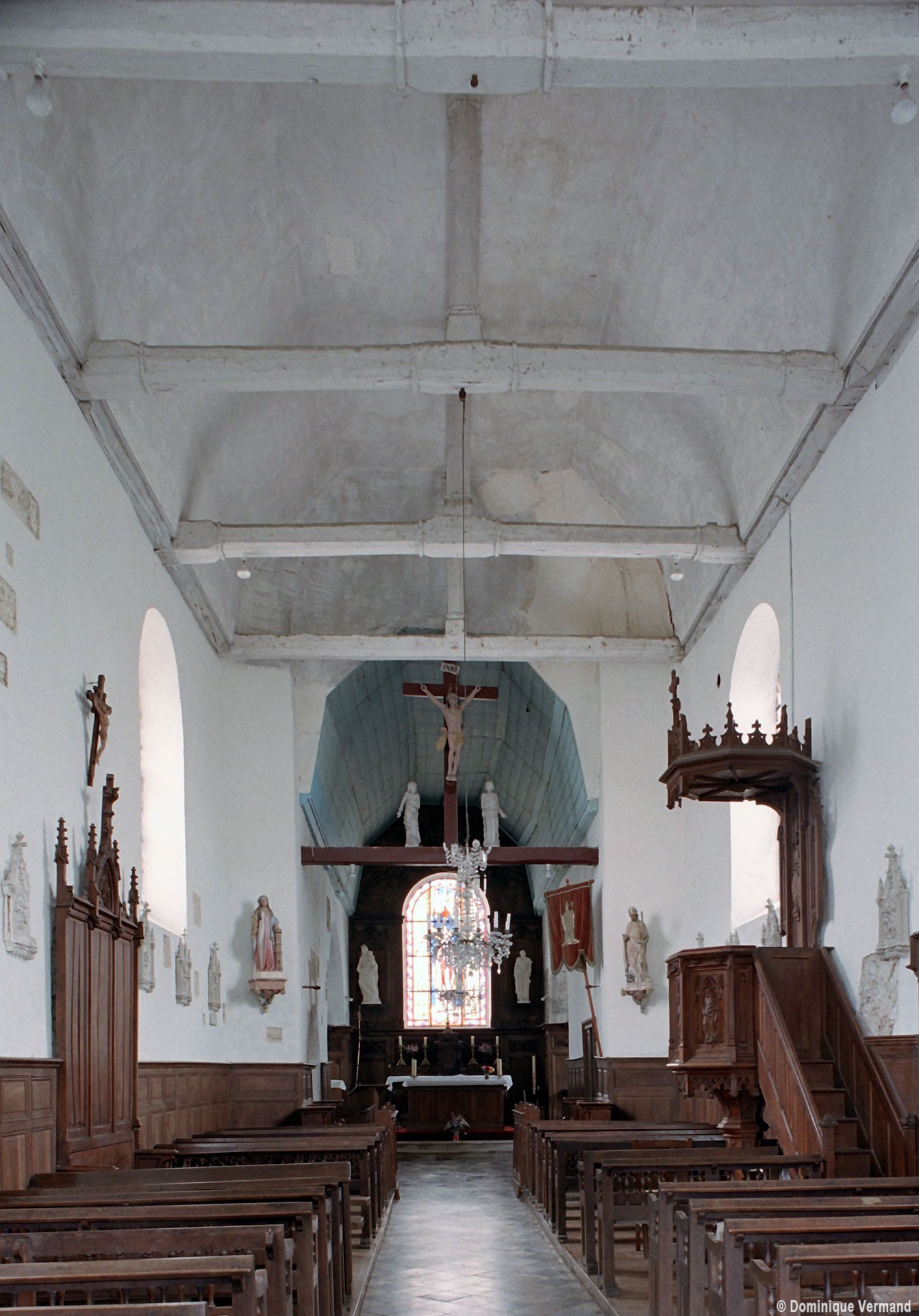 L’édifice du 11ème siècle comprenait la nef actuelle et un choeur plus étroit, à chevet plat, dont la partie centrale du choeur actuel garde sans doute le souvenir. La nef est bâtie en moellons dont quelques assises sont disposées en arêtes de poisson. Les angles sont appareillés en carreaux et boutisses et l’on note enfin, au nord, la présence de deux petites fenêtres en plein cintre, aujourd’hui bouchées. Les contreforts ont été ajoutés par la suite et les ouvertures actuelles sont des 18ème et 19ème siècles.