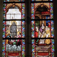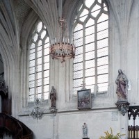 Comme toujours à cette époque, les arcades et les ogives retombent directement dans les supports, sans l’intermédiaire de chapiteaux. Par leur réseau, les fenêtres marquent la transition entre le style flamboyant et celui de la Renaissance. Ainsi, au nord, trois fenêtres ont encore le dessin – mais très assagi – en courbe et contrecourbe caractéristique du flamboyant tandis que les autres fenêtres ont le réseau en plein cintre de la Renaissance. C’est également de la Renaissance que se réclame le petit portail, inachevé, qui s’ouvrait au sud.