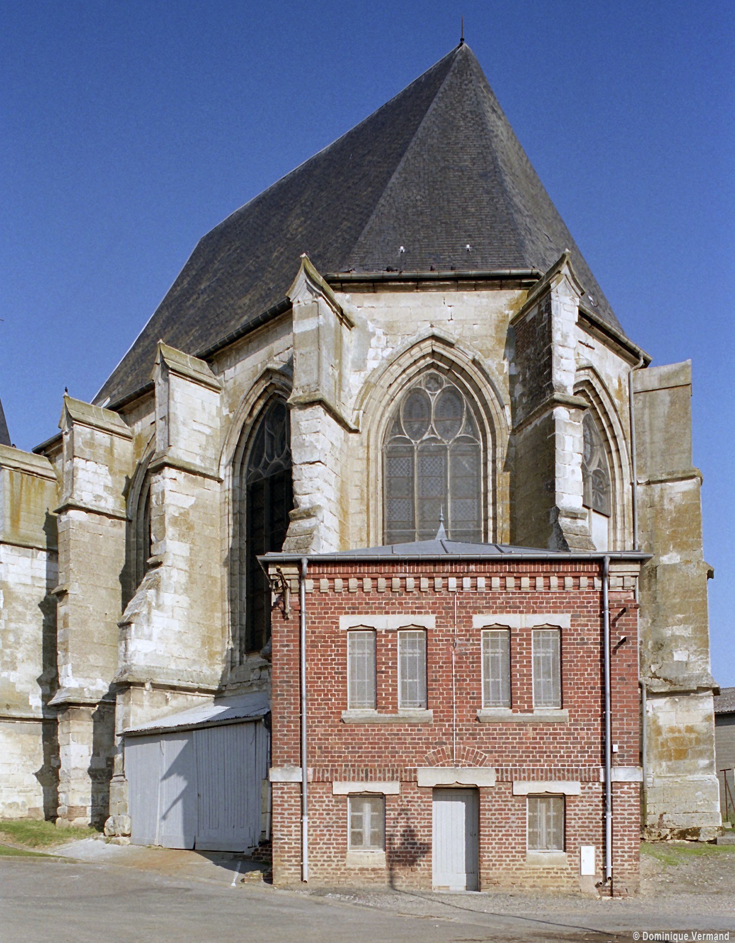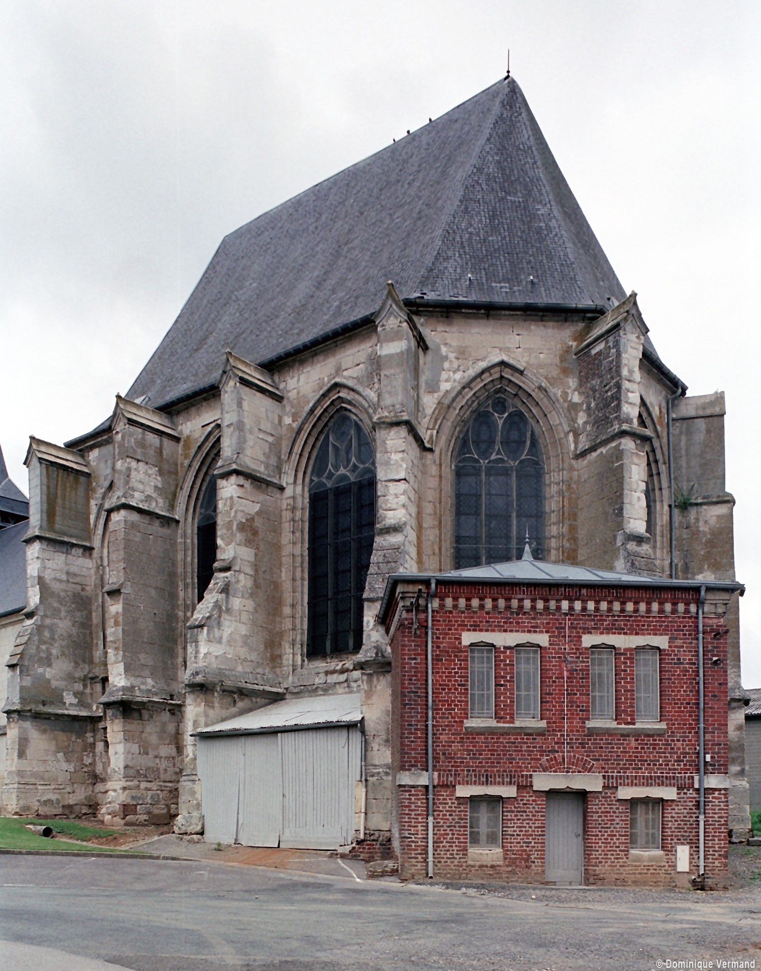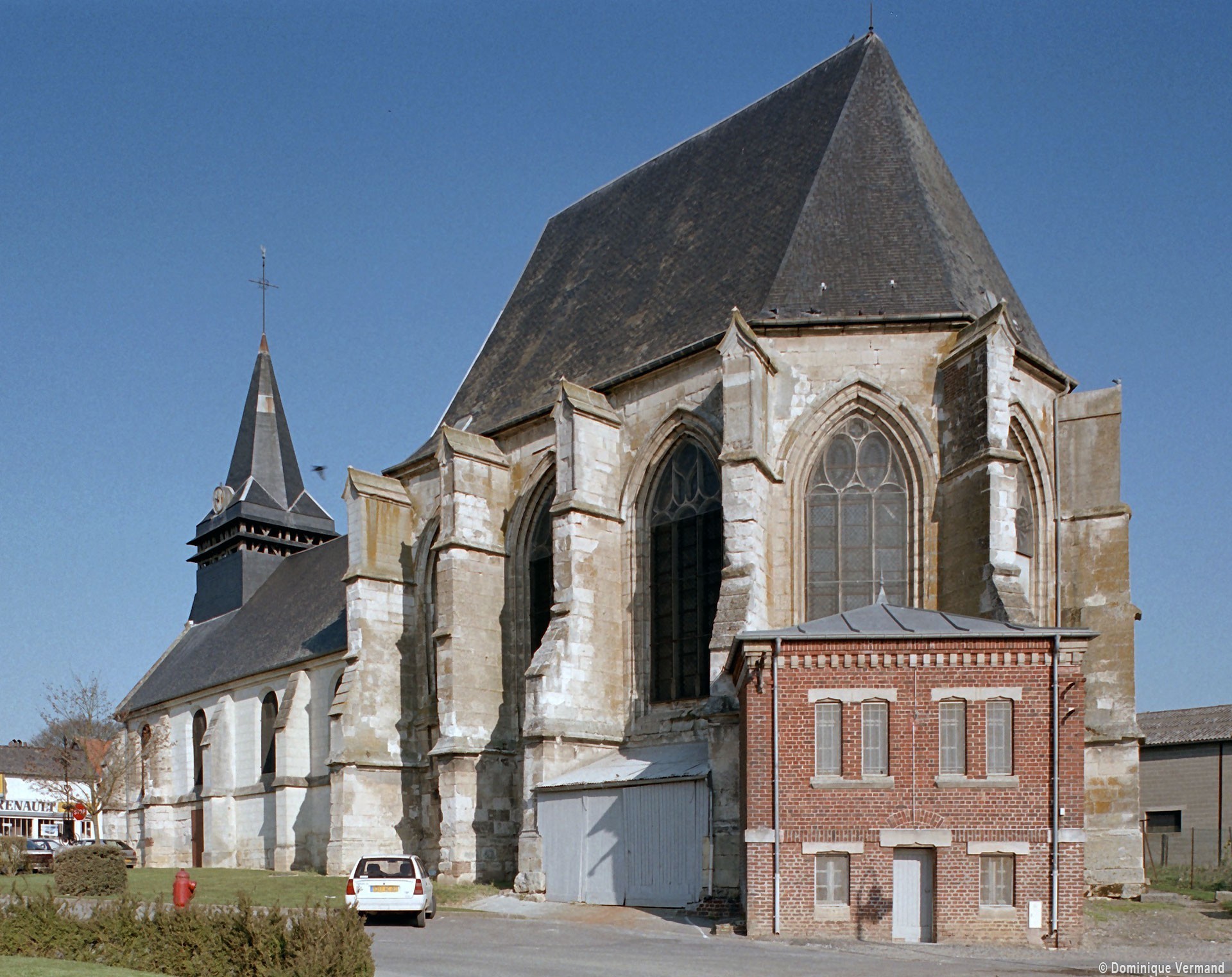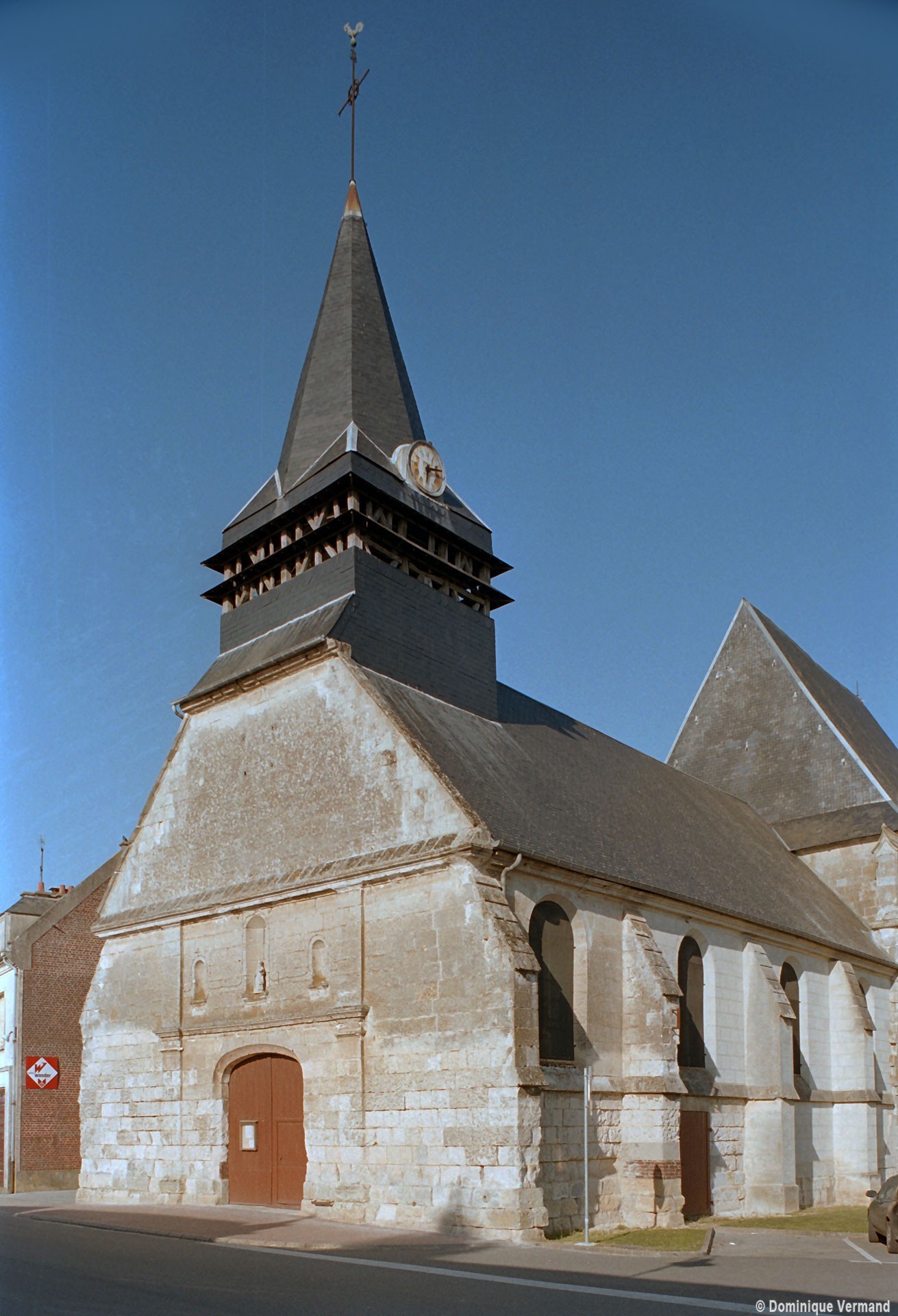 Saint-Pierre offre la silhouette, très courante en Picardie, d’un haut chœur du 16ème siècle dominant une nef unique dont le clocher en charpente et ardoise, bâti en façade, n’atteint qu’à peine la hauteur de la toiture du chœur.
