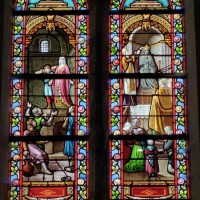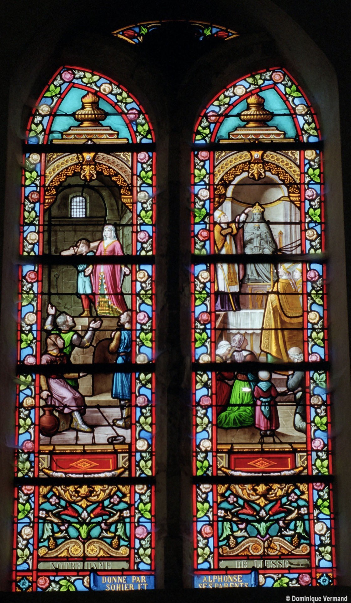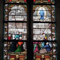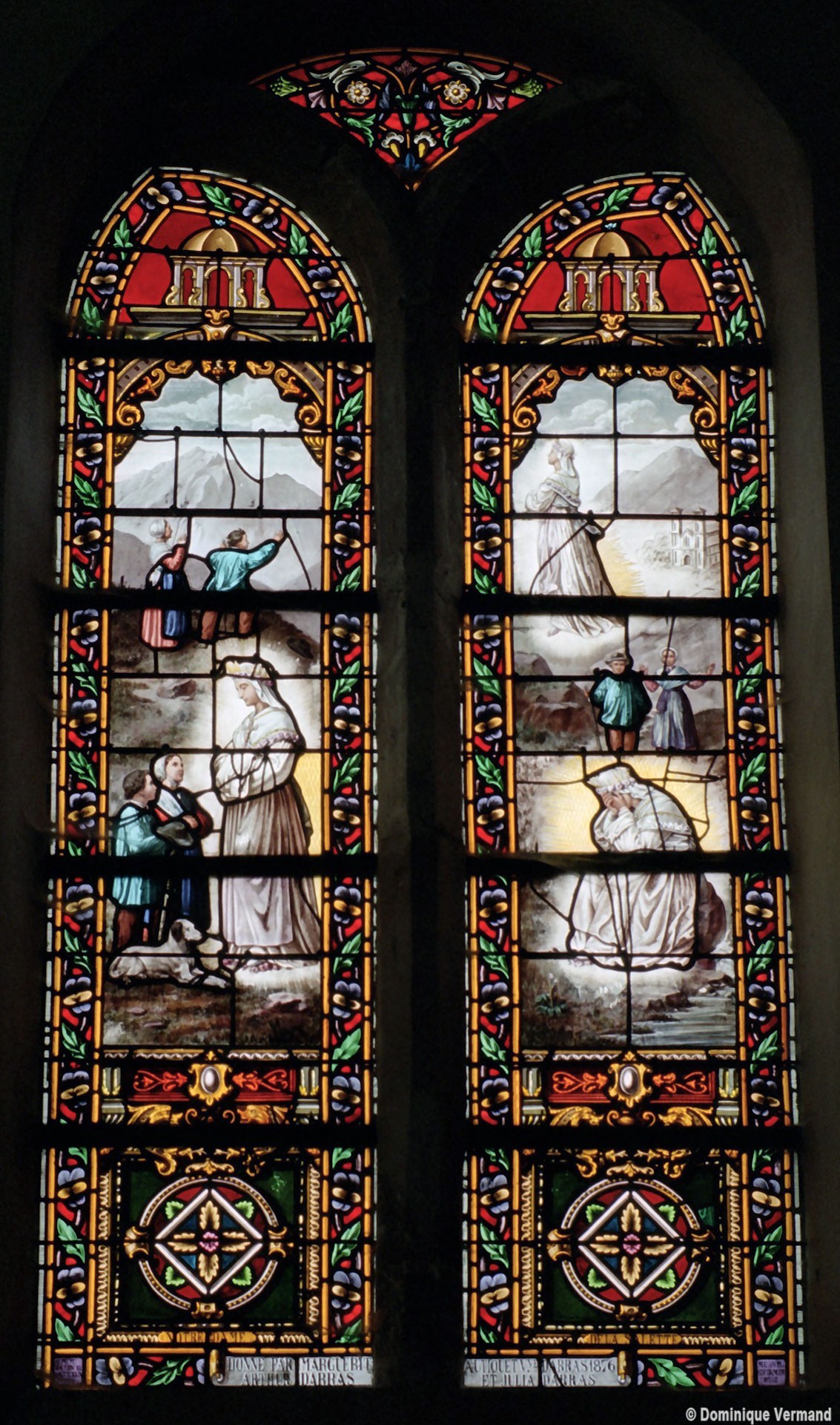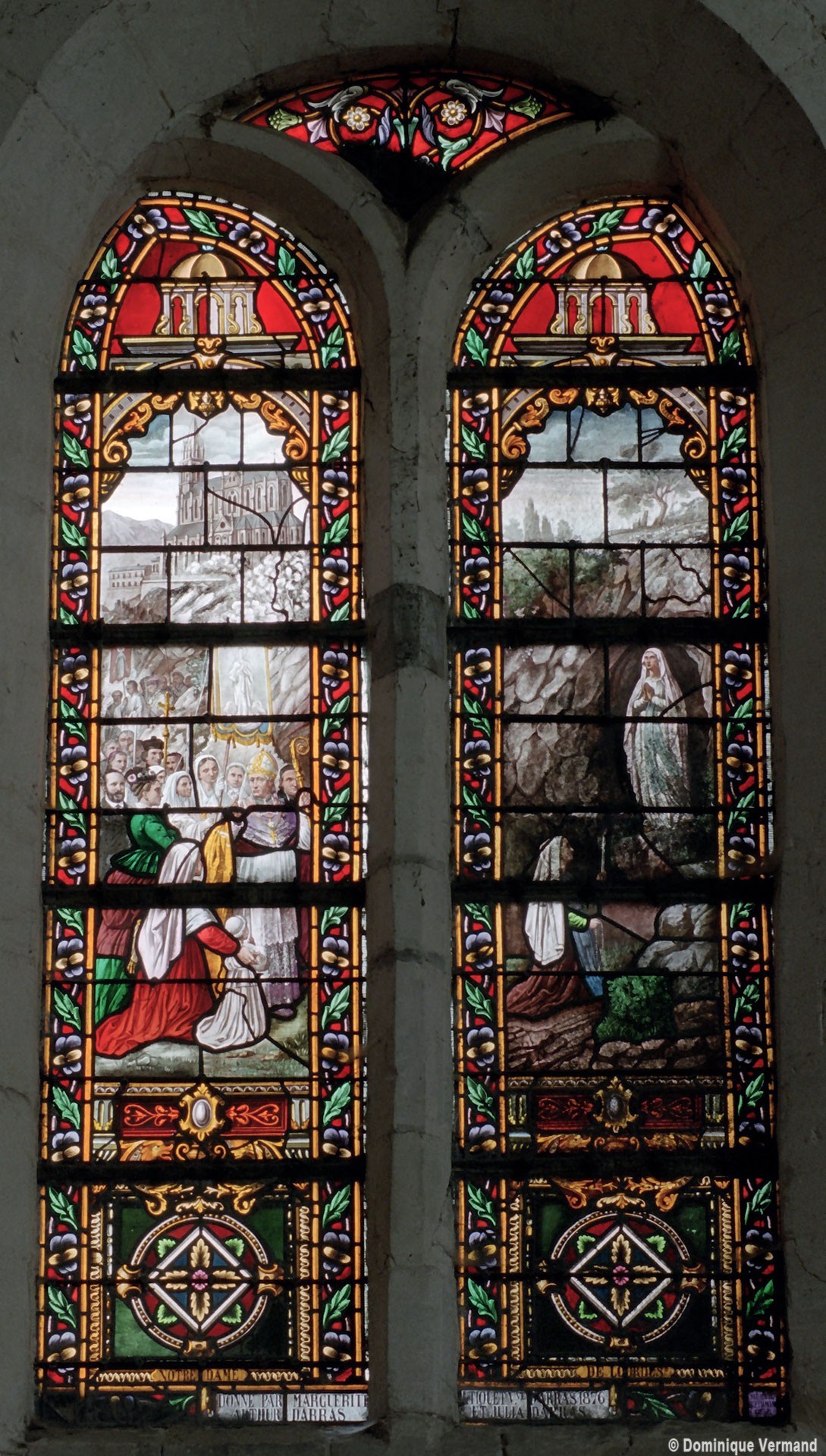Homogène et solidement construite en pierres bien appareillées, la nef est de 1770, une date qui s’accorde bien avec le sobre décor de pilastres et de niches de la façade. Du mobilier on retiendra, dans le chœur, un petit bas-relief en bois représentant la Crucifixion, quatre hauts-reliefs anglais, en albâtre, de la seconde moitié du 15ème siècle, incrustés dans le retable du maître-autel et, dans la nef, une intéressante série de six vitraux consacrés aux Apparitions de la Vierge (1876) (2005, modifié 2017).