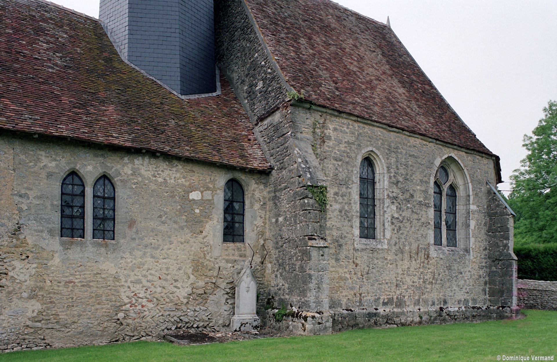 Un nouveau choeur, plus haut et plus large que la nef, sera construit au 16ème siècle. Bâti en moellons, comme cette dernière, c’est néanmoins une construction soignée qui, à l’extérieur, vaut pour l’alternance des deux types de fenêtres qui l’éclairent : à trois simples lancettes aux ébrasements à ressauts répondent trois fenêtres plus grandes – deux latérales et une au chevet – au réseau flamboyant.