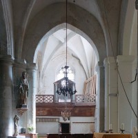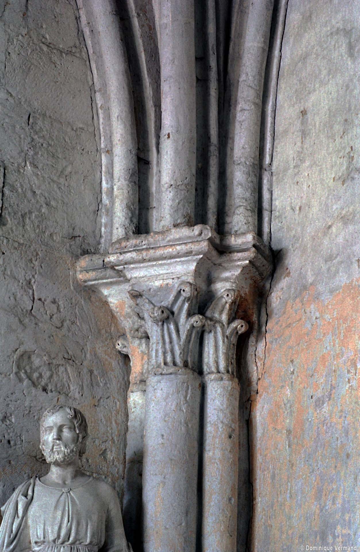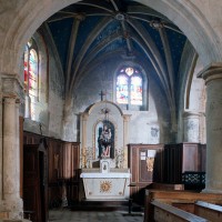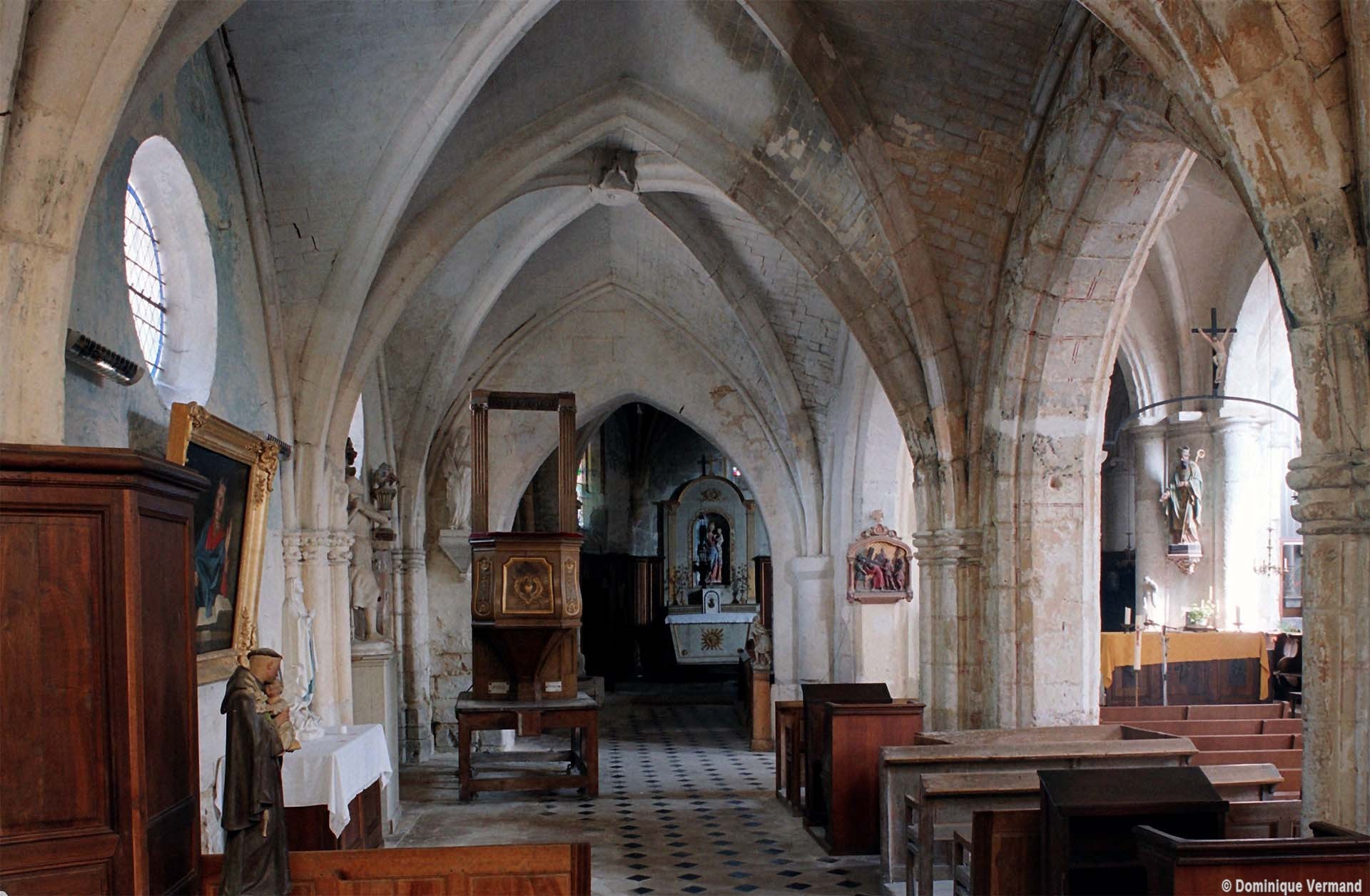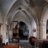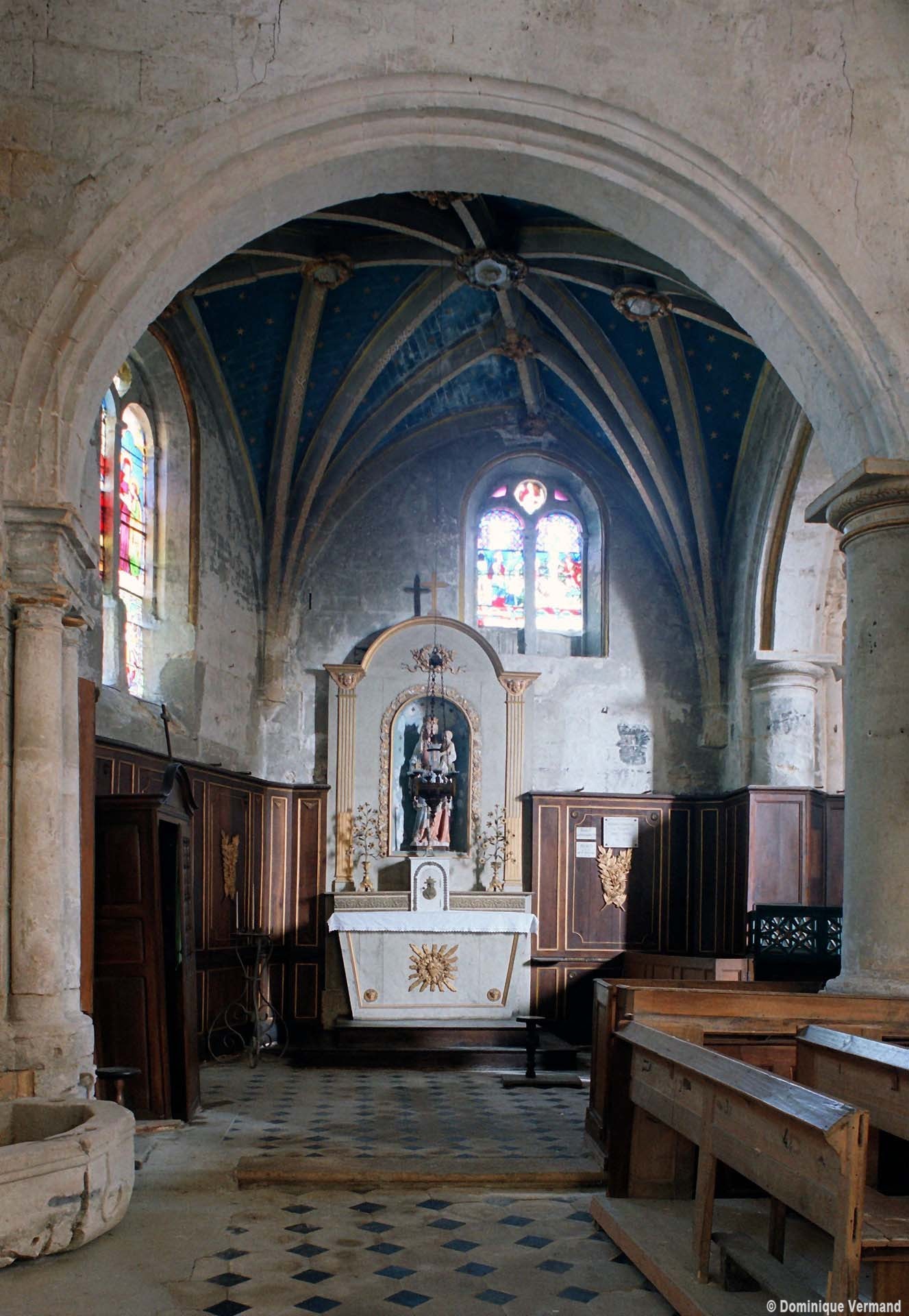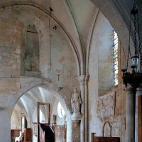 Mais c’est vers 1200 que l’église connaît sa première transformation importante avec la reconstruction des parties orientales, désormais constituées d’un transept saillant et d’un chœur à chevet plat. Le bras nord est la seule partie bien conservée de cet ensemble, largement modifié par la suite. Les ogives et formerets de la voûte retombent sur des faisceaux de colonnettes par l’intermédiaire de chapiteaux à crochets et les fenêtres sont de simples lancettes, dont une, traitée avec raffinement, est également visible au croisillon sud.