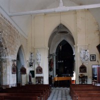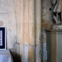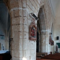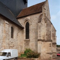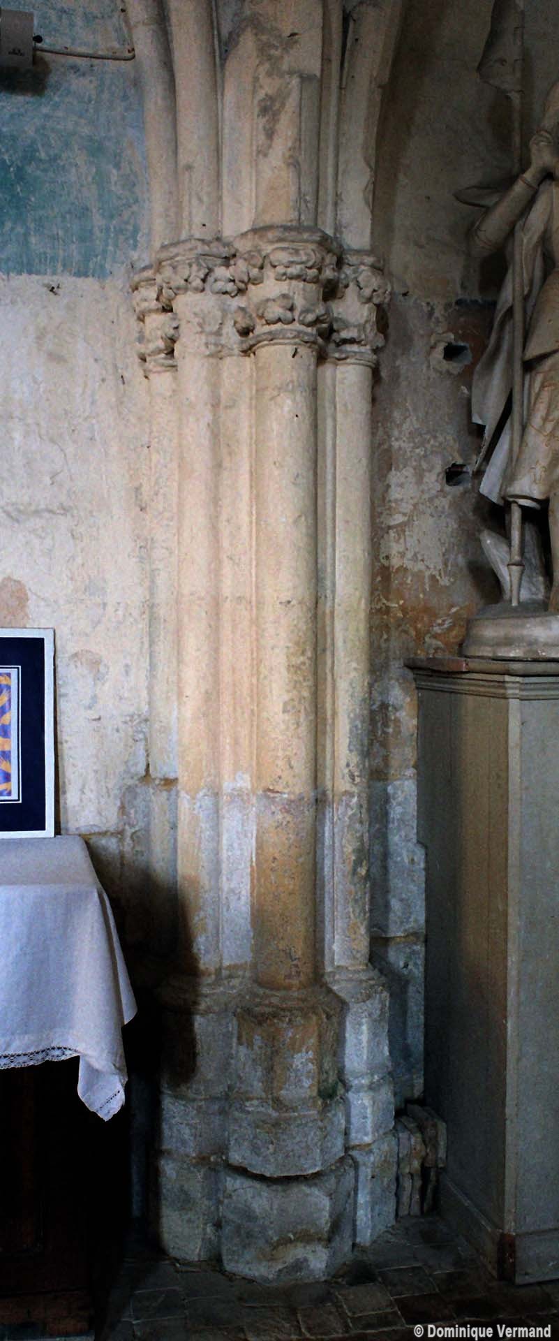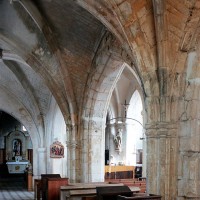 Le 14ème siècle verra la construction d’un intéressant bas-côté, doté d’une toiture indépendante, au nord de la nef. Une belle fenêtre au riche remplage caractéristique de l’époque l’éclaire à l’ouest. A l’intérieur, les voûtes retombent sur des groupes de cinq fines colonnettes. Les chapiteaux superposent, en une frise continue, deux rangs de feuilles ou de simples tores.