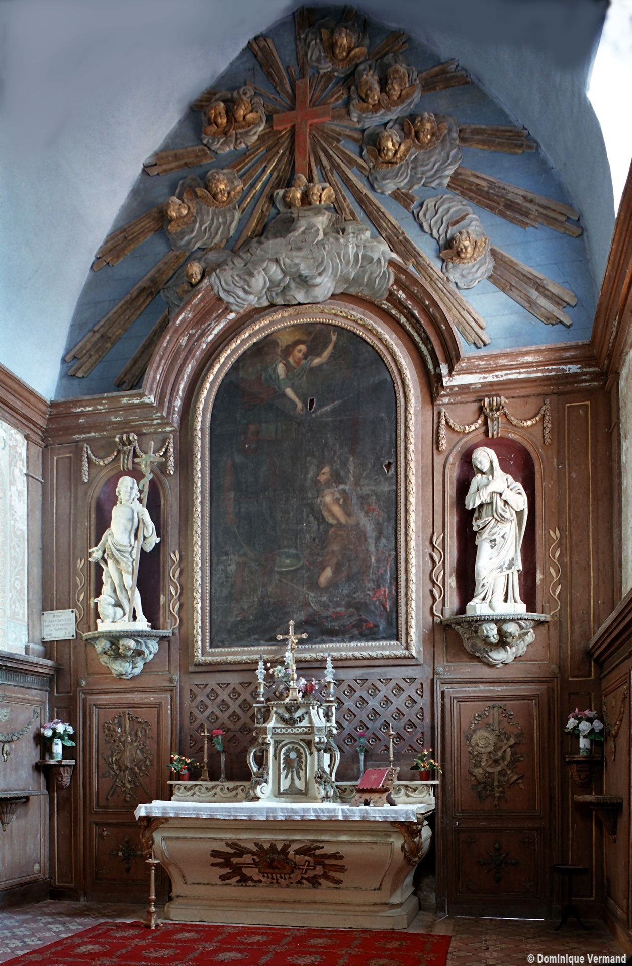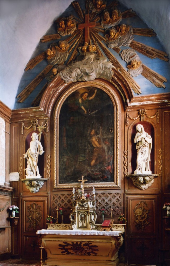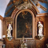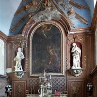Le choeur possède un superbe ensemble de boiseries Louis XIV que surmonte une impressionnante gloire parsemée d’anges, en bois doré et peint. La cuve baptismale en plomb du 14ème siècle au décor d’anges et de saints (saint Jean Baptiste, saint Pierre…) est une vraie rareté et rappelle celle de Lavacquerie (2007).
