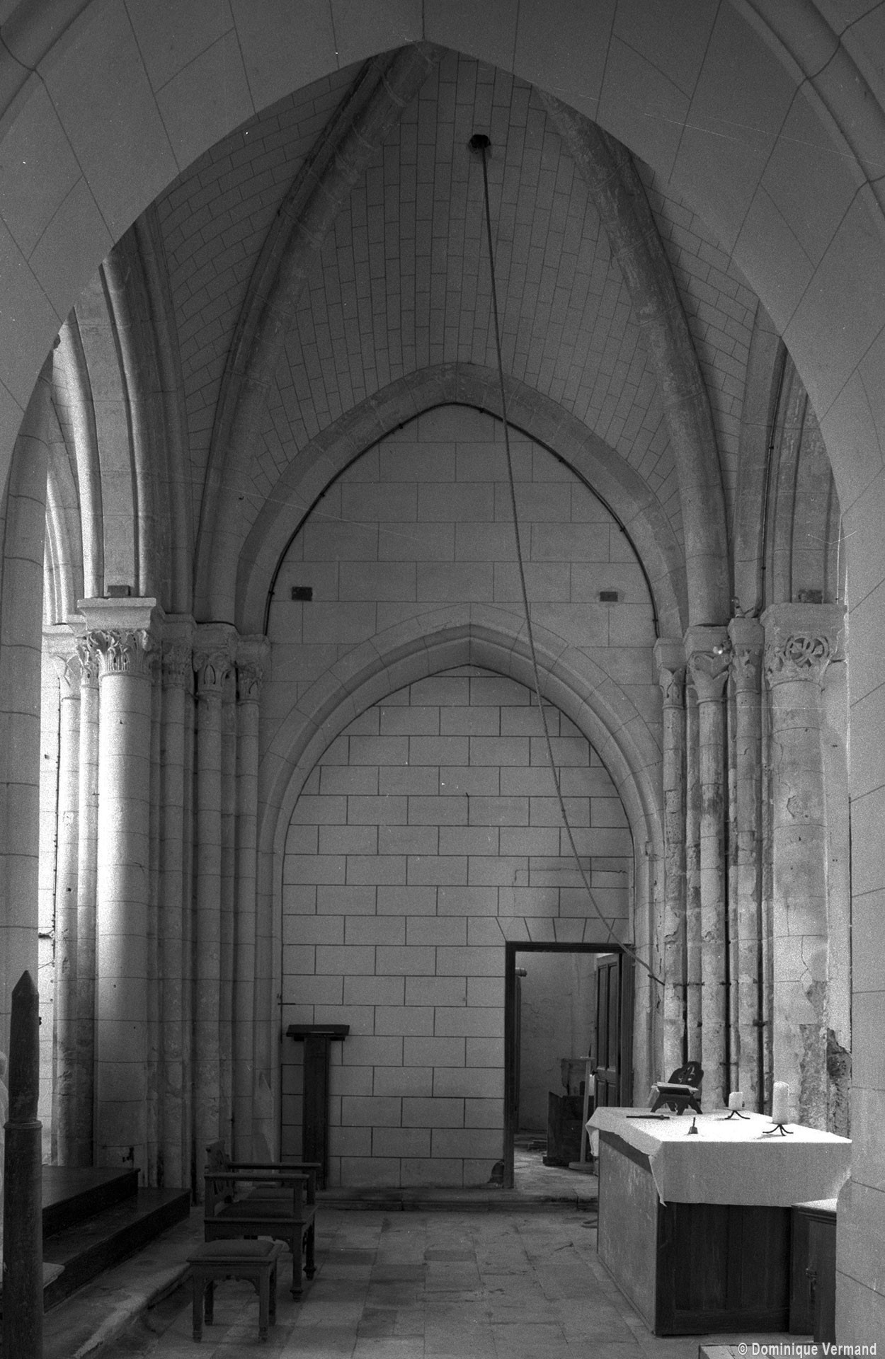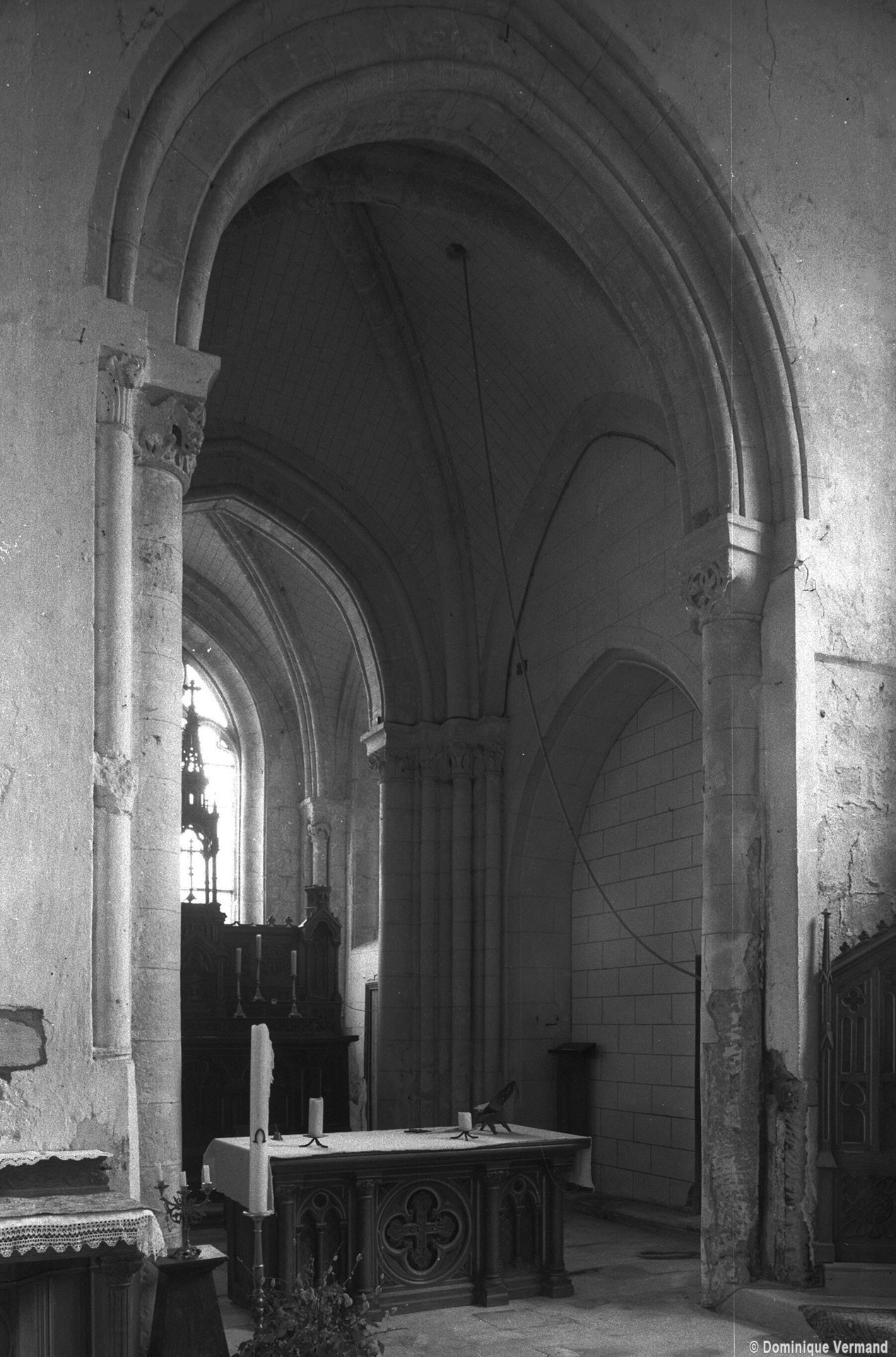 Les deux travées du chœur sont couvertes par des voûtes d’ogives fortement bombées. Doubleaux, ogives et formerets sont reçus sur des puissants groupes de demi-colonnes et colonnettes d’un bel effet plastique, qui assuraient également une base solide au clocher que remplace aujourd’hui une simple flèche en charpente couverte d’ardoises. Les chapiteaux à décor de feuilles lisses, d’acanthes ou de tiges entrelacées constituent un décor très répandu dans le Soissonnais et un ange orne la clef de la seconde voûte.