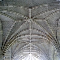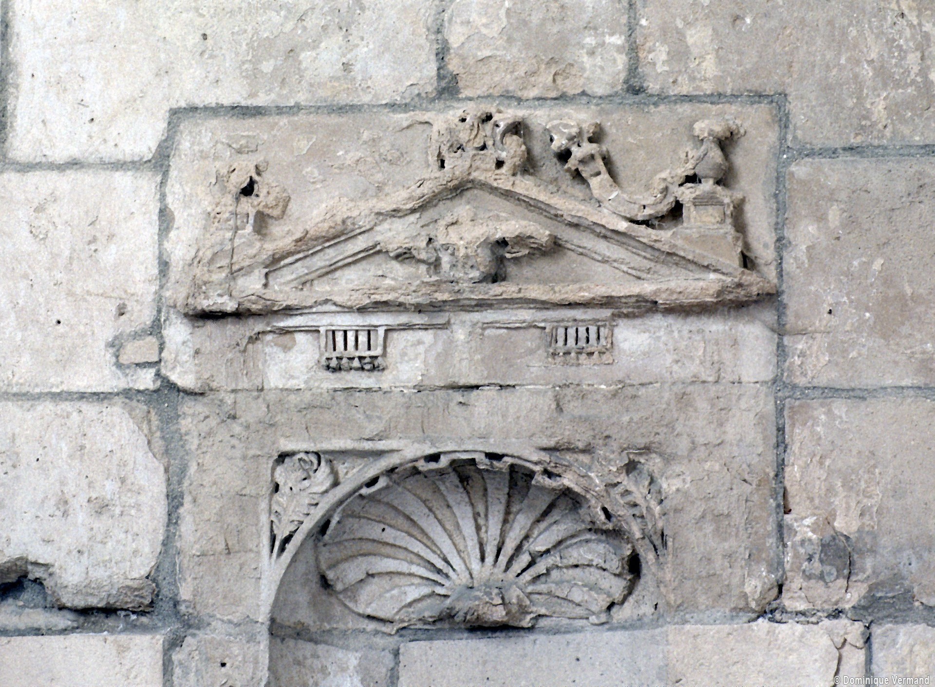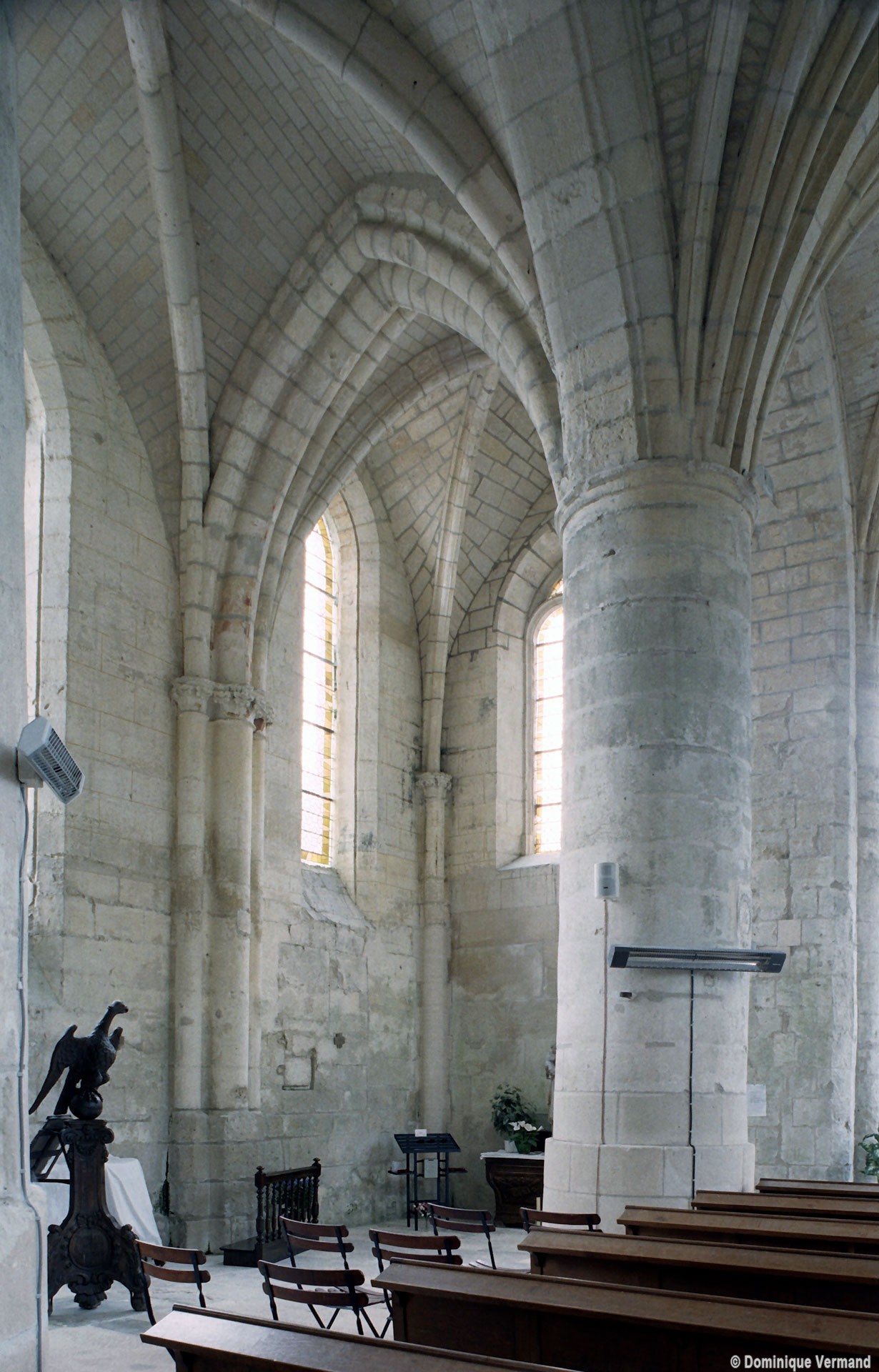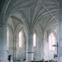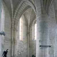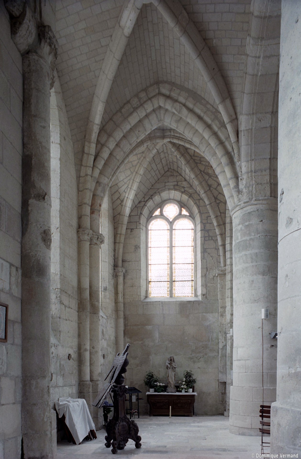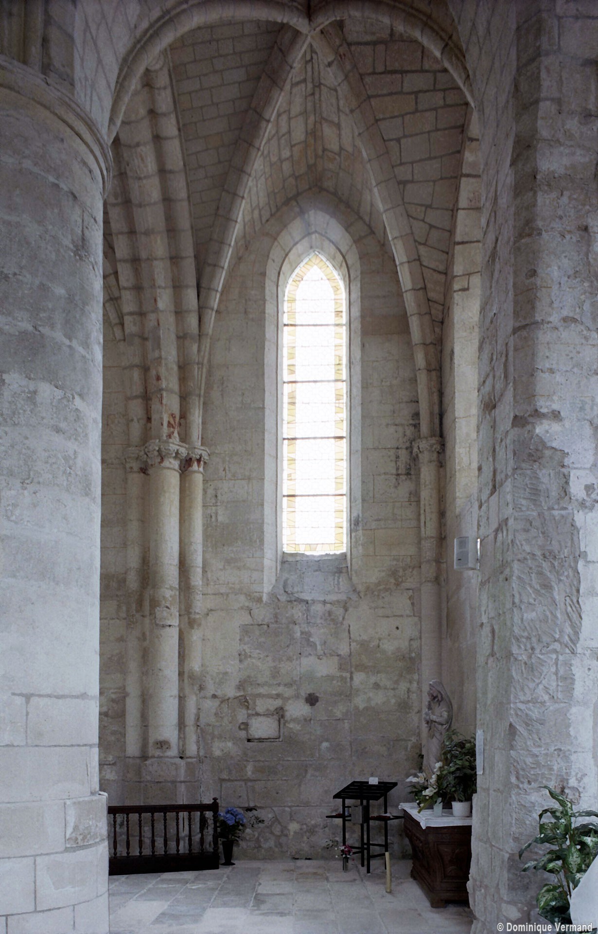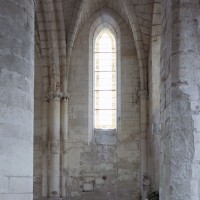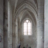 Dans le bras sud, la croisée d’ogives a disparu et seuls restent les liernes et les tiercerons. Dans l’abside, les nervures retombent sur des culs-de-lampe qui, outre celui qui est daté, sont tous d’un grand raffinement décoratif, à l’image de celui où sont sculptés des béliers. Au sud, à la jonction du transept et de l’abside, une niche avec socle et dais, décorés dans le style de la Renaissance, abrite une statue. A côté, dans l’abside, une piscine liturgique est sculptée d’une coquille Saint-Jacques finement travaillée.