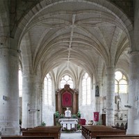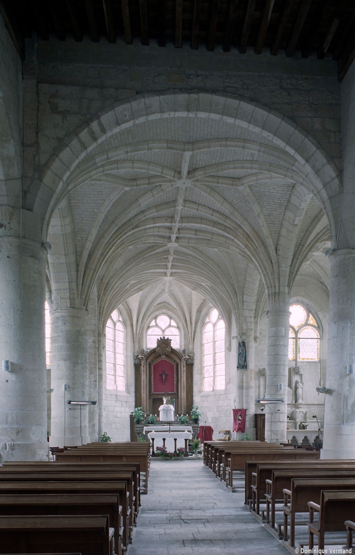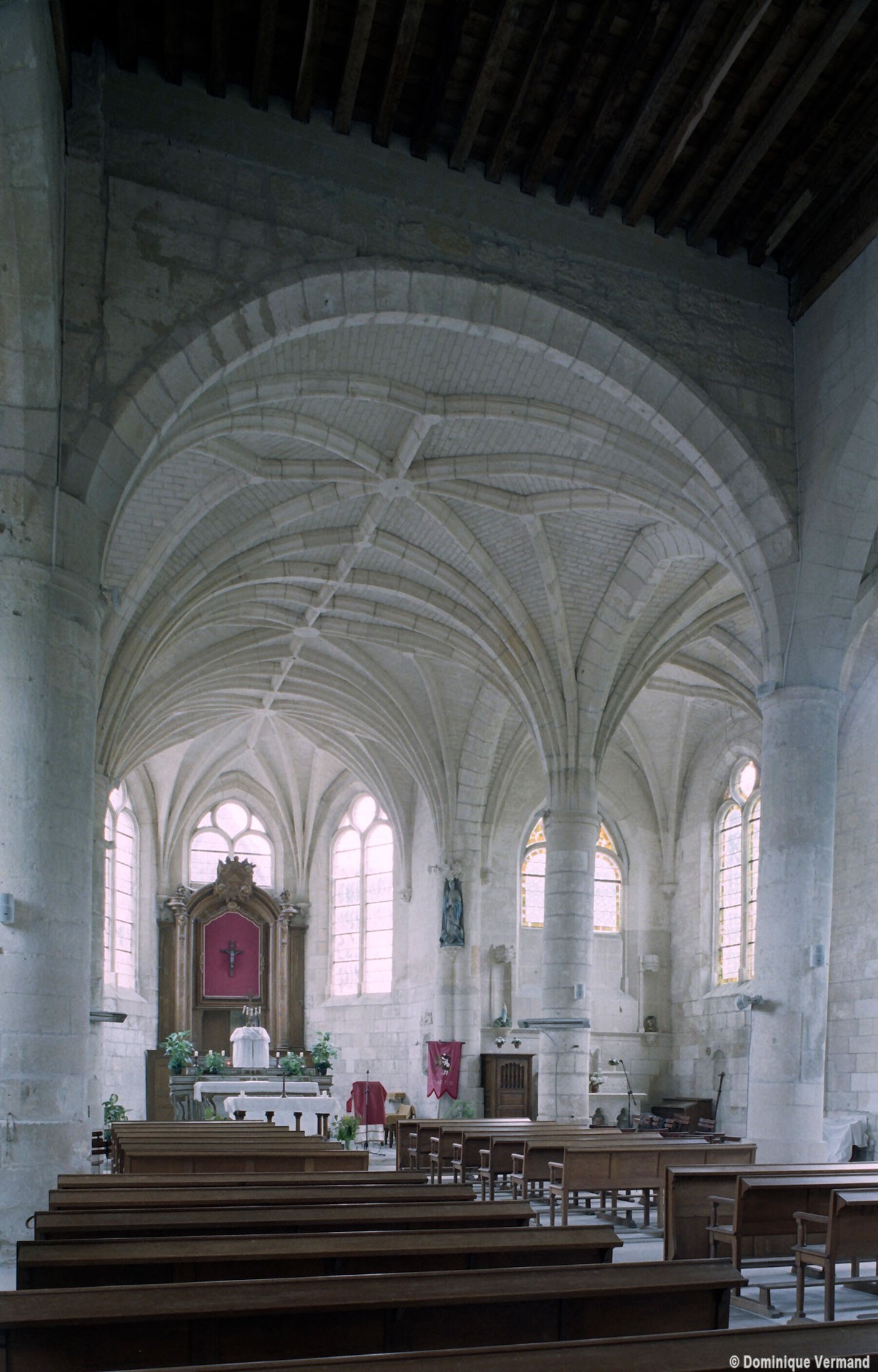 L’édifice résulte, pour l’essentiel, d’une reconstruction effectuée au 16ème siècle, mais le bras nord du transept, à l’origine une chapelle, est beaucoup plus ancien et peut être attribué au milieu du 13ème siècle. Ses deux travées sont voûtées d’ogives profilées en amande et reçues sur des chapiteaux à crochets. Des traces de peinture de la même époque sont encore visibles. Seule la fenêtre nord de la seconde travée – une simple lancette – remonte à cette époque.