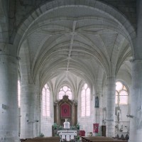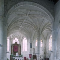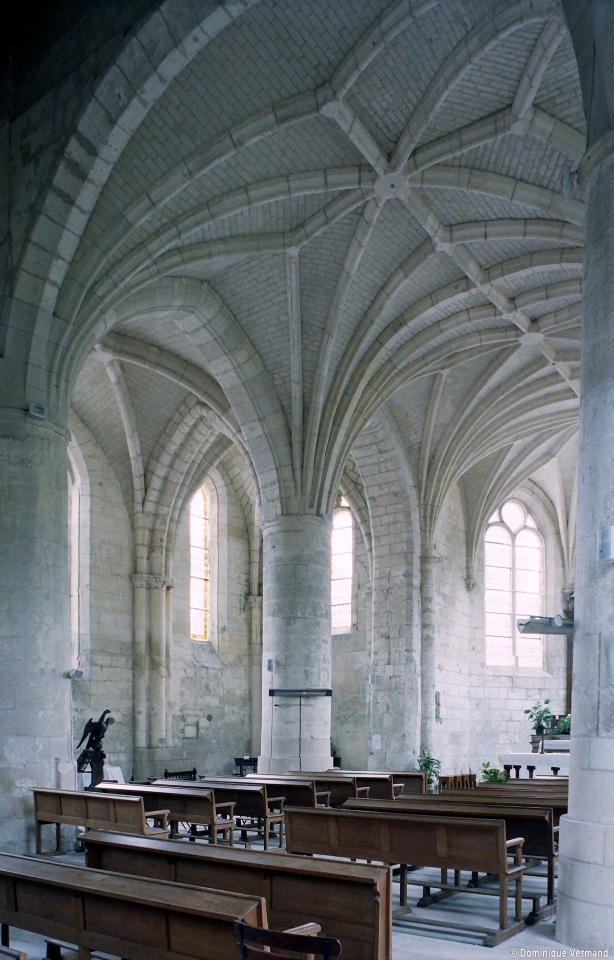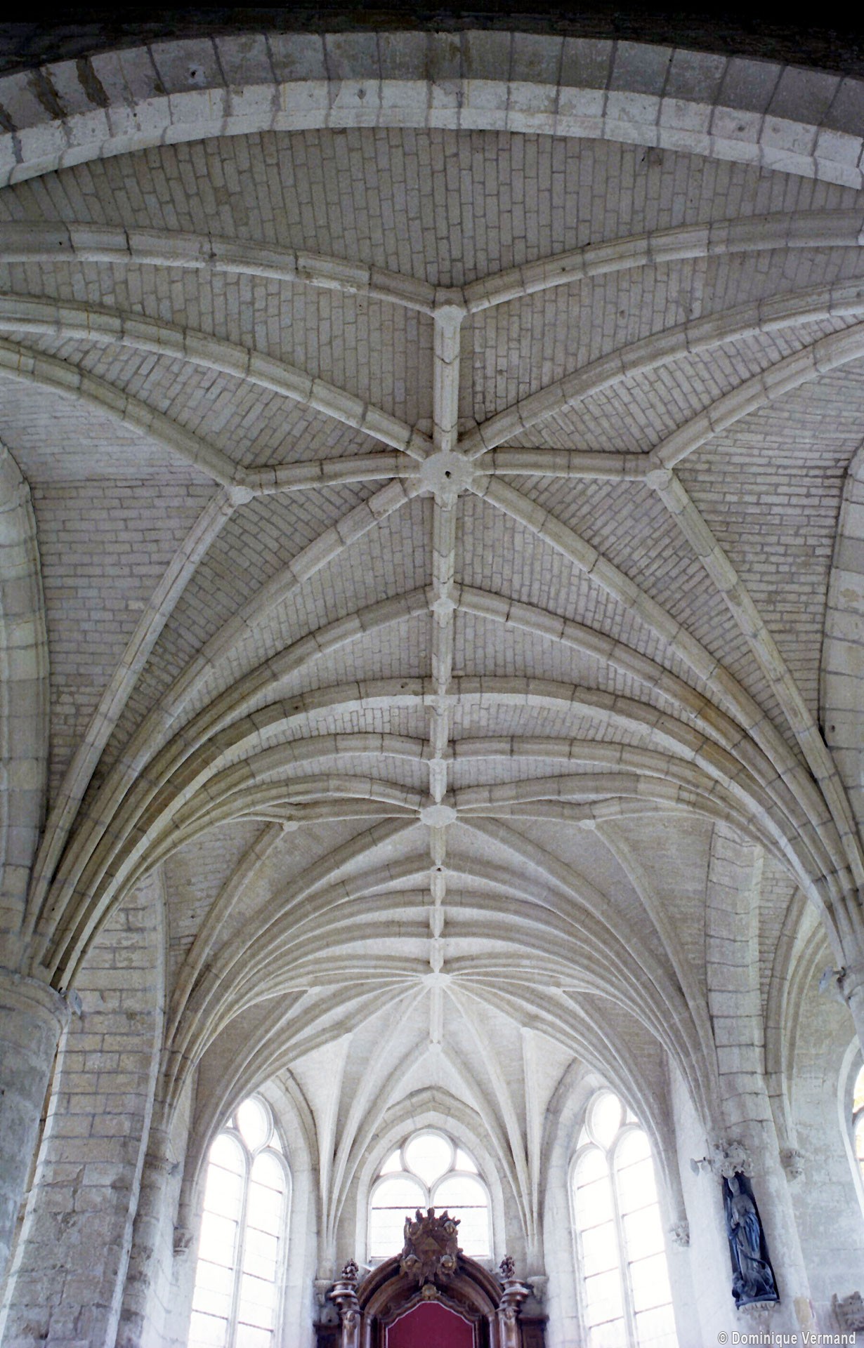 Le reste du transept et l’abside forment un ensemble homogène et de grande qualité. Dans l’abside, au sud, un cul-de-lampe sculpté de deux angelots porte un petit cartel daté 1551, parfaitement en accord avec le style de la construction où les styles gothique flamboyant et renaissance se mélangent intimement. Toutes les voûtes sont portées à la même hauteur et reçues, au centre, sur quatre piles circulaires, celles du nord étant plus forte en raison de la présence du clocher. Dans la partie centrale et l’abside, le réseau de ces voûtes comporte des liernes et des tiercerons, nervures supplémentaires qui viennent compléter la croisée d’ogives et sont caractéristiques du style gothique tardif.