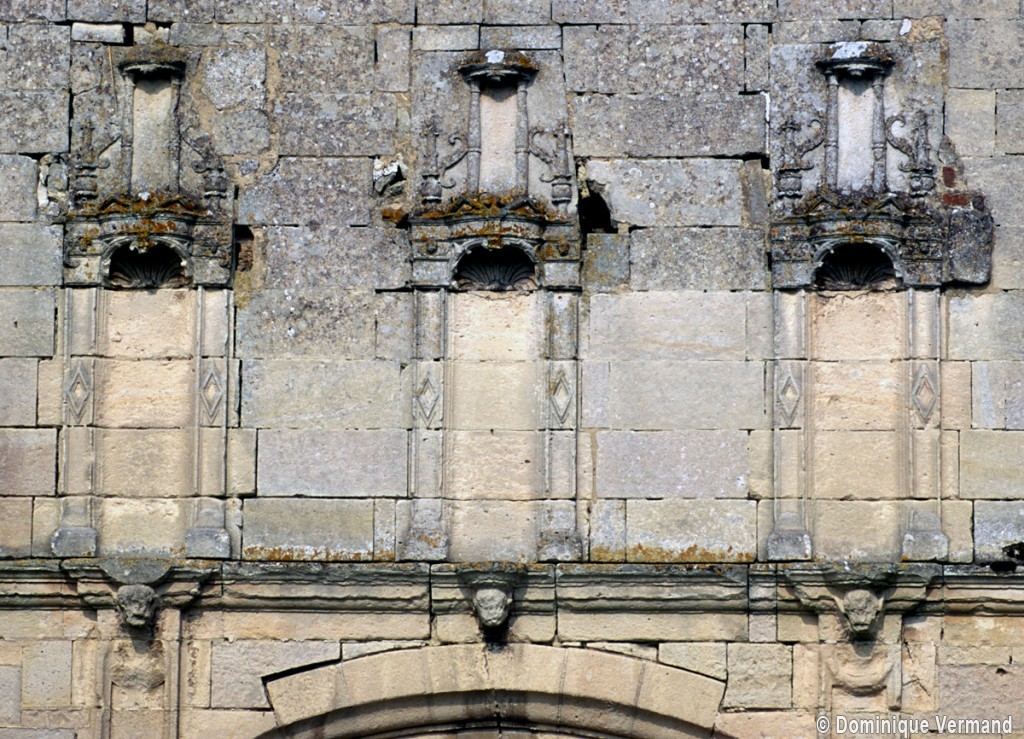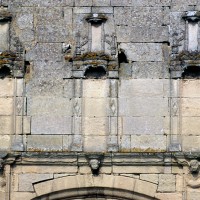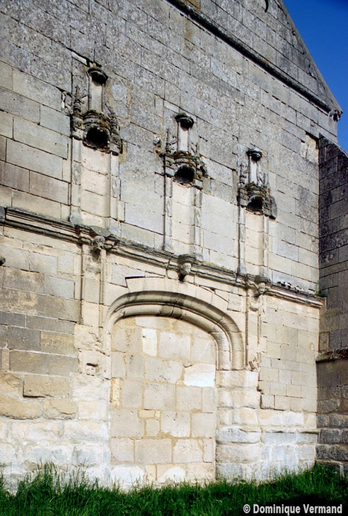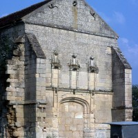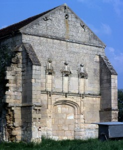 A l’extrémité de la nef, une amorce de mur avec le piédroit d’une fenêtre montre qu’il existait autrefois un transept mais, pour le reste, rien n’est connu du plan de l’église. Ses dimensions devaient être modestes car la nef, sans bas-côtés et aujourd’hui privée de ses voûtes, ne compte que deux travées. L’intérêt se concentre sur la belle façade en pierres de taille (les murs latéraux sont en moellons) ornée d’un portail en cintre surbaissé que surmontent trois niches avec dais délicatement ouvragés. Par son style, cet ensemble appartient à la Renaissance (2001).