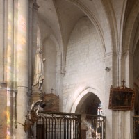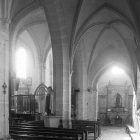 La nef, reconstruite au 16ème siècle sur le même plan que la précédente, qui comportait également des bas-côtés comme le prouvent les deux arcades percées dès l’origine dans les murs ouest des bras du transept, est d’une grande simplicité. Les voûtes d’ogives ne datent que du 19ème siècle. Deux petits autels identiques, de style classique, subsistent dans les bras du transept.