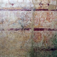C’est à la même époque qu’est entrepris le cycle de fresques de la chapelle nord. Il constitue, avec celui de l’église de Ponchon, l’un des rares témoins de qualité de peinture murale médiévale dans l’Oise. Très dégradées à la voûte et dans les parties basses des murs, les fresques sont en revanche d’une remarquable fraîcheur au mur nord. Dans le tympan est représentée l’Annonciation et, au-dessous, sur trois registres qui se continuent sur les murs latéraux, figurent des scènes qui pourraient se rapporter à la légende de saint Eustache (2007).