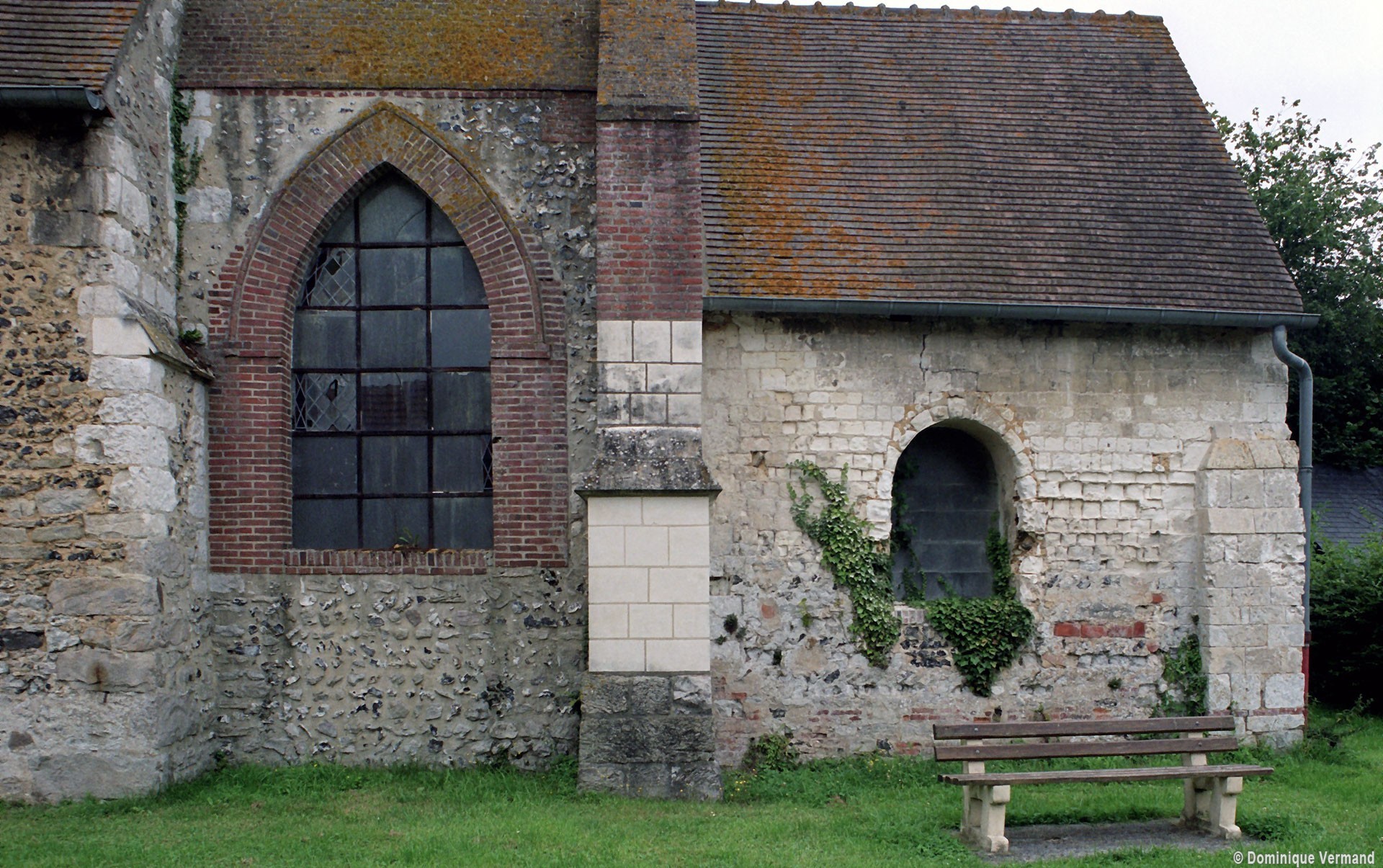 Bâtie dans un site verdoyant à proximité du Thérain, Notre-Dame est une église modeste par ses dimensions mais d’un grand intérêt pour les problèmes archéologiques qu’elle pose et, plus encore, pour le rare cycle de fresques murales du début du 14ème siècle qu’elle conserve. L’ossature d’une église du 11ème siècle composée d’une nef unique et d’un choeur de deux travées, à chevet plat, se lit encore dans l’édifice actuel : l’appareil en moellons et silex mélangés, souvent disposé en arêtes de poisson, et une petite fenêtre à linteau échancré, au mur nord de la nef, l’attestent. Il est possible qu’un clocher, presque totalement reconstruit par la suite, faisait partie de cette première église.