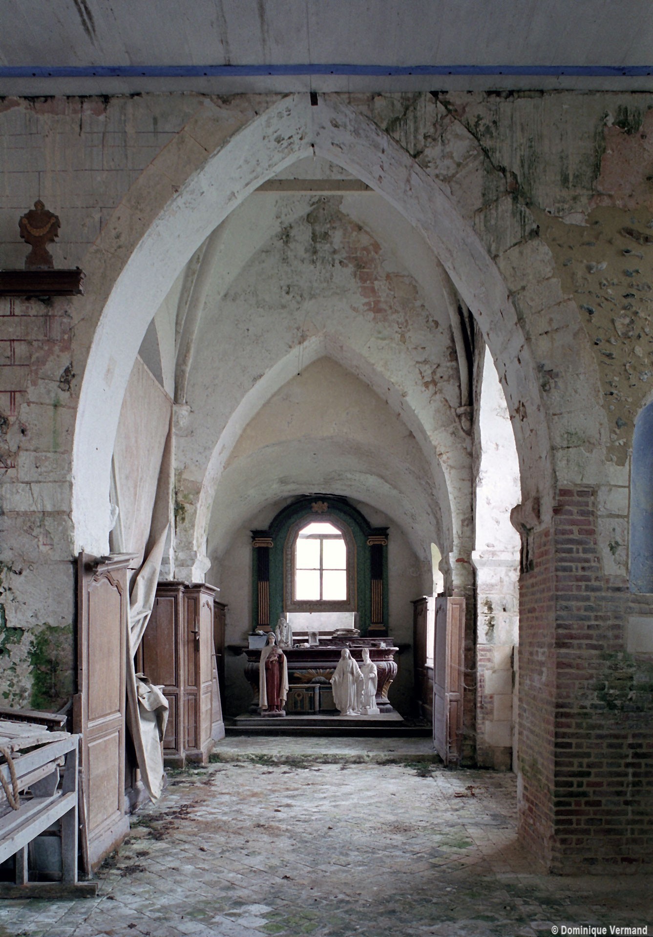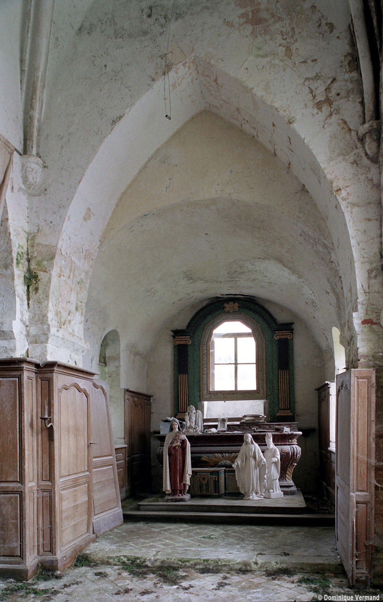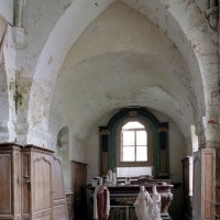 Le choeur sera complètement refait dans ses parties supérieures au début du 12ème siècle. L’appareil en petites pierres crayeuses disposées en assises bien formées, deux contreforts plats au chevet et une voûte en berceau plein cintre sur la seconde travée portent bien la marque de cette époque. Toutes les fenêtres ont malheureusement été dénaturées.