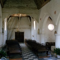 Beaucoup plus élevé que la nef, celui-ci comprenait deux travées droites suivies d’une abside à cinq pans. Il était épaulé par de minces contreforts très saillants et éclairé par des fenêtres à simple lancette de style flamboyant. Les voûtes avaient été refaites en lambris en 1791. La nef, qui subsiste seule aujourd’hui, est constituée de deux travées qui communiquent avec les bas-côtés par deux arcades brisées retombant au centre sur une pile circulaire. A peu près contemporaine du chœur, elle est couverte d’une simple charpente.