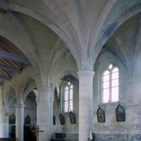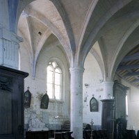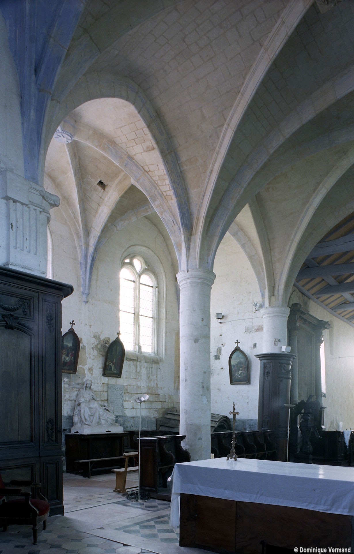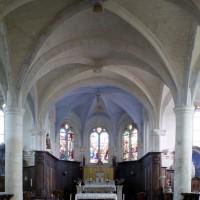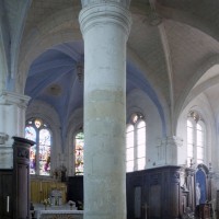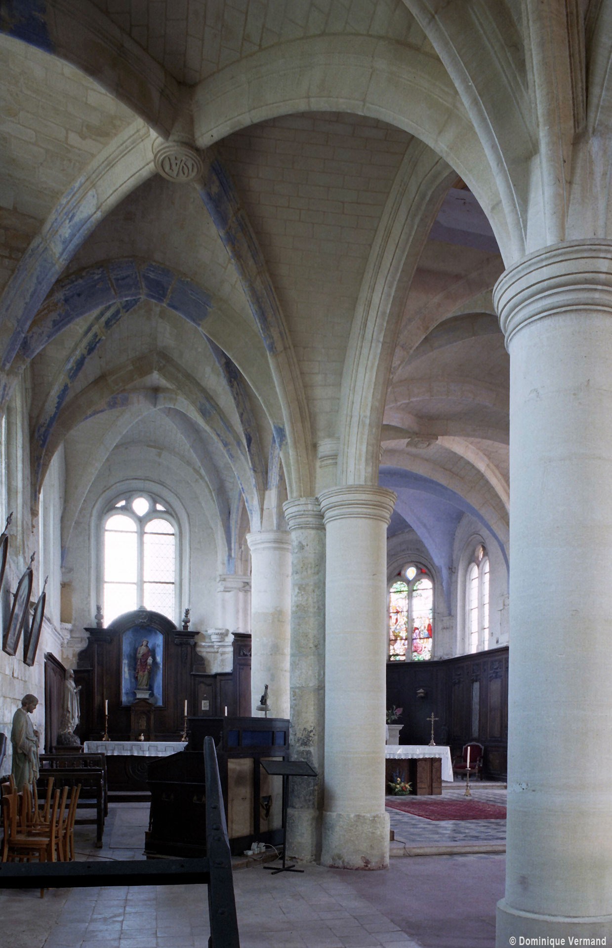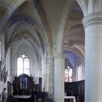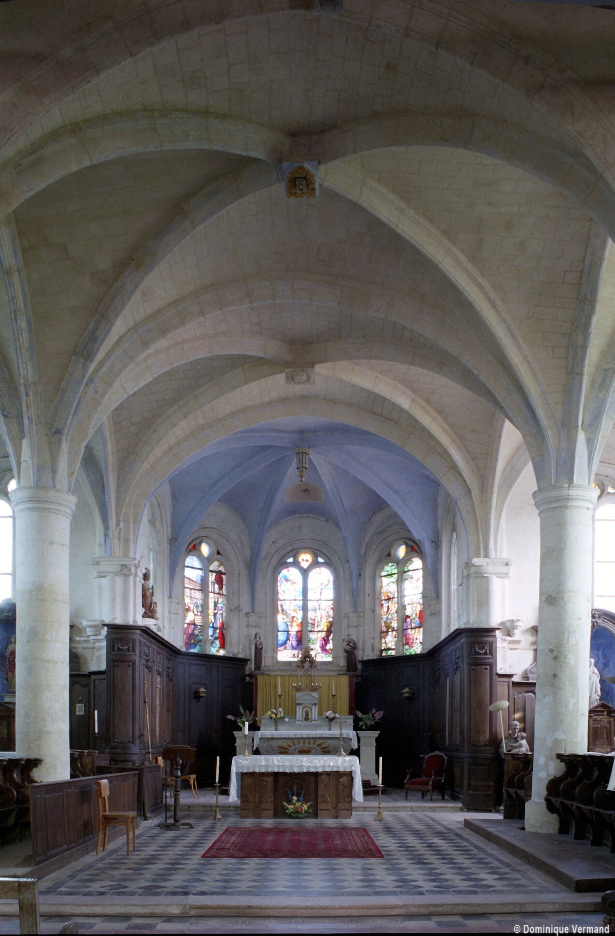 Outre ce bas-côté nord de la nef, les reconstructions de la première moitié du 16ème siècle ont principalement laissé un choeur de deux travées, avec bas-côtés, terminé par une abside pentagonale. Les voûtes des travées droites sont toutes portées à la même hauteur et reçues sur deux piles circulaires intermédiaires selon le principe du choeur-halle, qui connaît un certain succès à l’époque. Le réseau en plein cintre des fenêtres et la moulurations des éléments associés à la retombée des voûtes portent la marque du style de la Renaissance même si la structure générale de l’ensemble reste bien dans la tradition gothique.