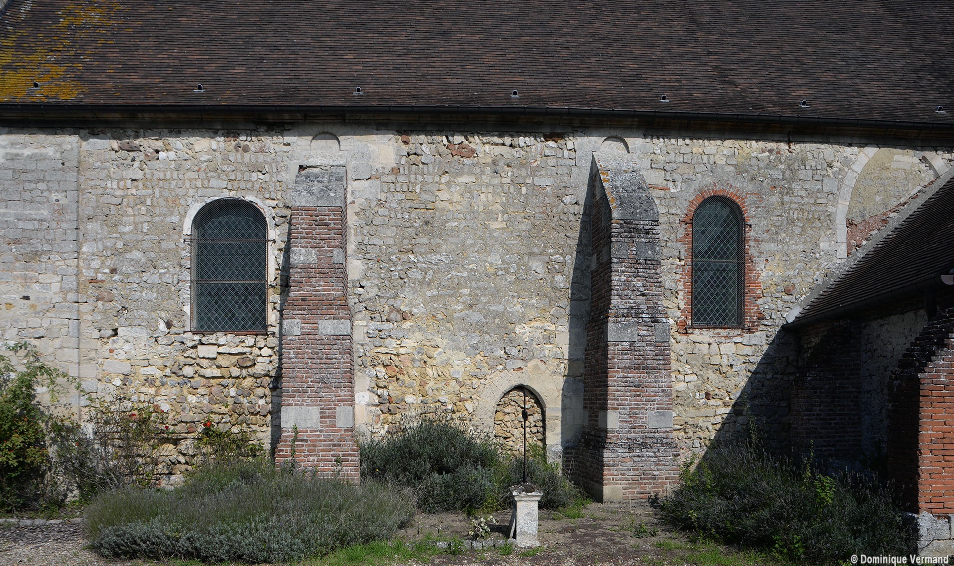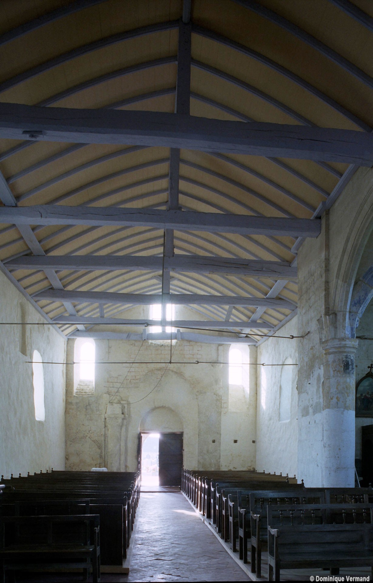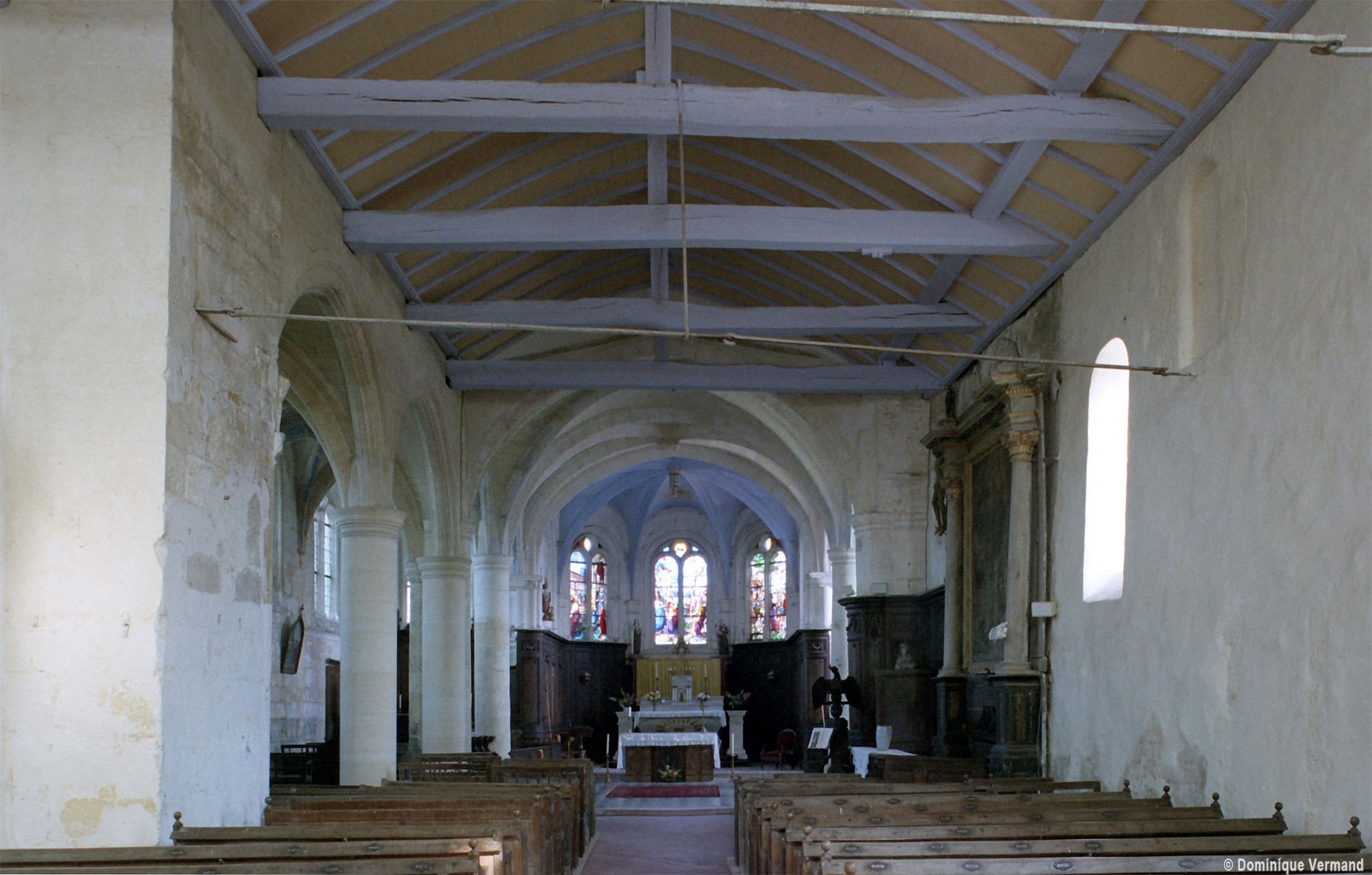 Cet ensemble est greffé sur une nef unique qui a conservé des portions d’un appareillage de petites pierres cubiques et la partie supérieure de fenêtres qui ne comportent pas d’ébrasement extérieur, éléments qui permettent de l’attribuer au 11ème siècle. Un bas-côté, avec laquelle elle communique par deux arcades, est venu l’agrandir vers le nord au 16ème siècle.