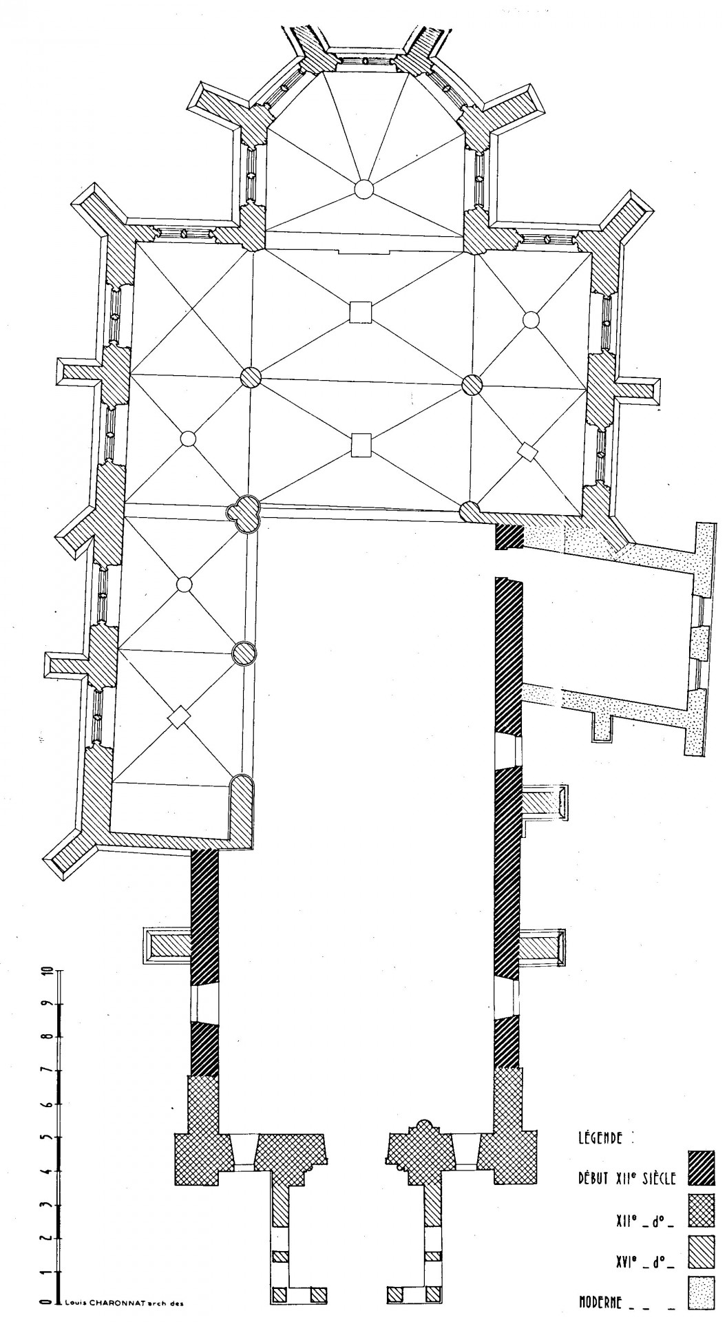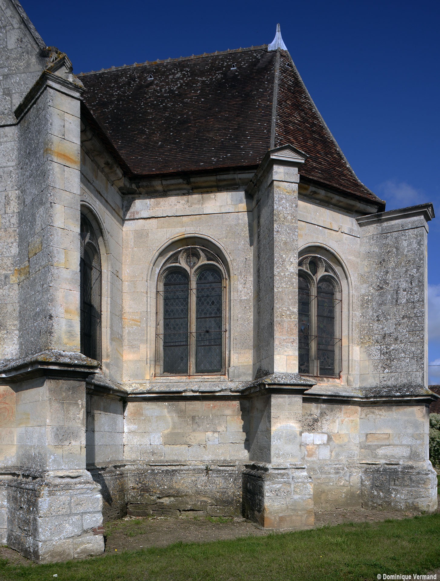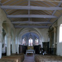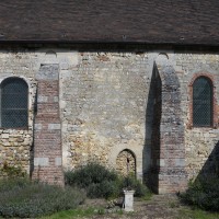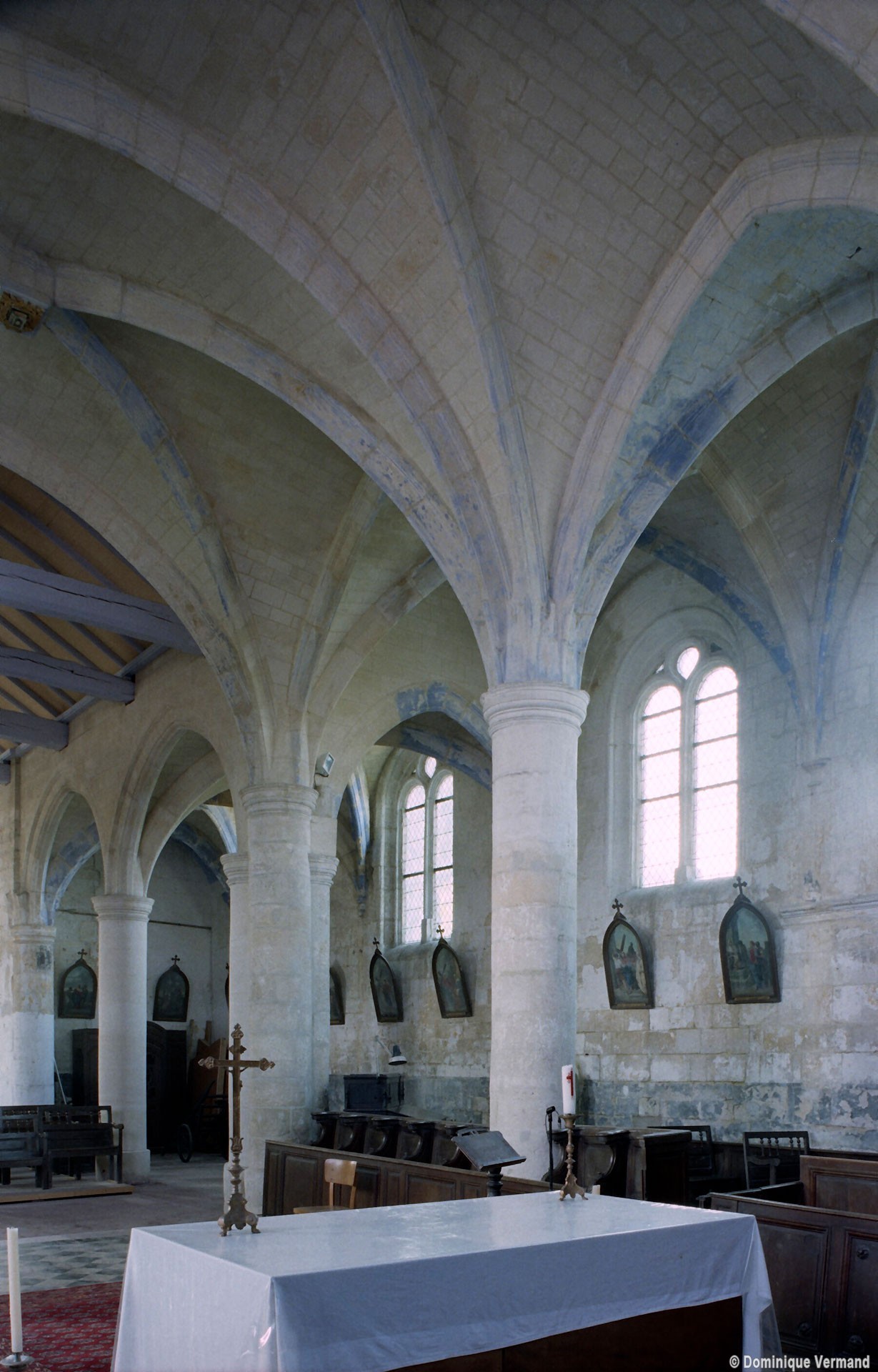 Cet ensemble est greffé sur une nef unique qui a conservé des portions d’un appareillage de petites pierres cubiques et la partie supérieure de fenêtres qui ne comportent pas d’ébrasement extérieur, éléments qui permettent de l’attribuer au 11ème siècle. Un bas-côté, avec laquelle elle communique par deux arcades, est venu l’agrandir vers le nord au 16ème siècle.