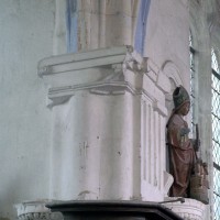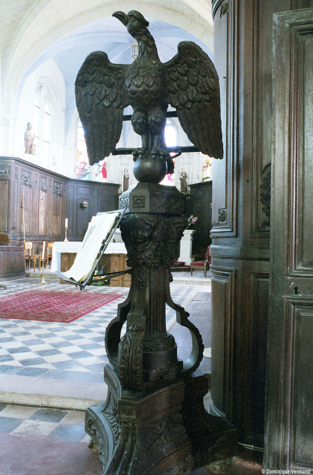 L’église est riche de plusieurs statues du 16ème siècle – deux Vierges, un saint Lucien portant sa tête, un saint Yves, un saint Nicolas, un saint Jacques de Compostelle – et d’un bel aigle lutrin du 18ème siècle orné de têtes d’anges (1978, modifié 2020).