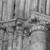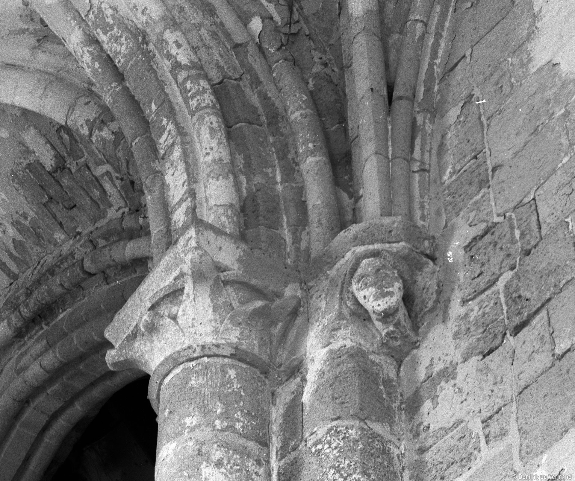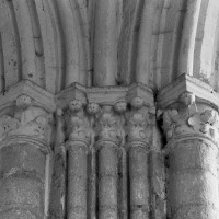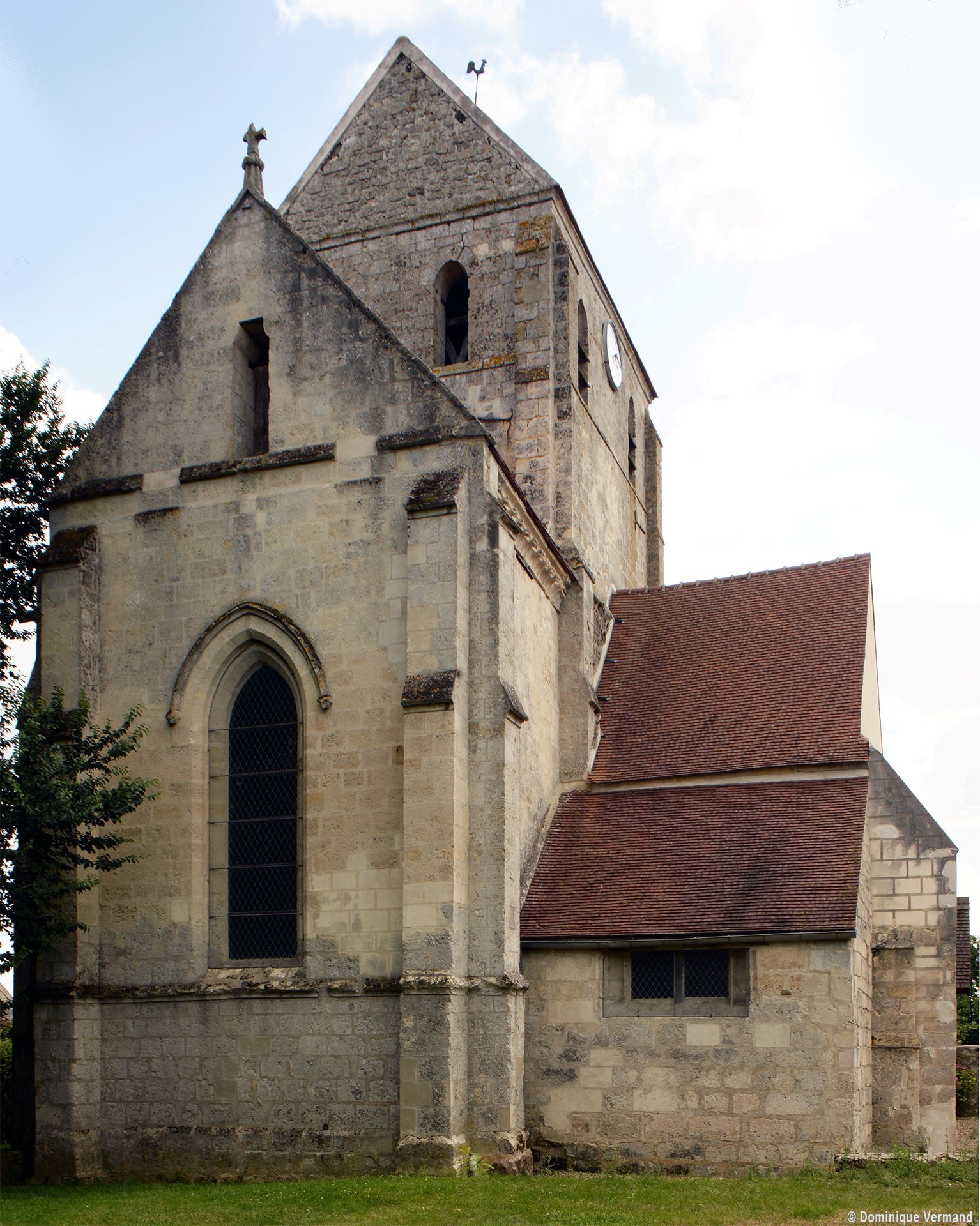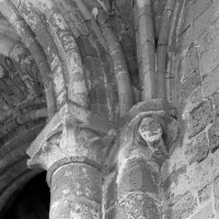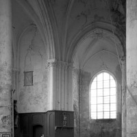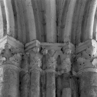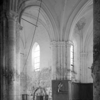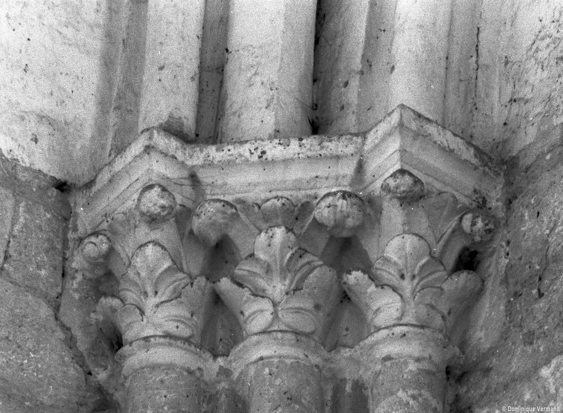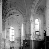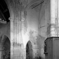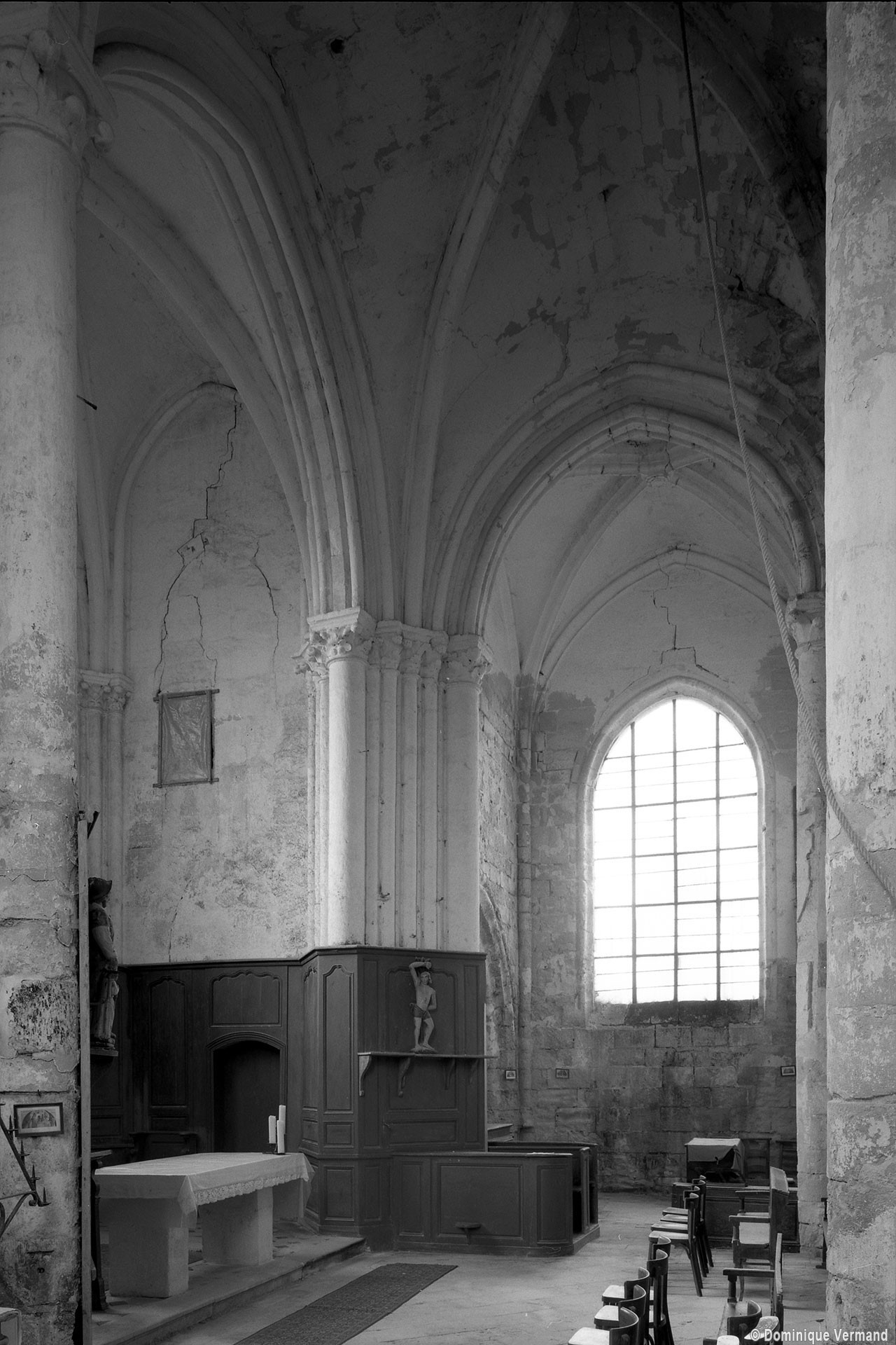 Une nef unique dont il reste une travée et deux fenêtres existait au 12ème siècle. Elle sera dotée de bas-côtés lors de la reconstruction des parties orientales. Celles-ci, qui comportent un transept et un chœur à chevet plat, seront bâties en deux campagnes rapprochées durant la première moitié du 13ème siècle. A la première campagne appartiennent la croisée et le chœur. Les ogives profilées en amande, doubleaux et formerets retombent sur des faisceaux de colonnettes par l’intermédiaire de très beaux chapiteaux gothiques, associant crochets et feuilles variées empruntées à la flore locale.