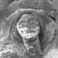A l’extérieur, ce bras nord se signale par la belle corniche à crochets qui surmonte ses murs ouest et est. Toutes les fenêtres sont à simple lancette. Le bras sud sera en partie rebâti à la fin du gothique en reprenant les dispositions antérieures mais une chapelle, qui fait partie de la même campagne et était sans doute à usage seigneurial comme le montre sa clef armoriée, lui sera adjointe à l’est. Les nervures des voûtes ont le profil prismatique propre à cette période et la grande fenêtre sud comportait sans doute un réseau flamboyant. L’arcade qui assure la communication avec la chapelle a été bouchée au 18ème siècle, quand cette dernière a été transformée en sacristie (1997).