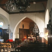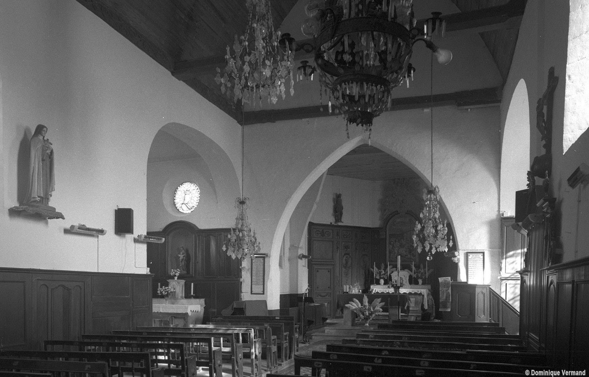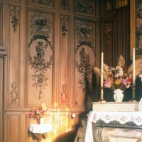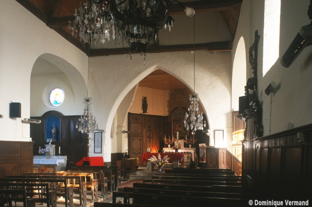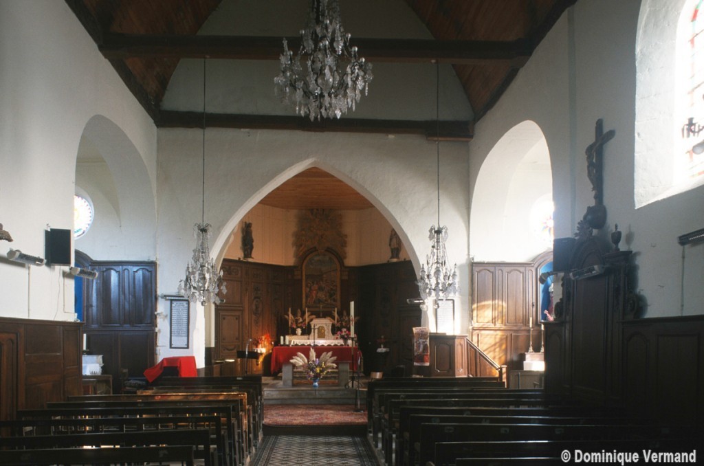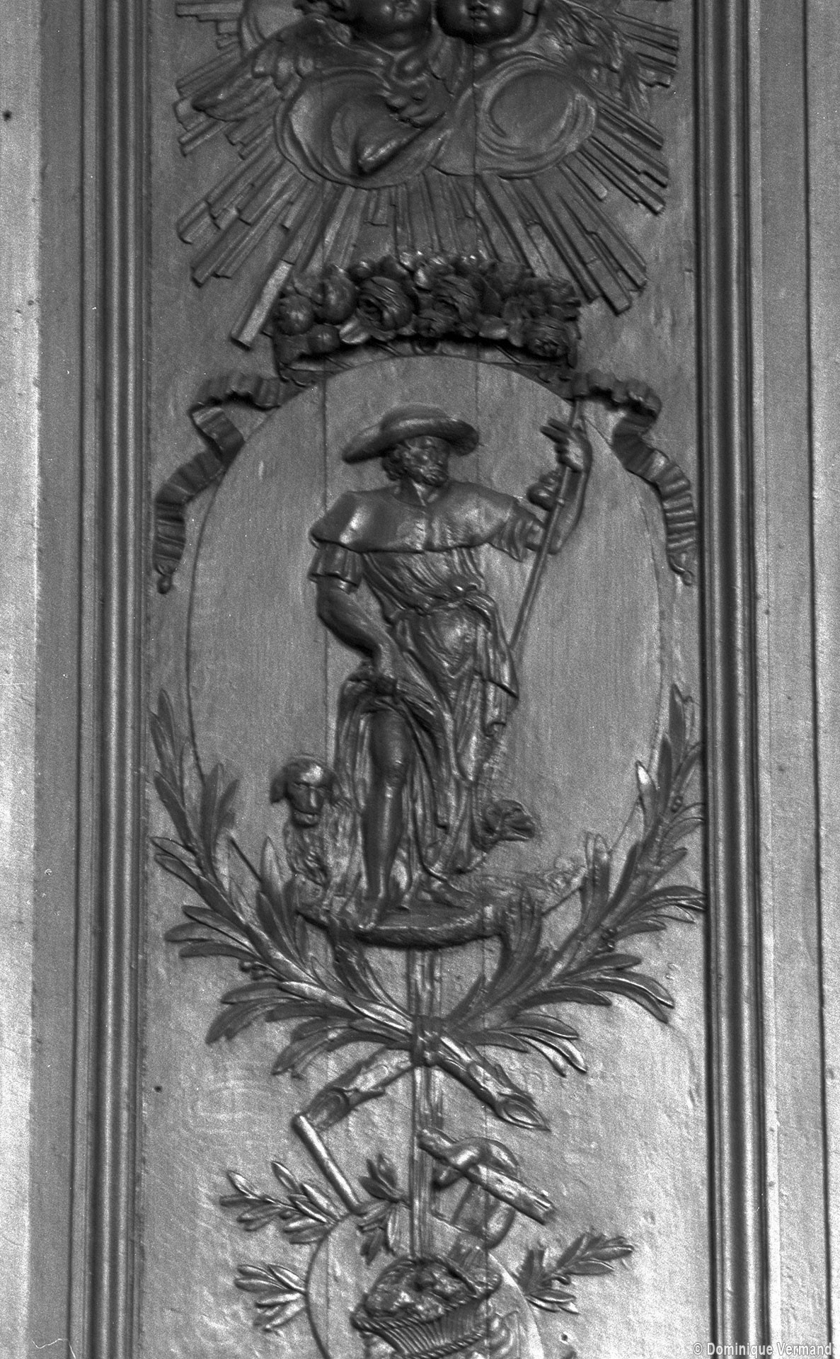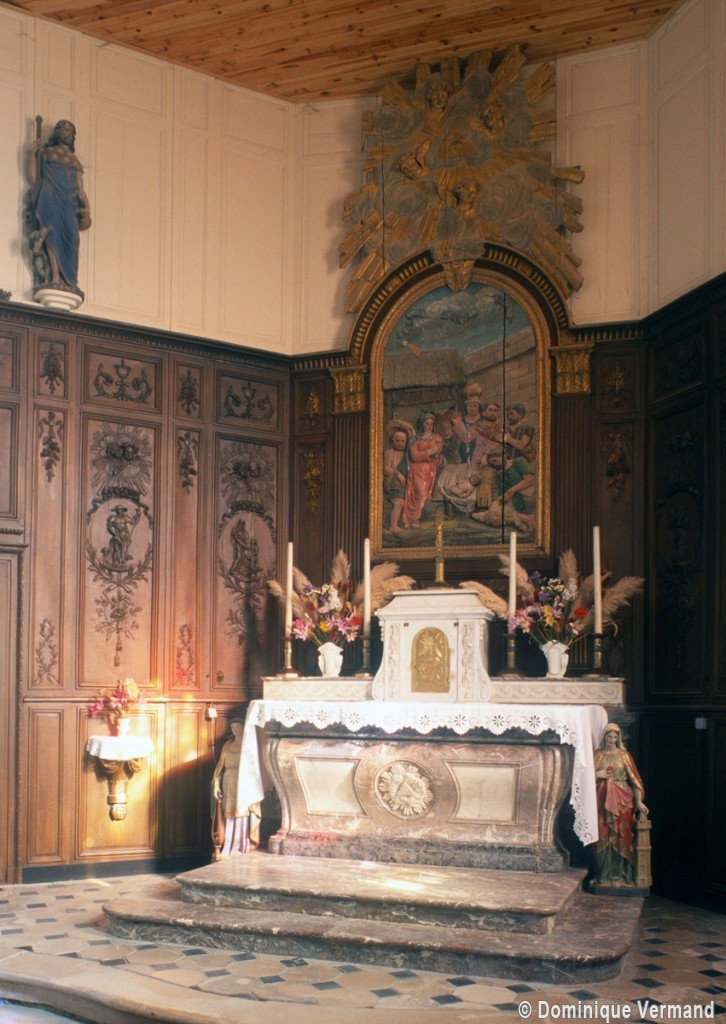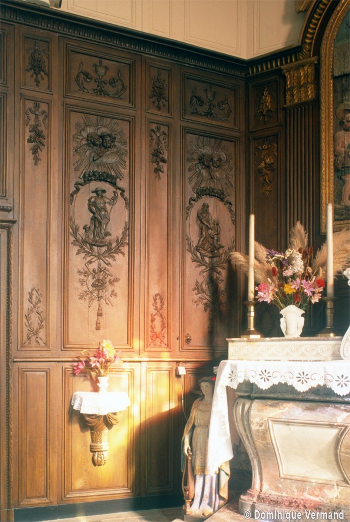 Mais ce sont surtout ses splendides boiseries Louis XVI qui méritent l’attention. De part et d’autre d’un retable peint surmonté d’une Gloire, les panneaux délicatement sculptés comportent, dans des médaillons, les représentations de saint Christophe, saint Denis et saint Sébastien (1998).
