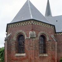L’église Saint-Jean-Baptiste a été entièrement reconstruite au 19ème siècle et son orientation a été alors inversée, le choeur étant placé à l’ouest. C’est un édifice en briques dans le style de la transition romano-gothique, dominé par un haut clocher construit en façade.