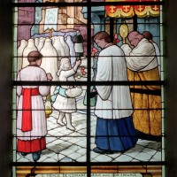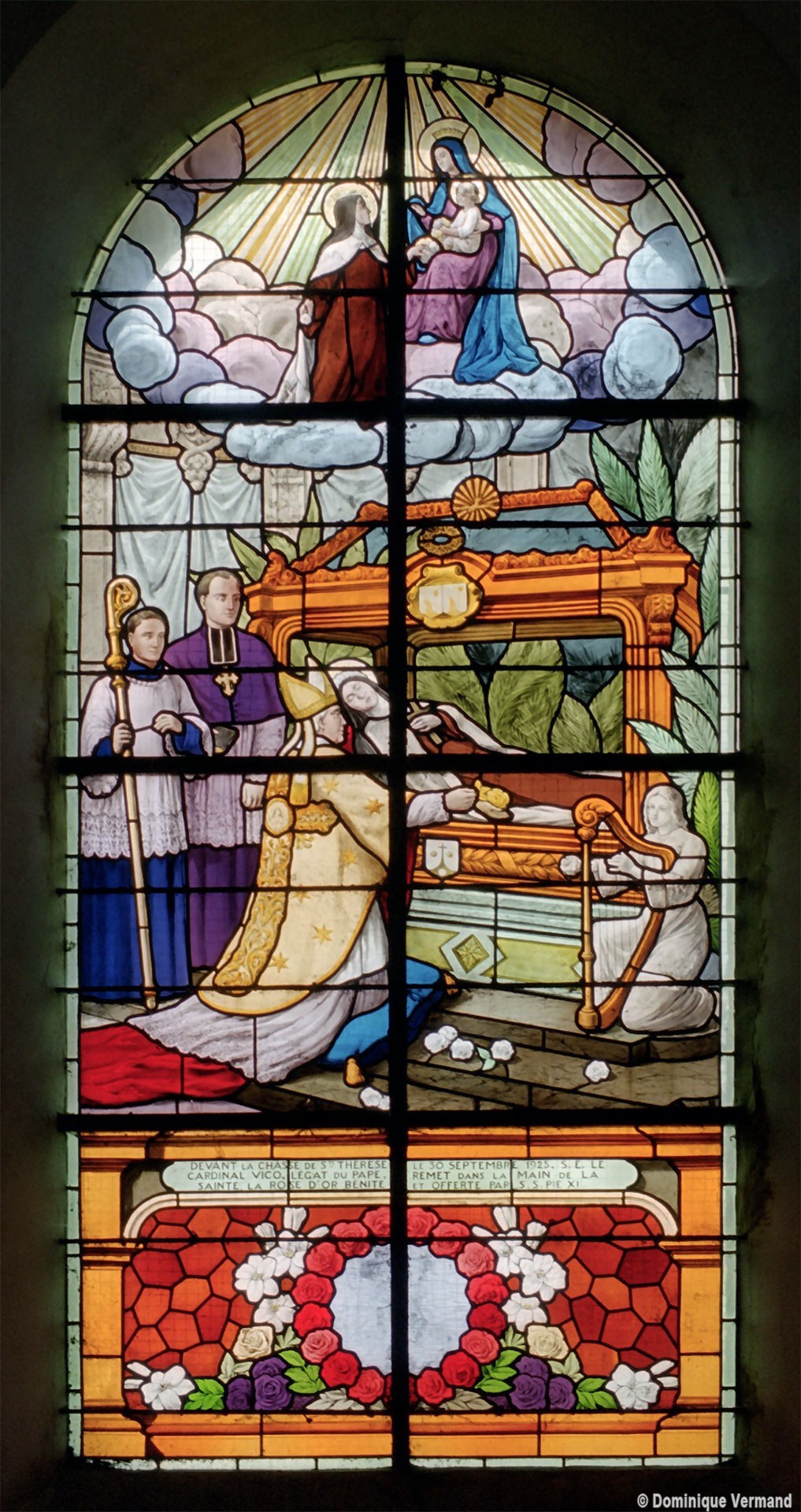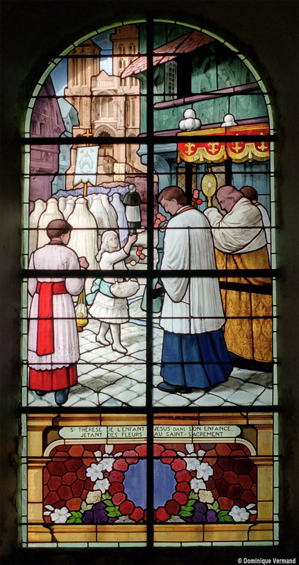 Du mobilier de l’ancienne église se sont conservés des bancs et un maître-autel du 17ème siècle. Dans le choeur, on notera cinq vitraux consacrés à la Vie de saint Jean-Baptiste (19ème siècle) tandis que les six vitraux de la nef évoquent la Vie de sainte Thérèse (20ème siècle) (2006).
