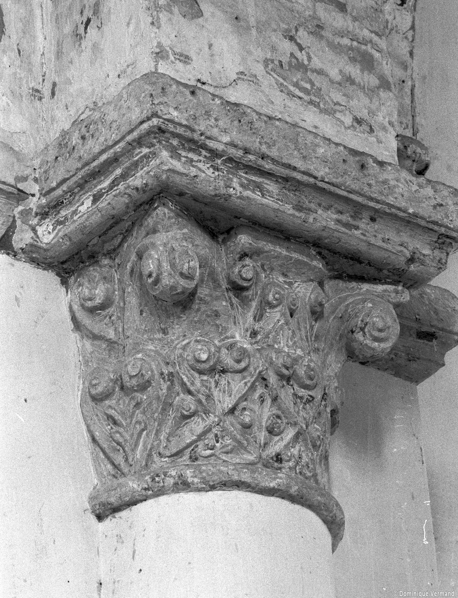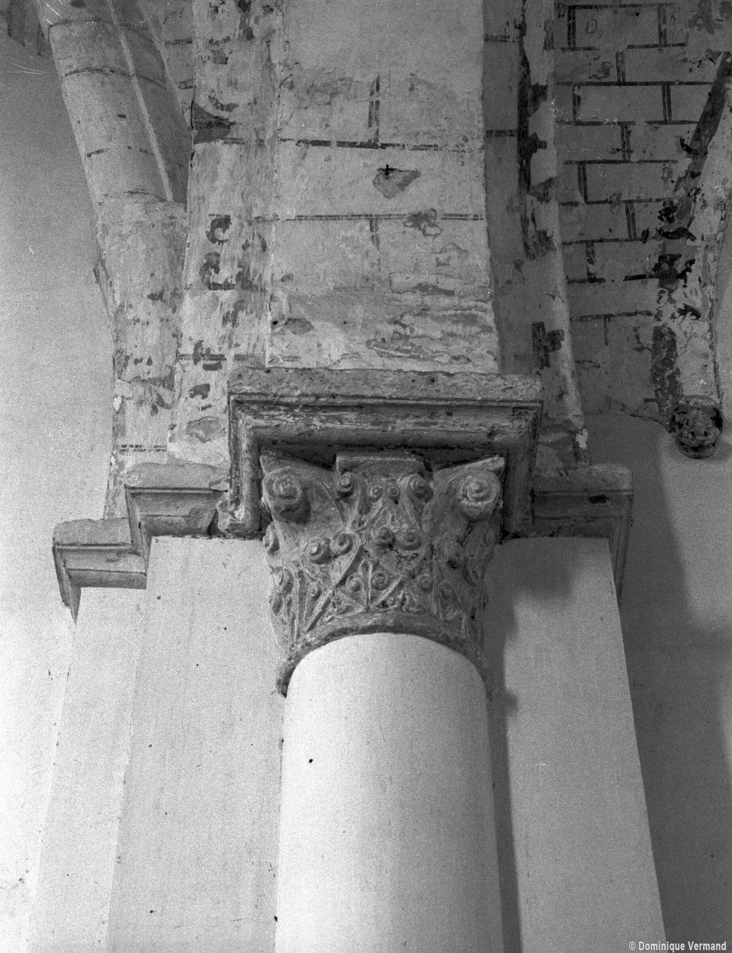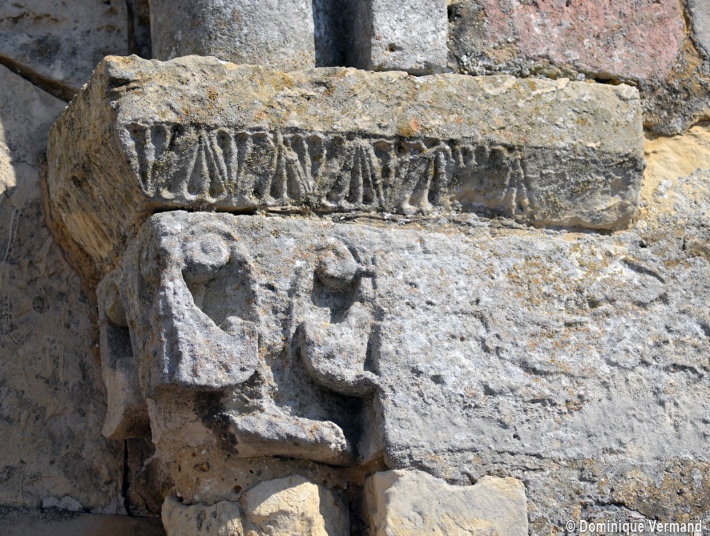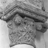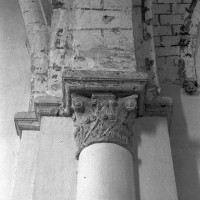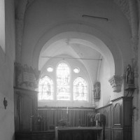 A l’intérieur, on notera les dispositions particulières de la dernière travée de la nef. L’arc doubleau qui introduit à celle-ci est souligné par deux tores sur sa face ouest, comporte un ressaut à l’est et est reçu de chaque côté sur une demi-colonne par l’intermédiaire d’un chapiteau. Celui du nord comporte un tailloir à décor géométrique et un aigle en garni l’un des angles de la corbeille. Celui qui lui fait face est une interprétation romane du chapiteau corinthien, un décor qui se retrouve aux deux chapiteaux associés à l’arcade qui introduit au petit chœur carré ainsi que dans plusieurs églises de la région : Allonne et Agnetz, à nouveau, ainsi que Noailles ou Saint-Arnoult de Clermont. En réalité, l’accent mis sur cette dernière travée de la nef doit la faire considérer comme le chœur d’origine en association avec le petit chœur carré actuel, son sanctuaire.