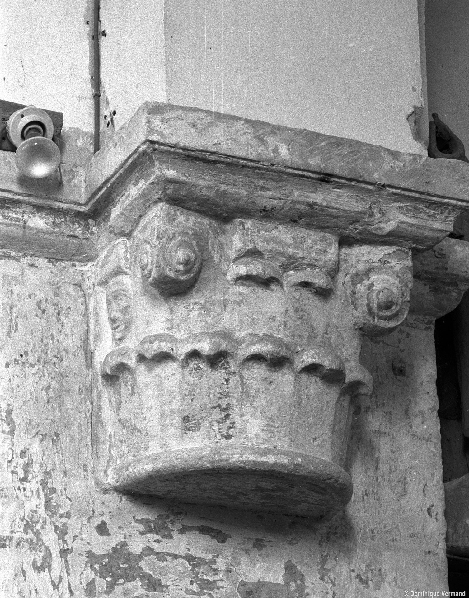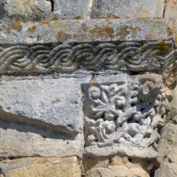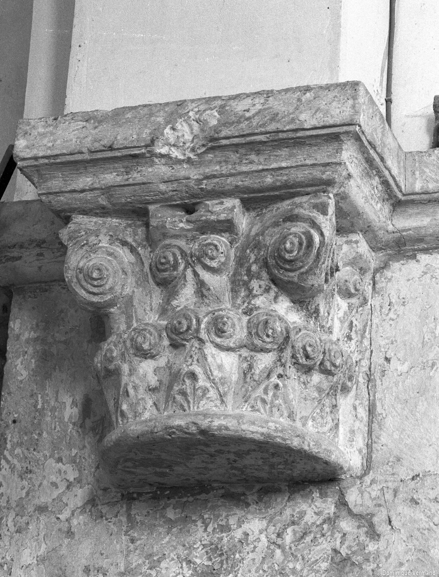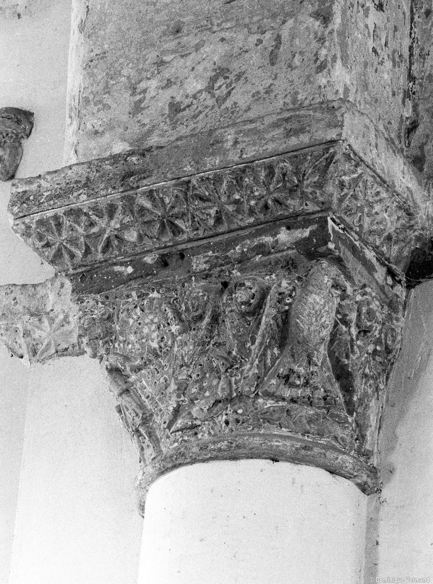 A l’intérieur, on notera les dispositions particulières de la dernière travée de la nef. L’arc doubleau qui introduit à celle-ci est souligné par deux tores sur sa face ouest, comporte un ressaut à l’est et est reçu de chaque côté sur une demi-colonne par l’intermédiaire d’un chapiteau. Celui du nord comporte un tailloir à décor géométrique et un aigle en garni l’un des angles de la corbeille. Celui qui lui fait face est une interprétation romane du chapiteau corinthien, un décor qui se retrouve aux deux chapiteaux associés à l’arcade qui introduit au petit chœur carré ainsi que dans plusieurs églises de la région : Allonne et Agnetz, à nouveau, ainsi que Noailles ou Saint-Arnoult de Clermont. En réalité, l’accent mis sur cette dernière travée de la nef doit la faire considérer comme le chœur d’origine en association avec le petit chœur carré actuel, son sanctuaire.