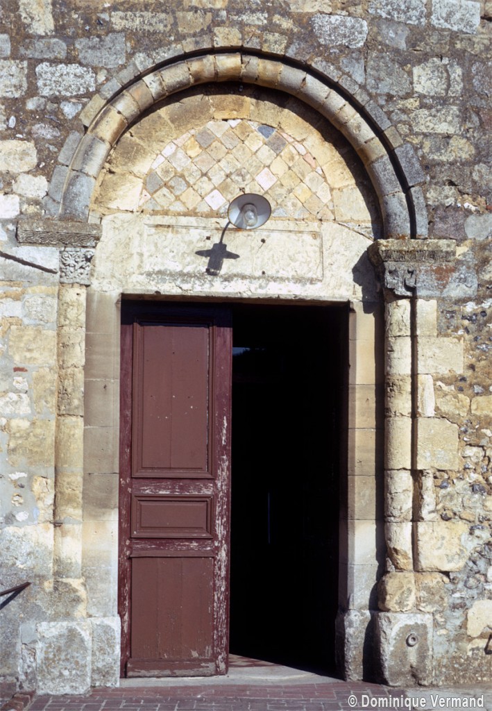 Celui-ci comporte un tore qui en souligne l’archivolte et deux colonnettes qui en garnissent les piédroits. Son tympan est décoré de pierres disposées en losange – opus reticulatum – comme à Allonne et Saint-Remy l’Abbaye, à Agnetz, qui datent de la même époque mais sont plus élaborés. Très remanié au 16ème siècle, où il a notamment reçu des voûtes d’ogives, ce bas-côté conserve toutefois partiellement une corniche romane qui confirme son appartenance à l’église d’origine.