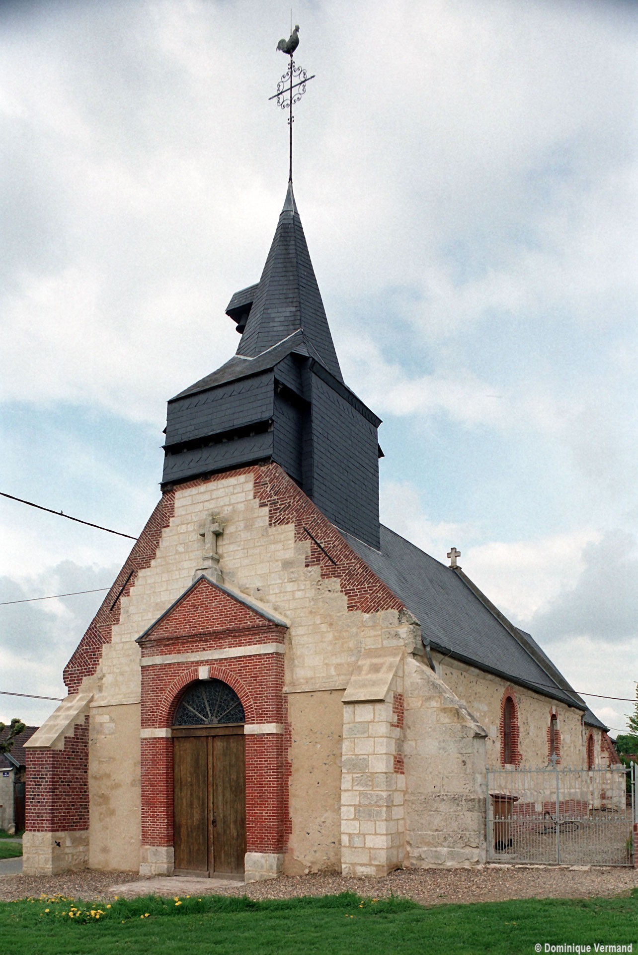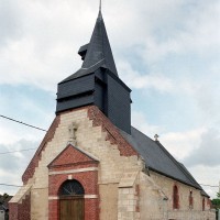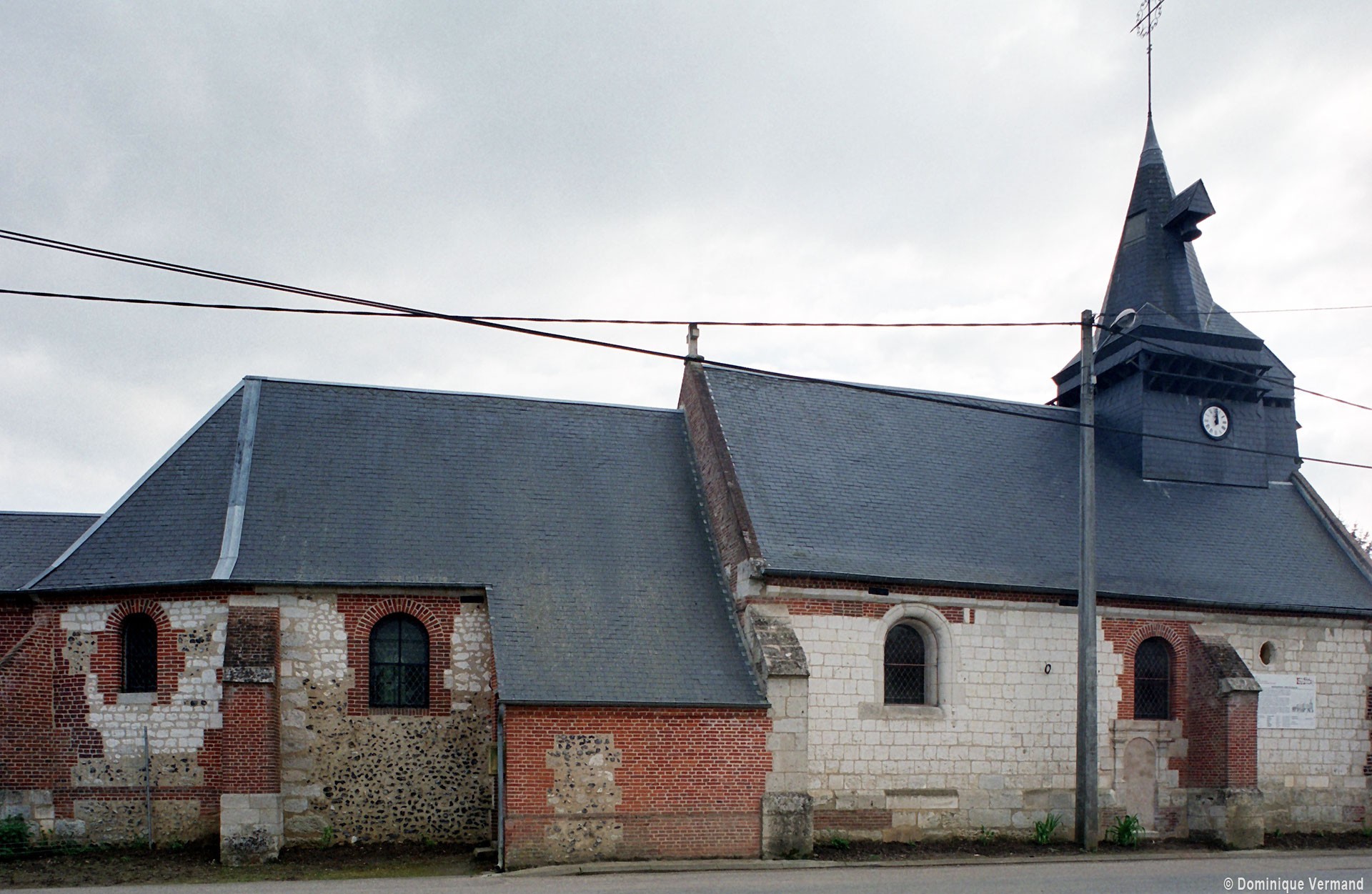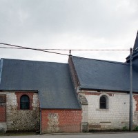 Les autres ouvertures sont en brique, un matériau utilisé ici à trois époques différentes : au 17ème siècle pour ce qui concerne les fenêtres du chœur et du mur sud de la nef, peut-être dans les années 1820 pour le portail avec fronton triangulaire de la façade et au milieu du 19ème siècle – avec une brique de type industriel – pour les contreforts nord-ouest de la nef, les arêtes de son pignon ouest et la sacristie. On peut donc y étudier à loisir l’évolution de ce matériau très utilisé en Picardie (2005).