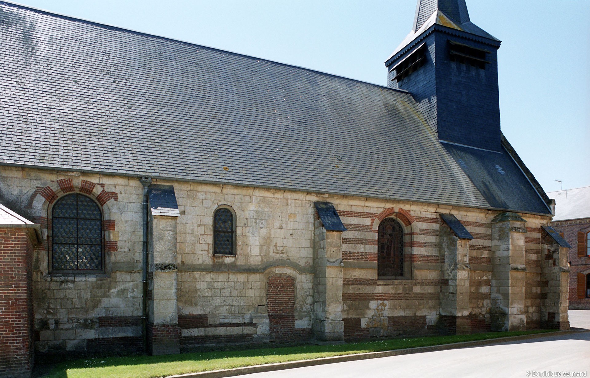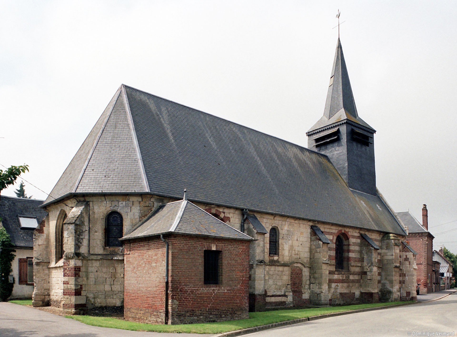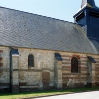 Bâties en alternant des assises de pierre et de briques, la façade et une partie des murs en retour sont plus tardives. Au nord, un contrefort porte la date de 1745 et Graves évoque la date de 1777 à propos de travaux à la nef et de la construction du clocher en charpente et ardoises. Le 19ème siècle a doté l’église d’un nouveau mobilier et d’un décor peint, malheureusement abîmé, caractéristique du goût de l’époque. (D.Vermand, 2007)