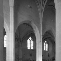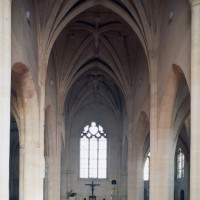 La plupart des retombées des voûtes s’effectuent par pénétration sur des piliers de plan ondulé. On note toutefois la présence de frises sculptées (motifs floraux, vigne, animaux, figures humaines) tenant lieu de chapiteau entre la troisième et quatrième travée du bas-côté nord et au chevet. Peut-être sont-elles à mettre en relation avec une chapelle aujourd’hui détruite, dédiée à Saint-Vincent, patron des vignerons. Remployé dans le bas-côté sud, un cul-de-lampe – ou chapiteau – à tête humaine, du 12ème siècle, provient sans doute de l’église précédente.