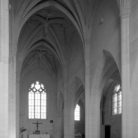 Si les voûtes des bas-côtés sont à simple croisée d’ogives, celles du vaisseau central sont très complètes, avec liernes (nervures supplémentaires se rencontrant au milieu de chaque voûtain) et tiercerons (nervures joignant la clef de voûte principale à la clef des voûtains). Moins le fruit d’une réelle nécessité technique que d’un parti pris esthétique, ce type de voûte est une des marques du gothique flamboyant. Les clefs de la croisée principale comportent des pendentifs finement travaillés. La voûte associée au clocher se compose de huit branches convergeant vers un orifice circulaire ménagé dès l’origine pour monter les cloches.