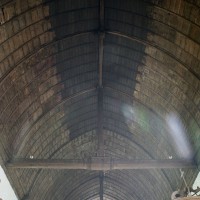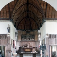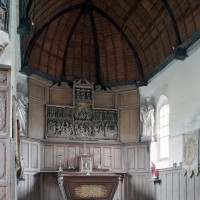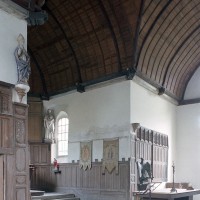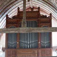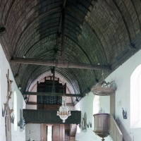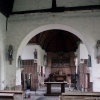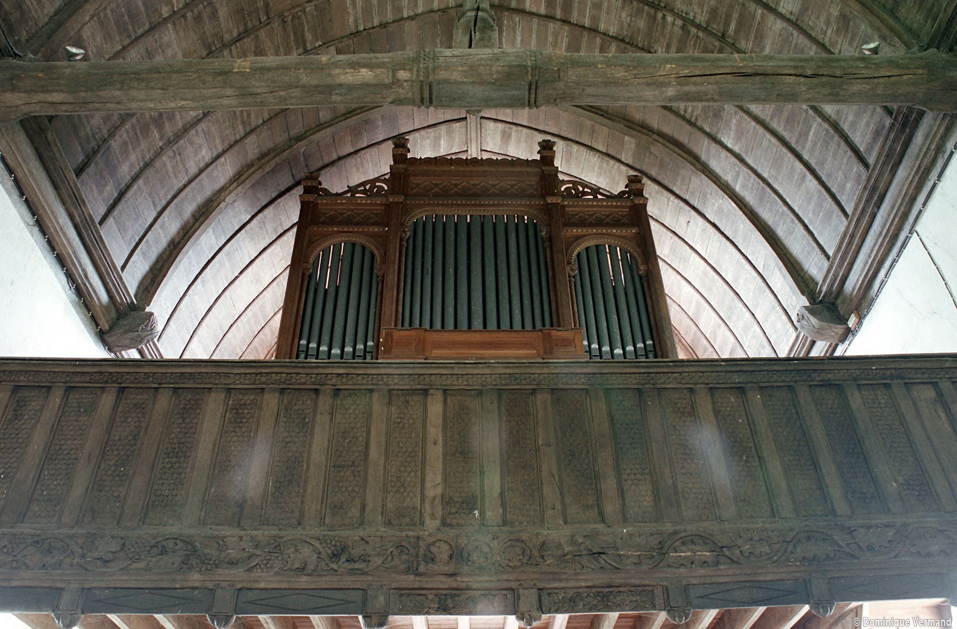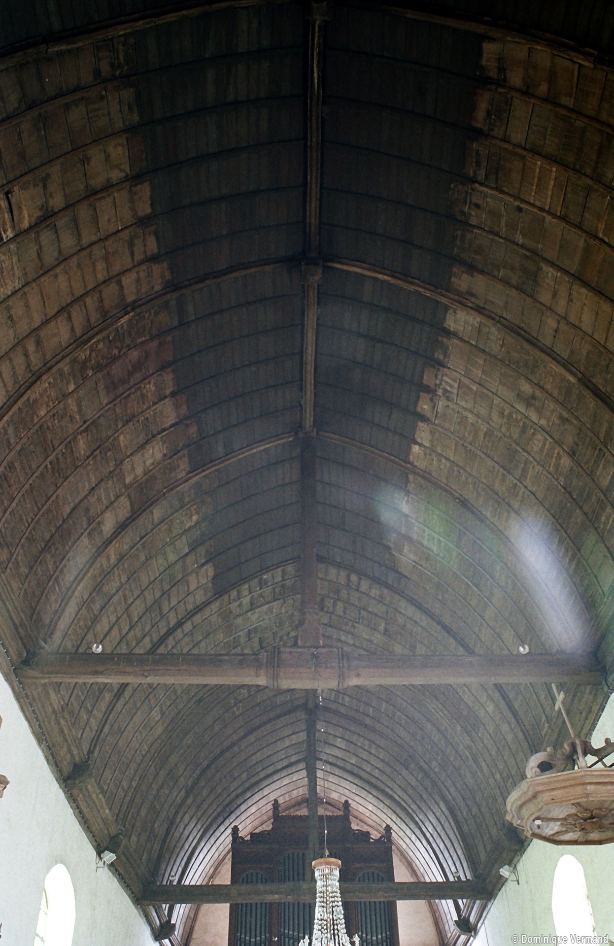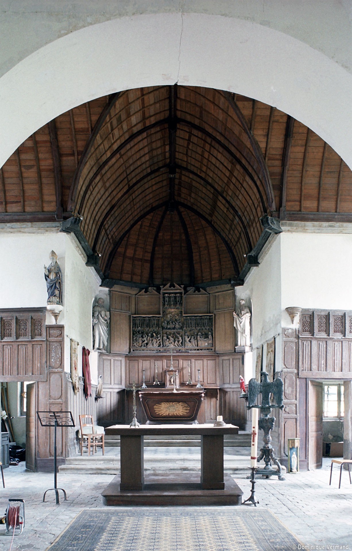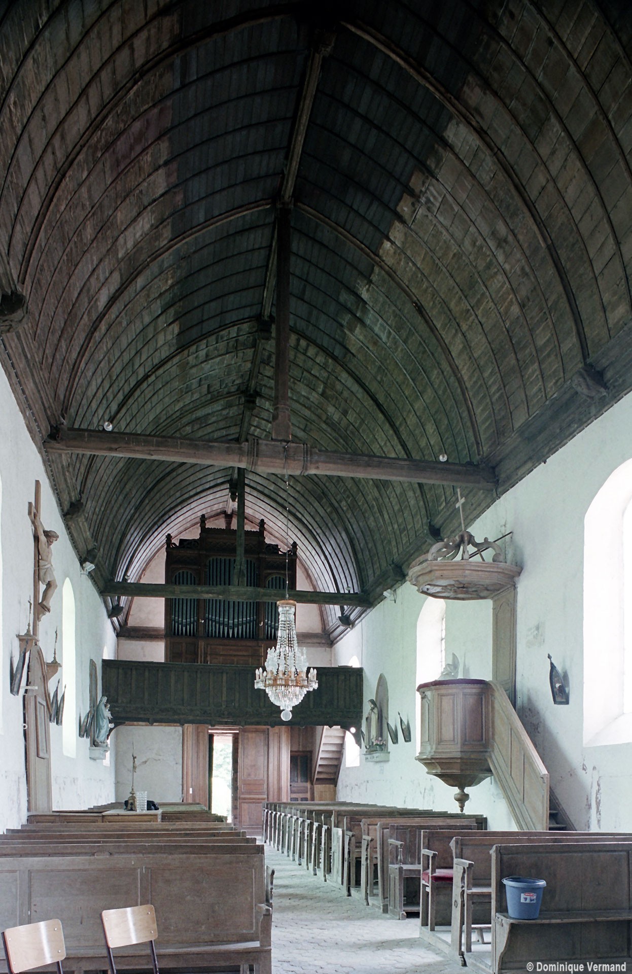 Construites en briques au 16ème siècle, les parties orientales comprennent un transept saillant et un choeur pentagonal, complétés au nord-ouest d’un clocher et au sud-ouest d’une chapelle autrefois à usage seigneurial. Les quelques fenêtres qui n’ont pas été refaites sont en cintre surbaissé souligné d’une simple moulure en brique. De belles charpentes en carène, également du 16ème siècle, couvrent les différentes parties de l’église. Celles du choeur et du transept ont cependant été refaites à l’identique après un incendie survenu en 1970.